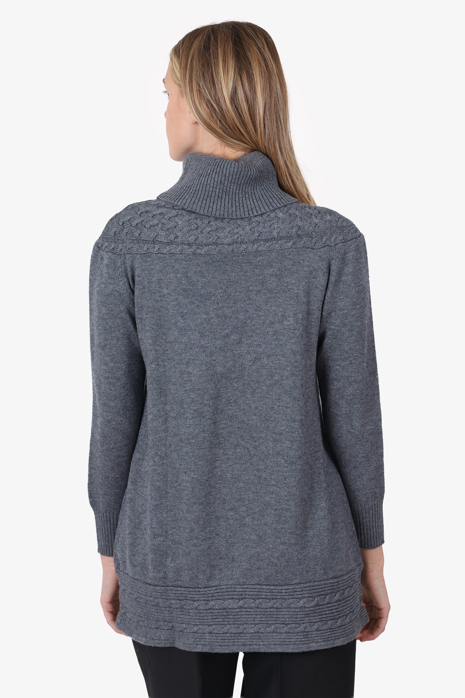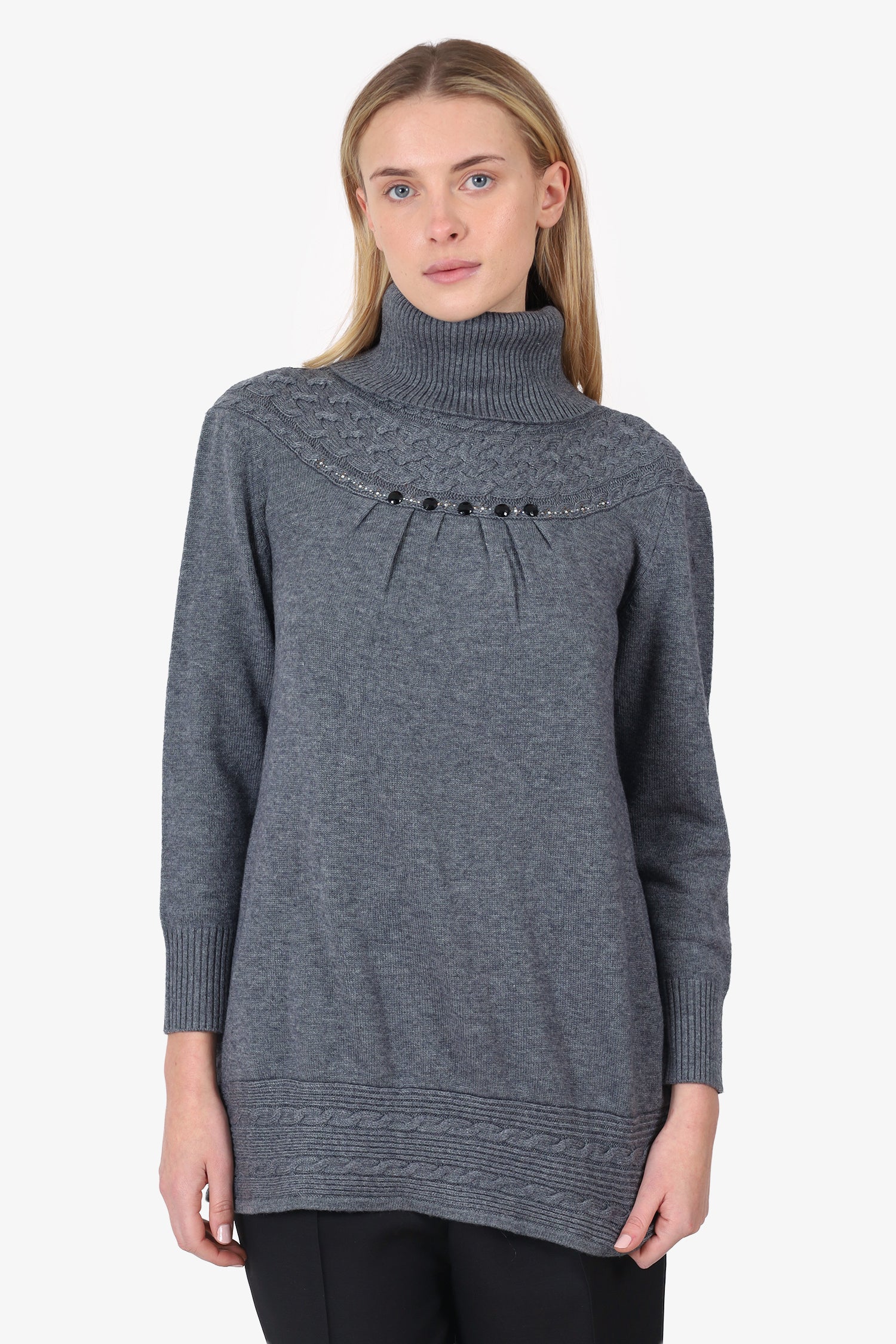 Marlowe Grey Cashmere/Silk Crystal Embellished Turtleneck Sweater Size S