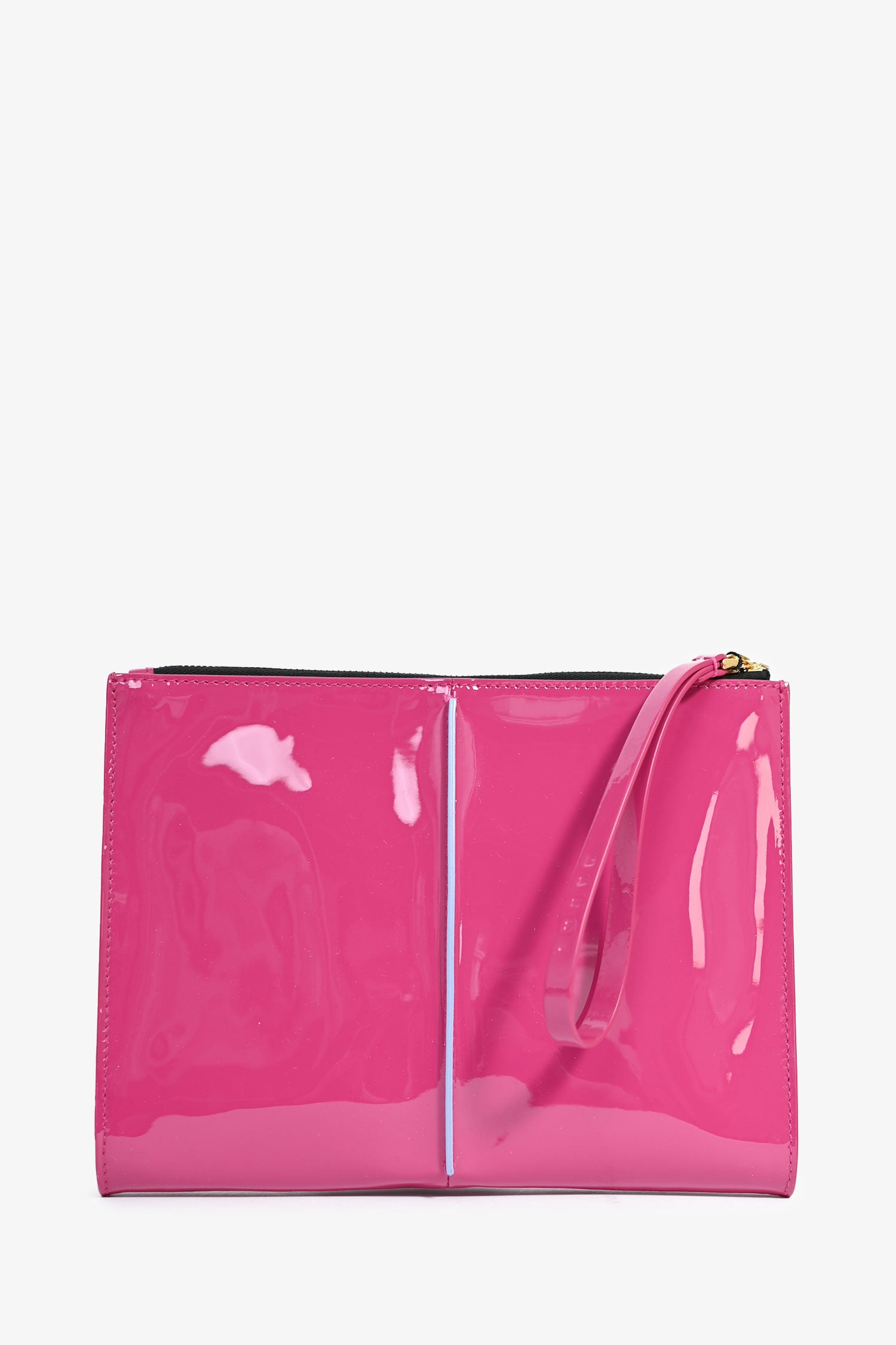 Marni 2019 Pink/Blue Patent Leather Zip Wristlet with Logo Hardware