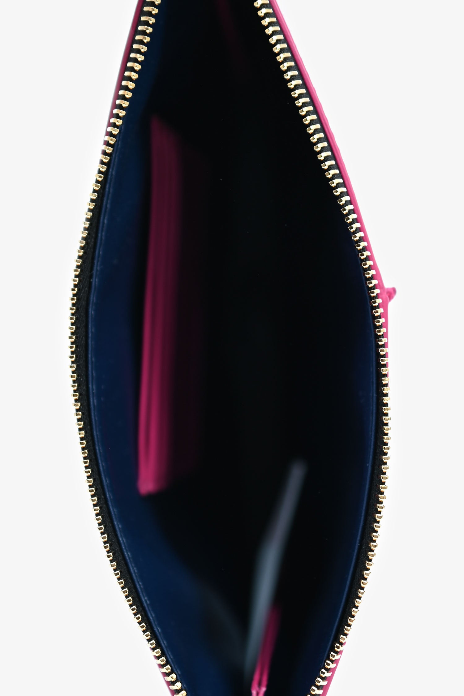Refresh availabilityMarni 2019 Pink/Blue Patent Leather Zip Wristlet with Logo Hardware. Top zipper closure. A single compartment with 4. card slots. Textile lining. Glossy finish. Gold-tone Tonal stitching.