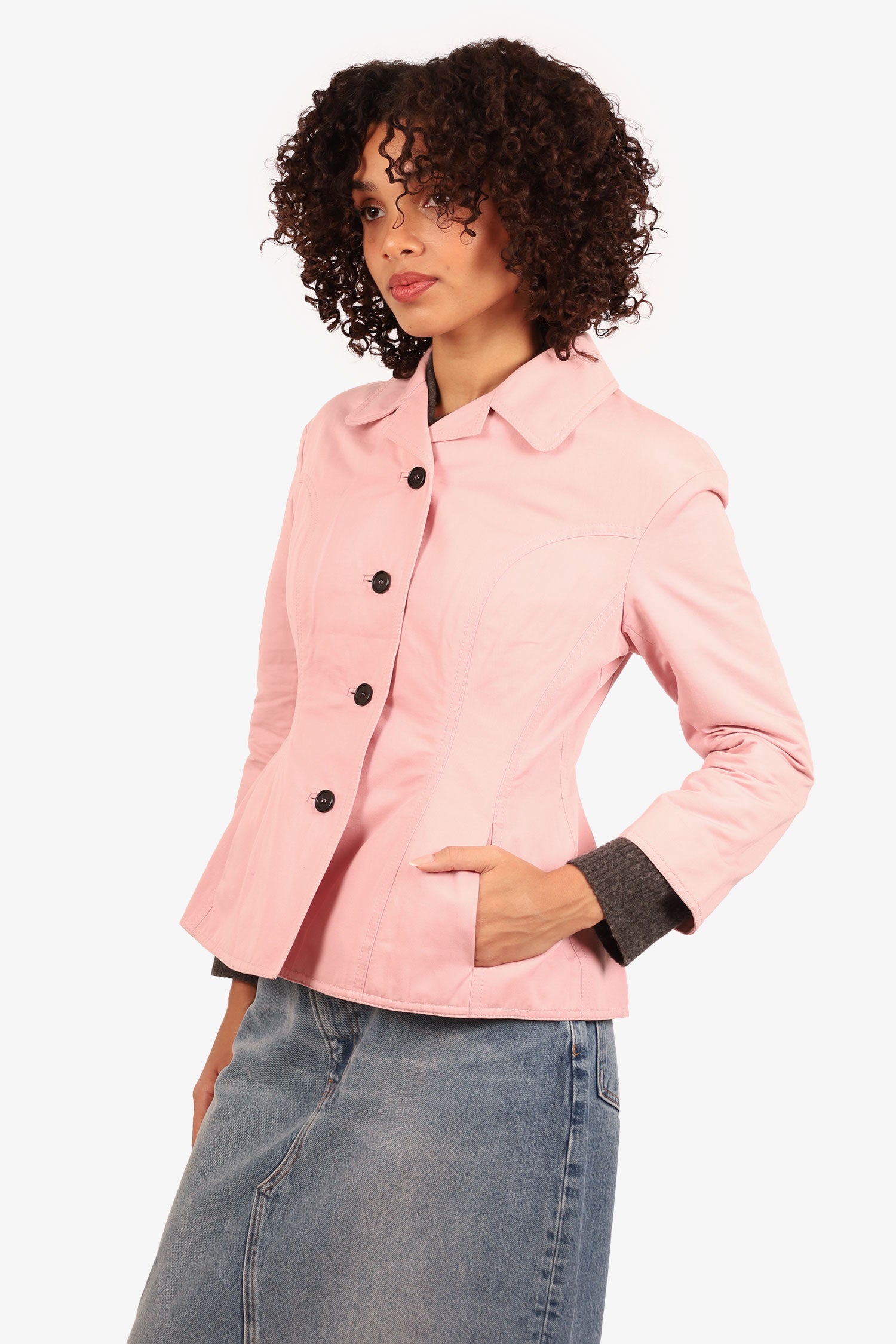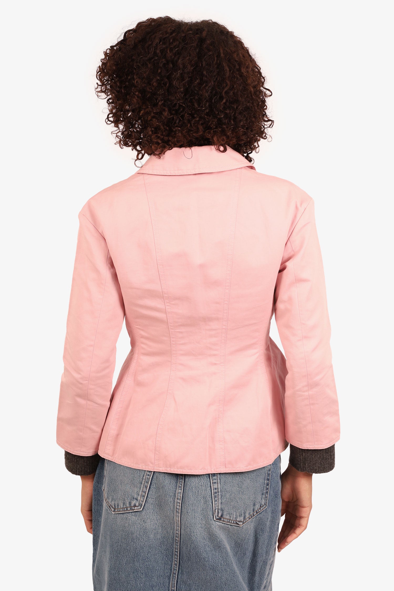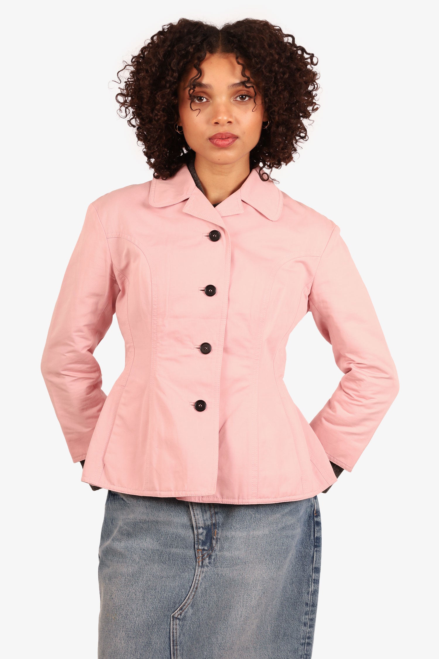 Refresh availabilityMarni Baby Pink Single Breasted Jacket. Collared neckline. Notch Lapel. Front button-up closure. Tonal stitching.