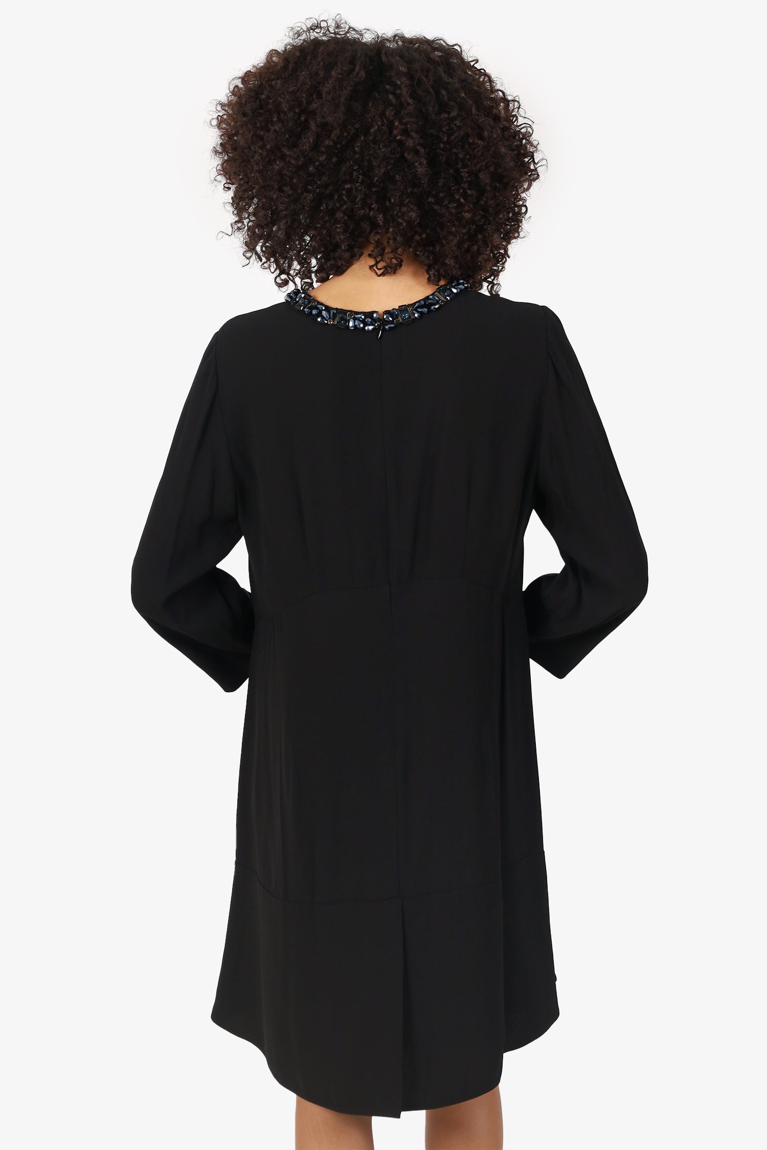 Marni Black Crystal Beaded Collar Long Sleeve Mini Dress Estimated Size M
