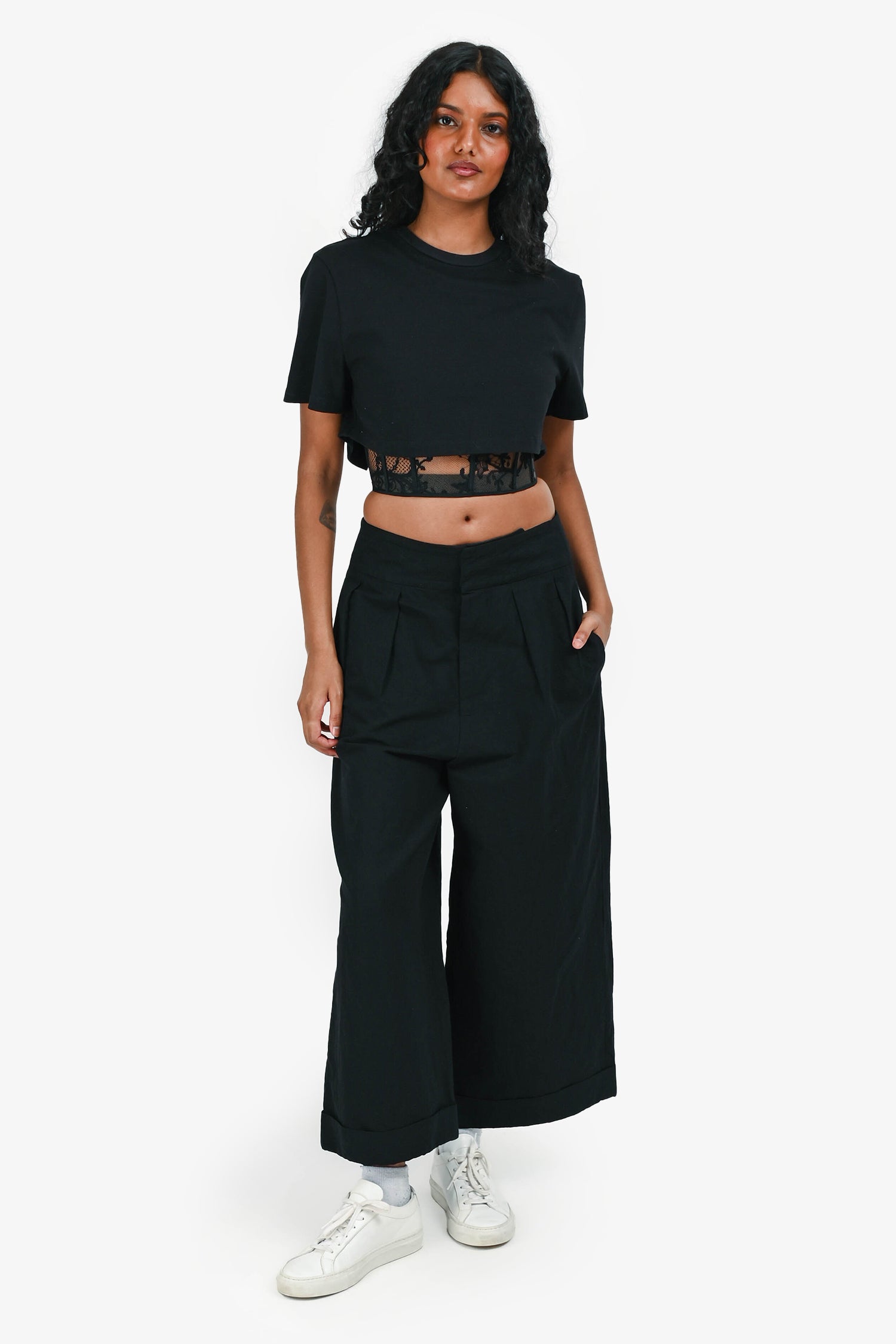 Marni Black Linen Blend Wide Leg Cropped Trousers Size 40