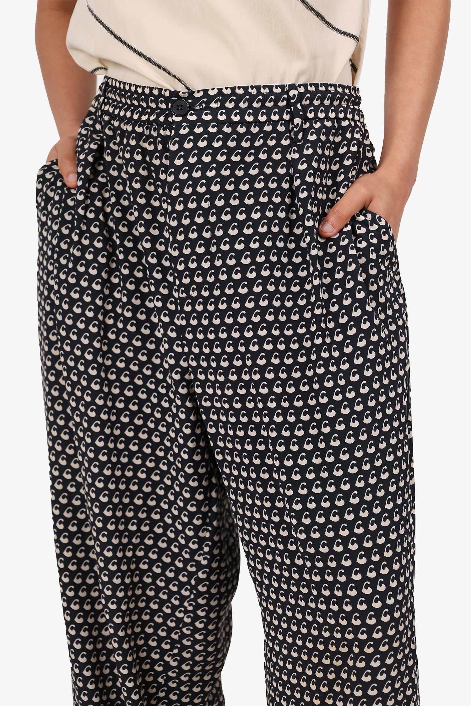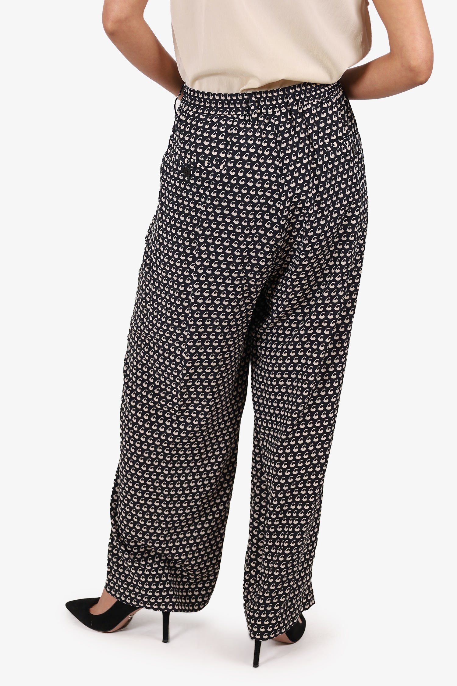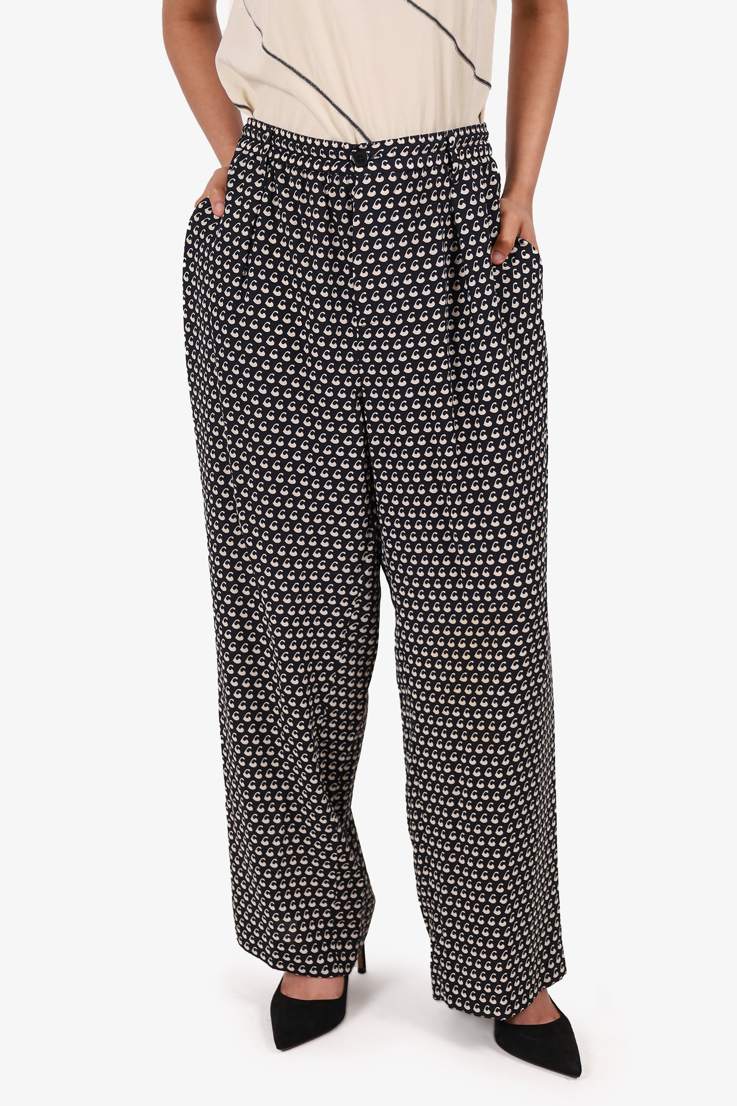 Marni Black/White Silk Printed Elasticated Waist Pants Size 44