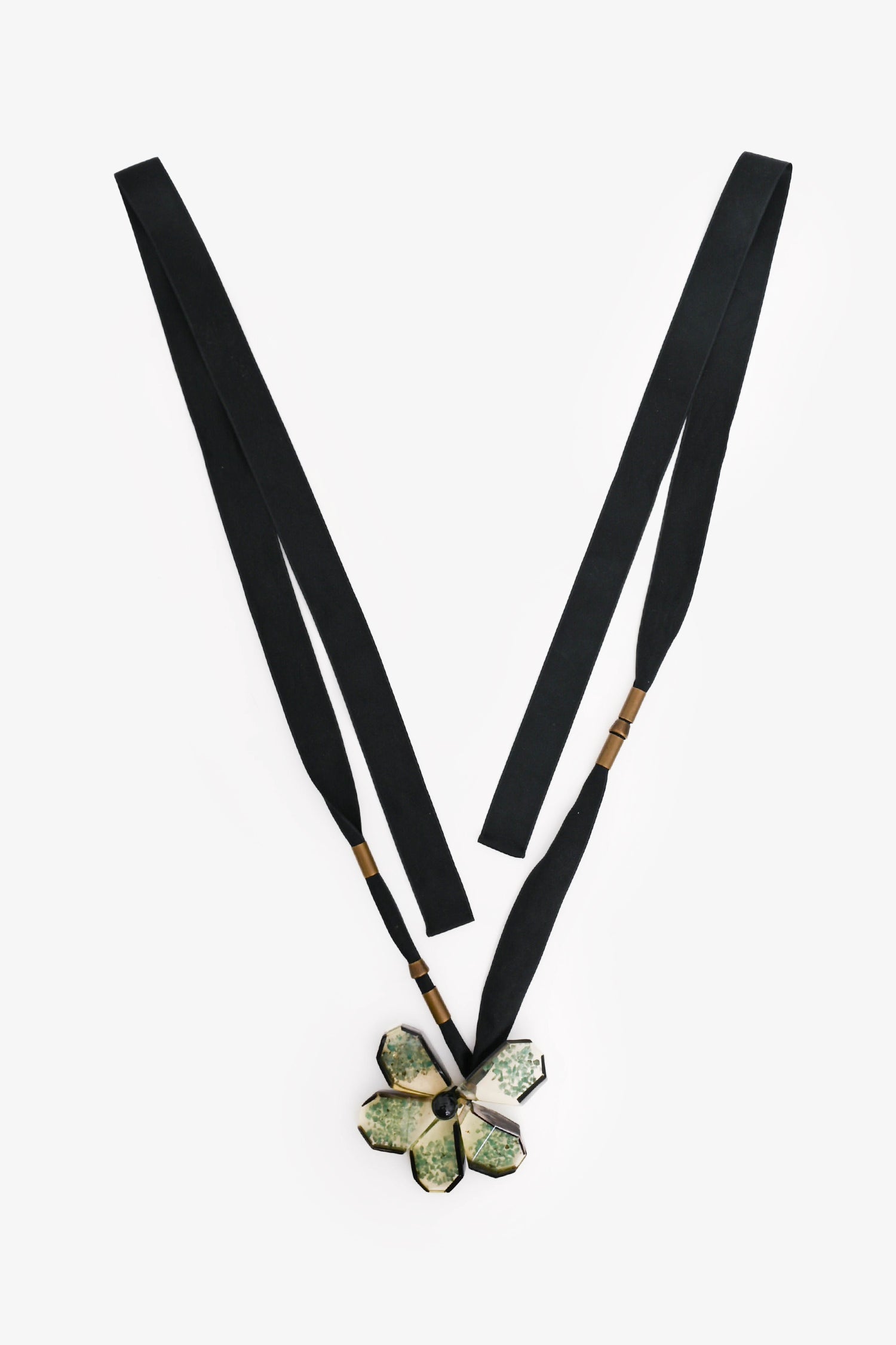 Refresh availabilityMarni Black/Green Floral Necklace. Adjustable fabric tie closure. Bronze-tone hardware.