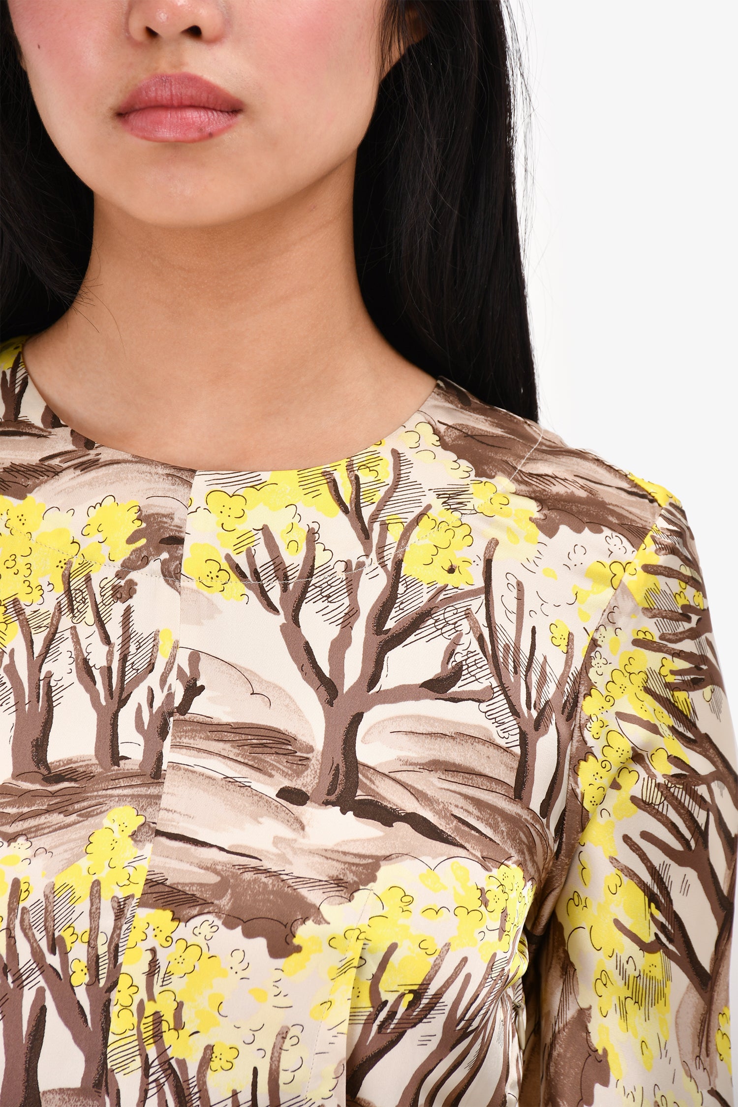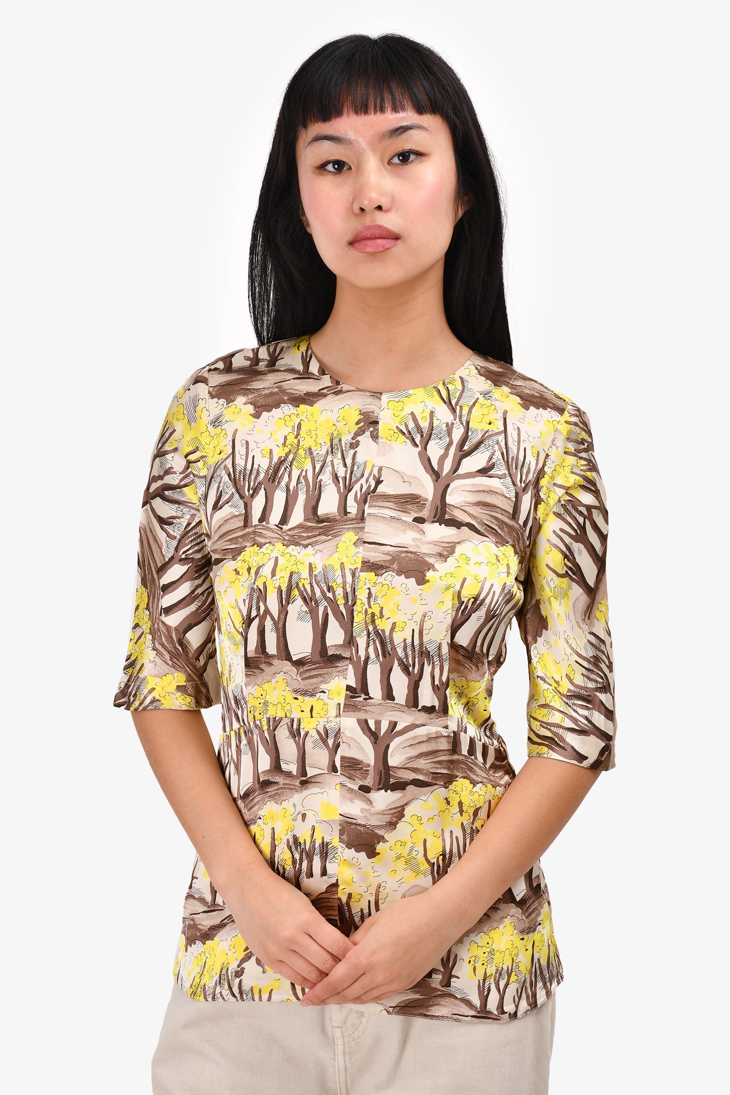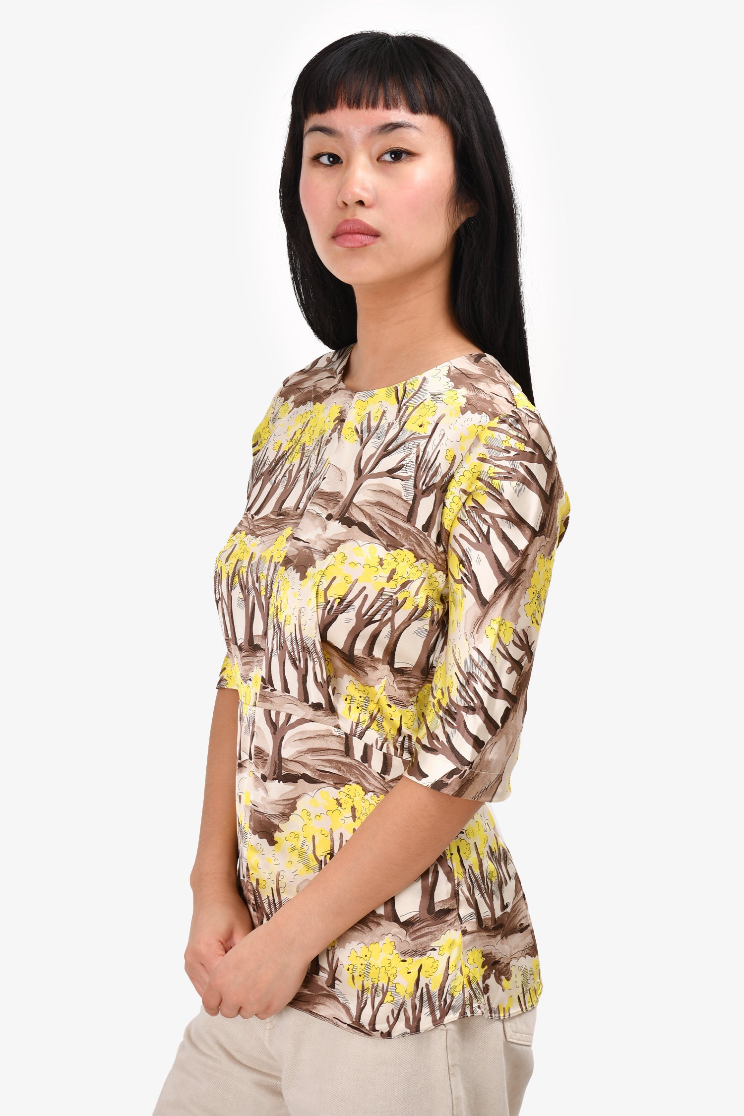 Marni Brown/Yellow Tree Printed Satin Top Size 38