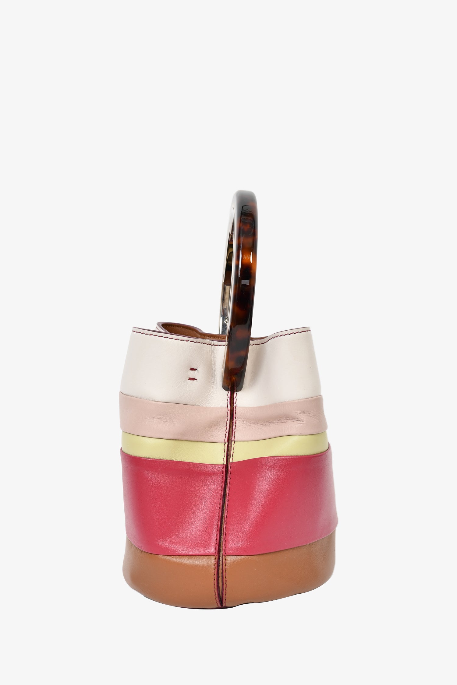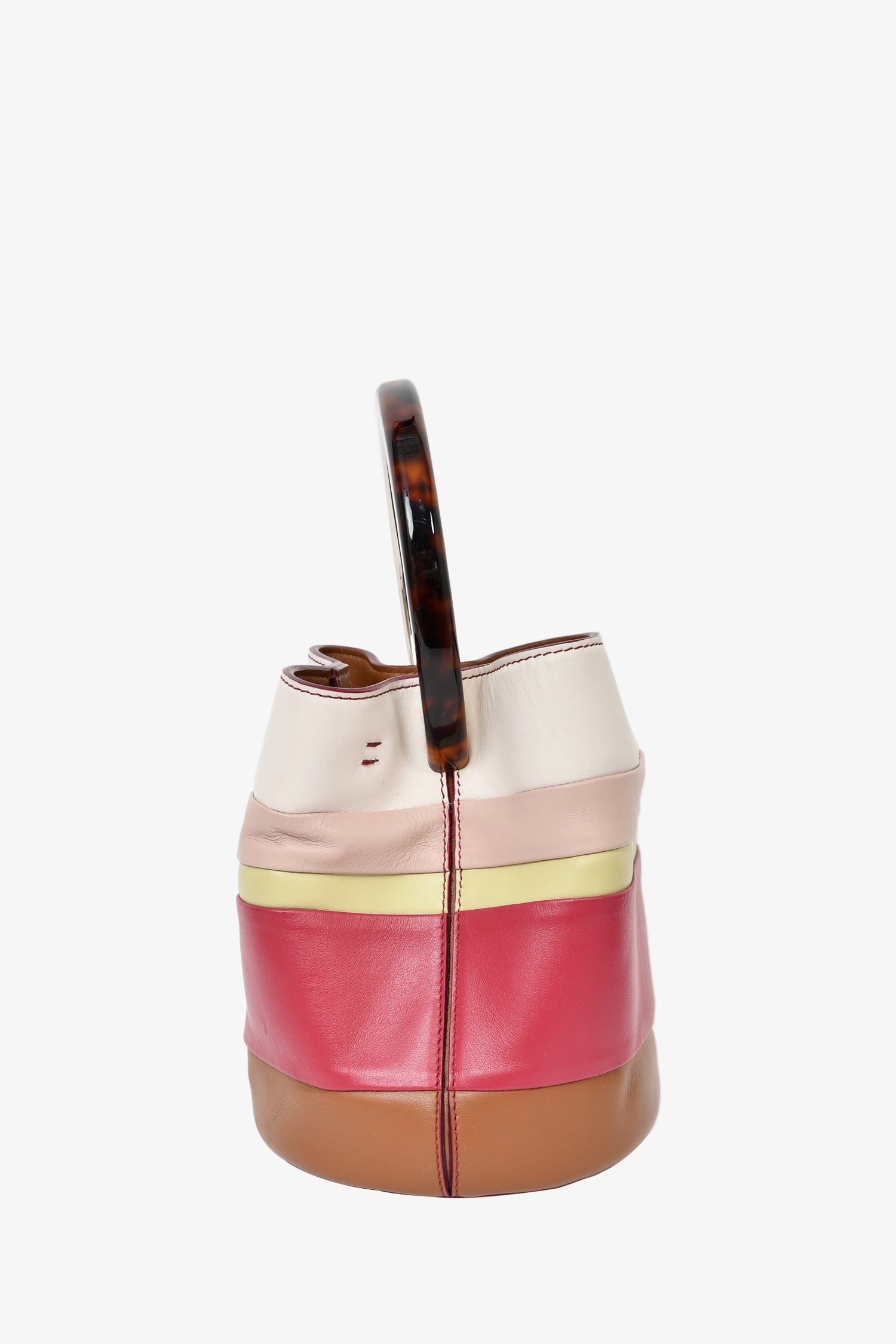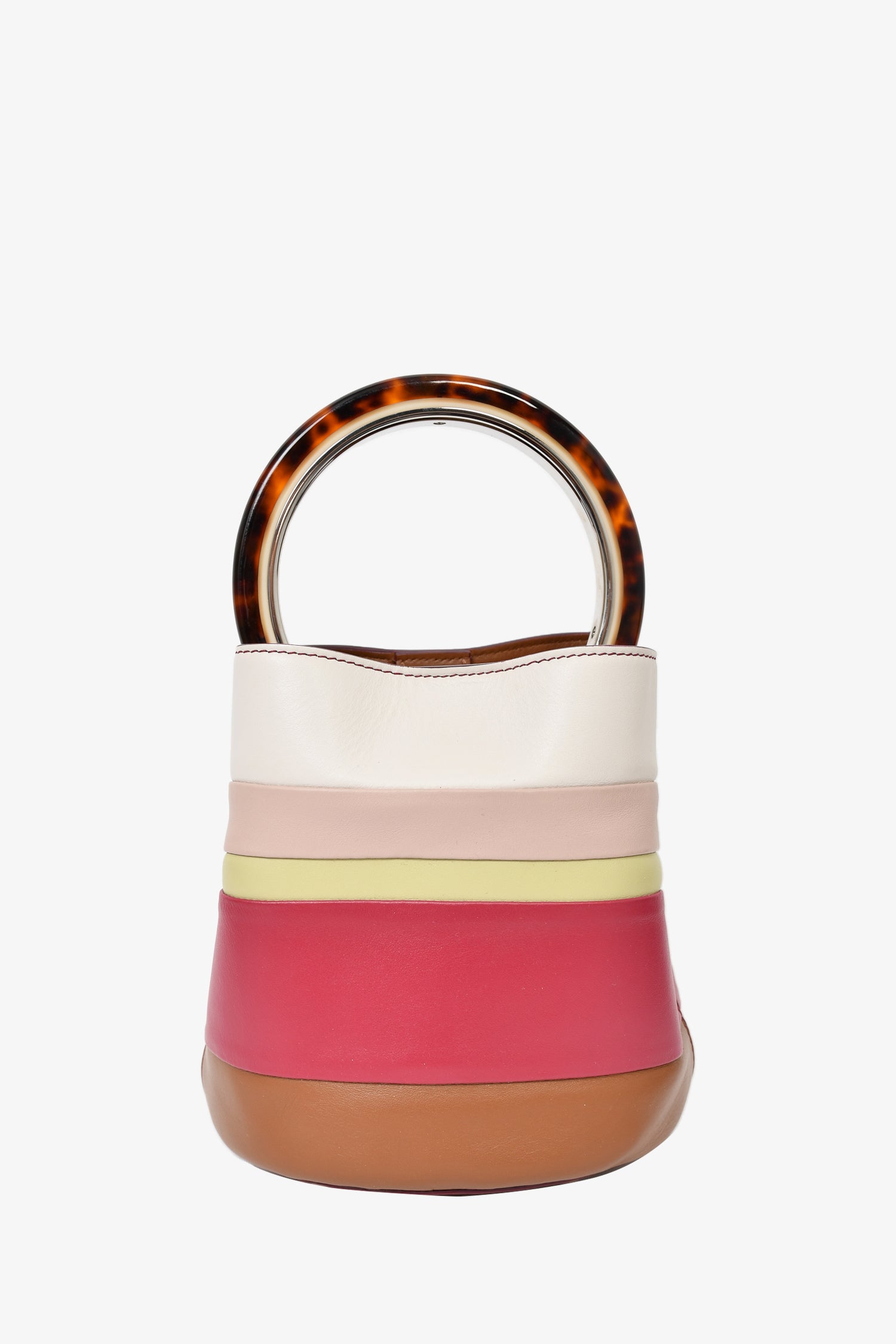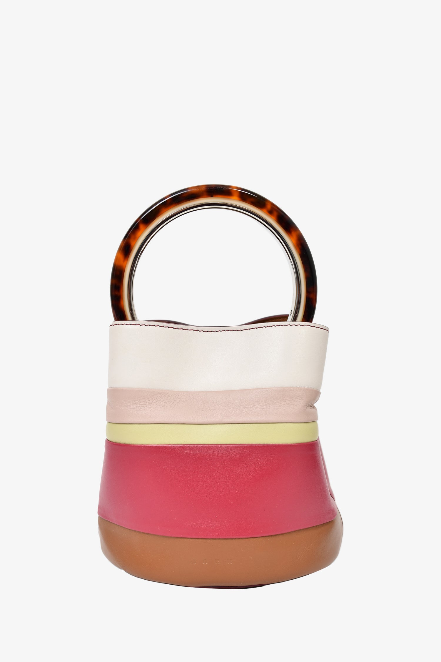 Marni Cream/Purple Striped Leather 'Pannier' Tortoiseshell Top Handle Bag with Strap and Pouch