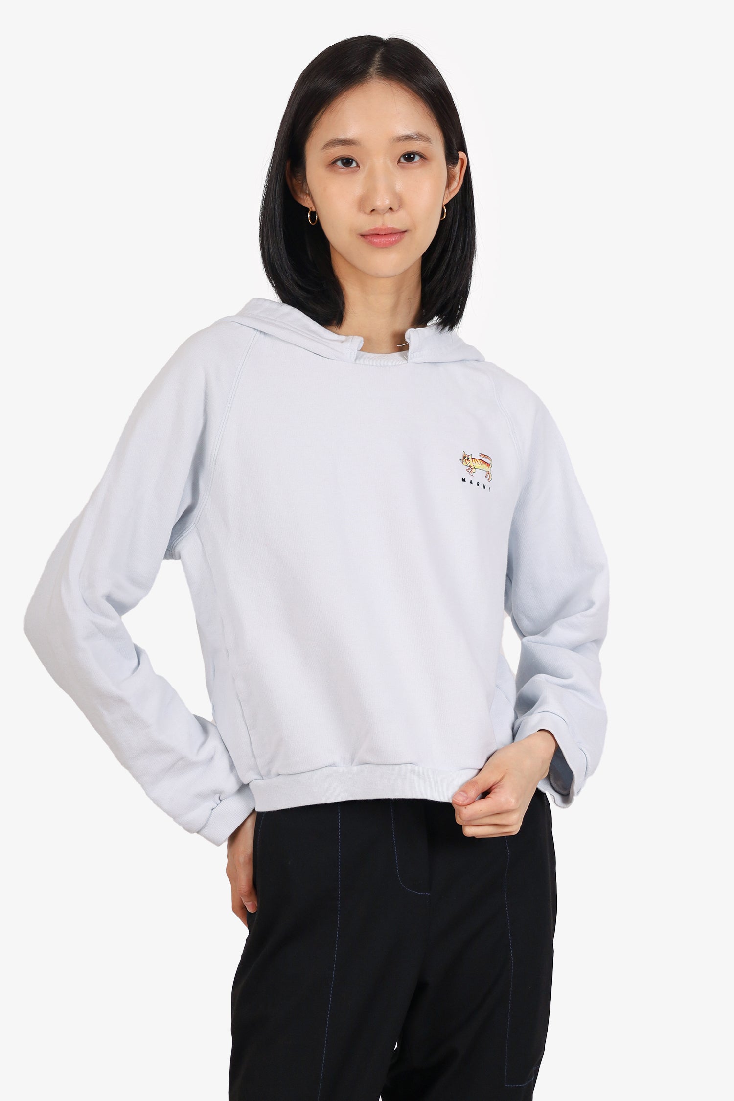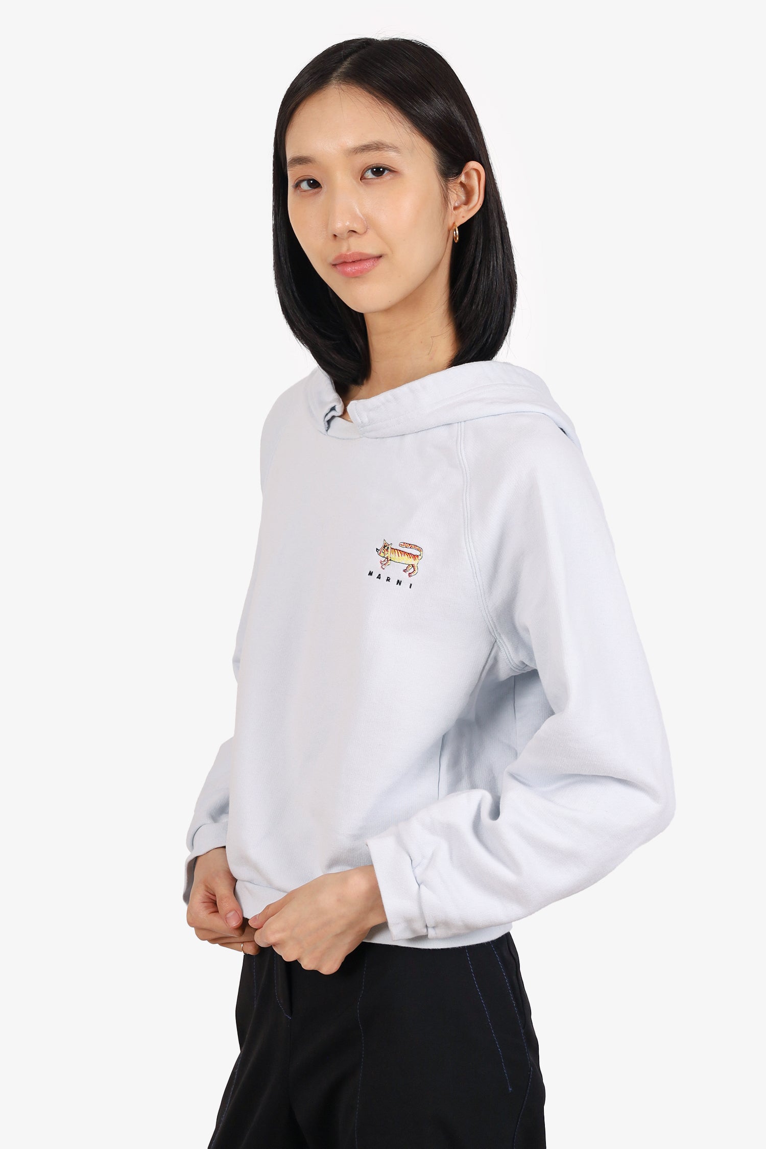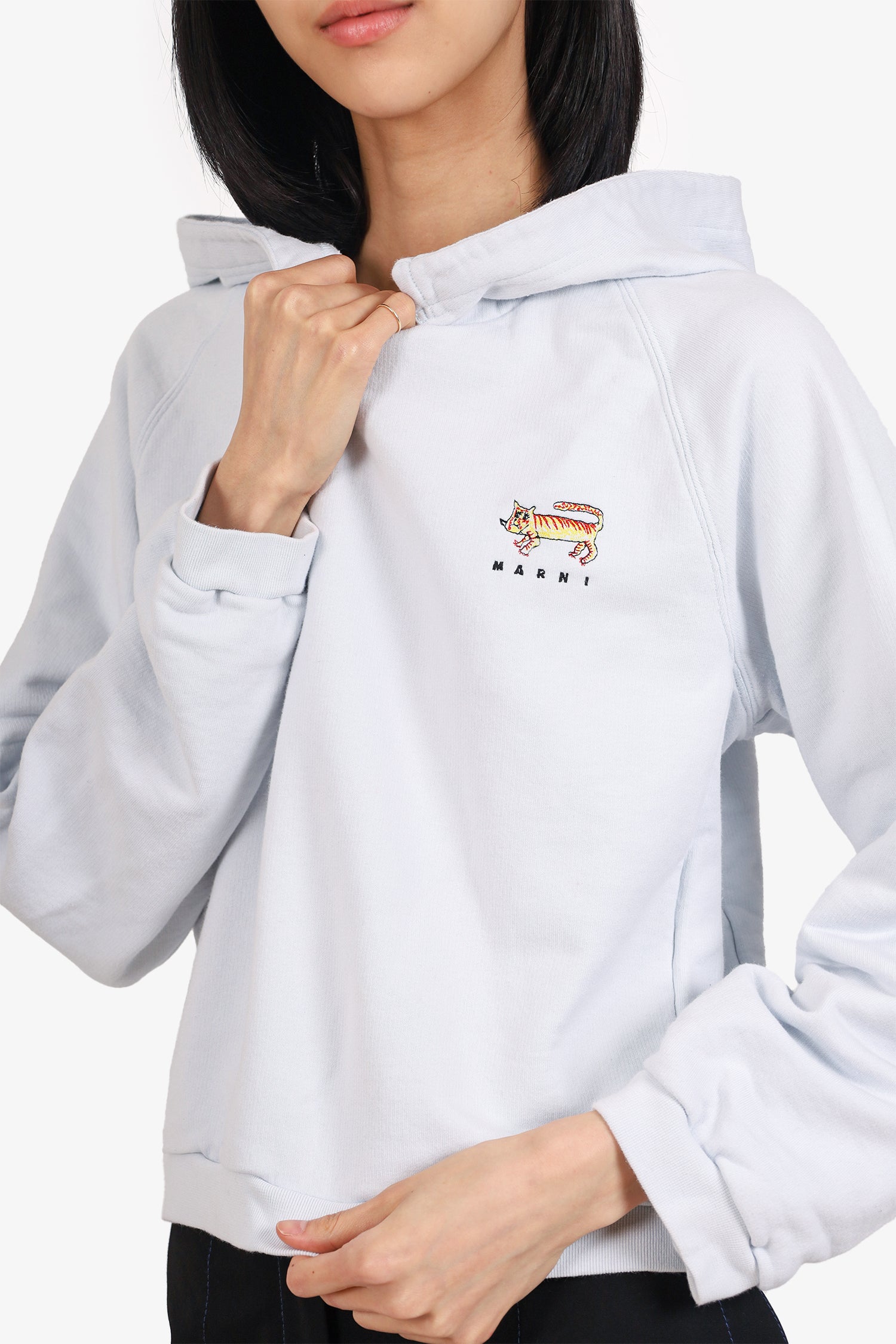 Refresh availabilityMarni Light Blue Graphic Print Hoodie. Pull-on. Ribbed elasticated sleeve cuffs and waistband. Tonal stitching.