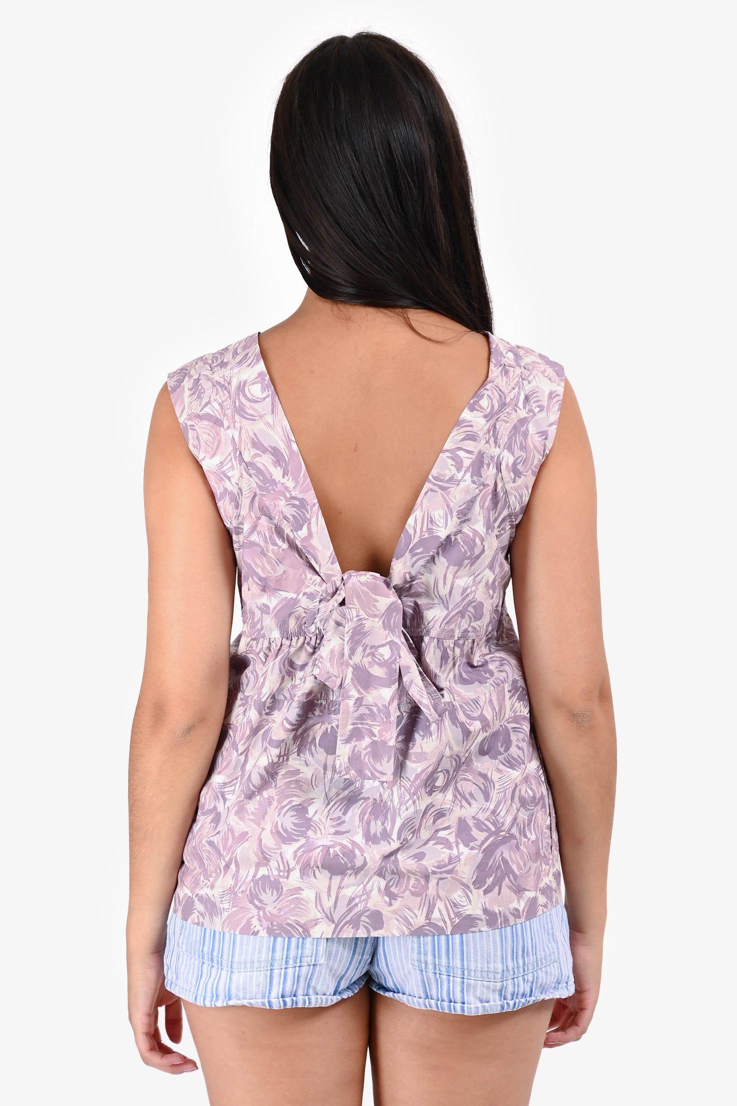 Refresh availabilityMarni Lilac/Cream Printed Cotton Sleeveless Top. V-neckline. Halter neck tie detail. Tonal stitching.