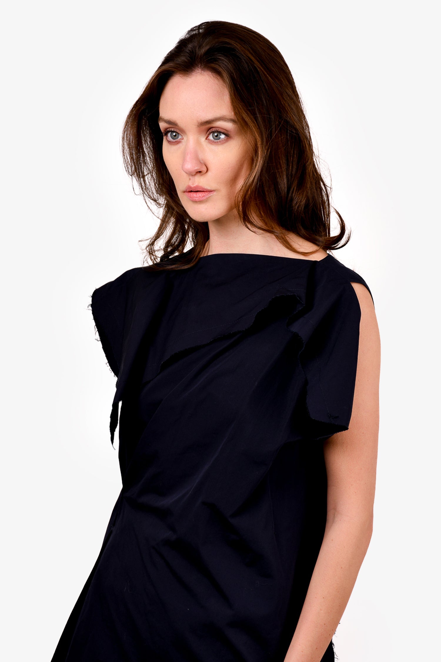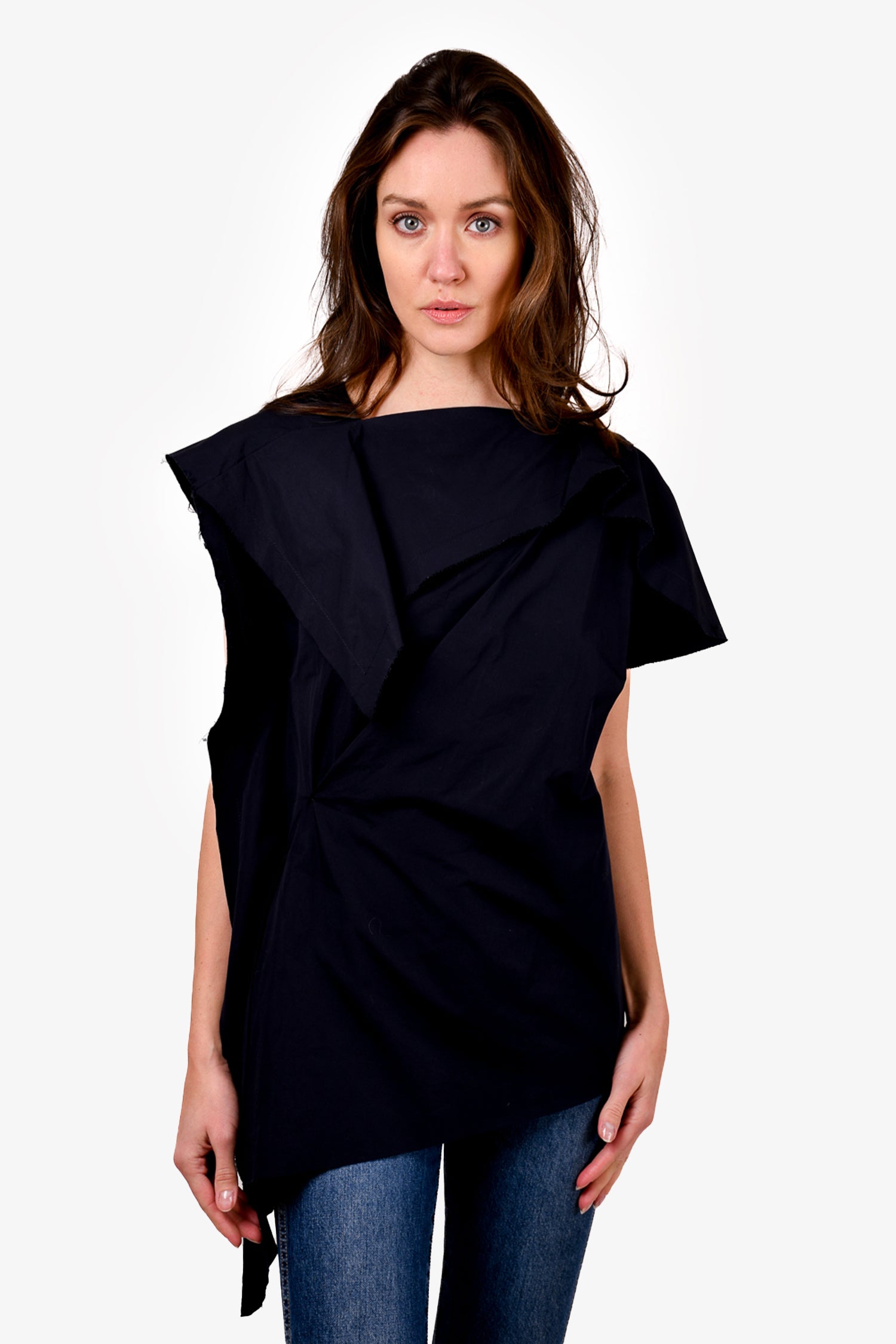 Marni Navy Asymmetric Sleeveless Cotton Top Size 40
