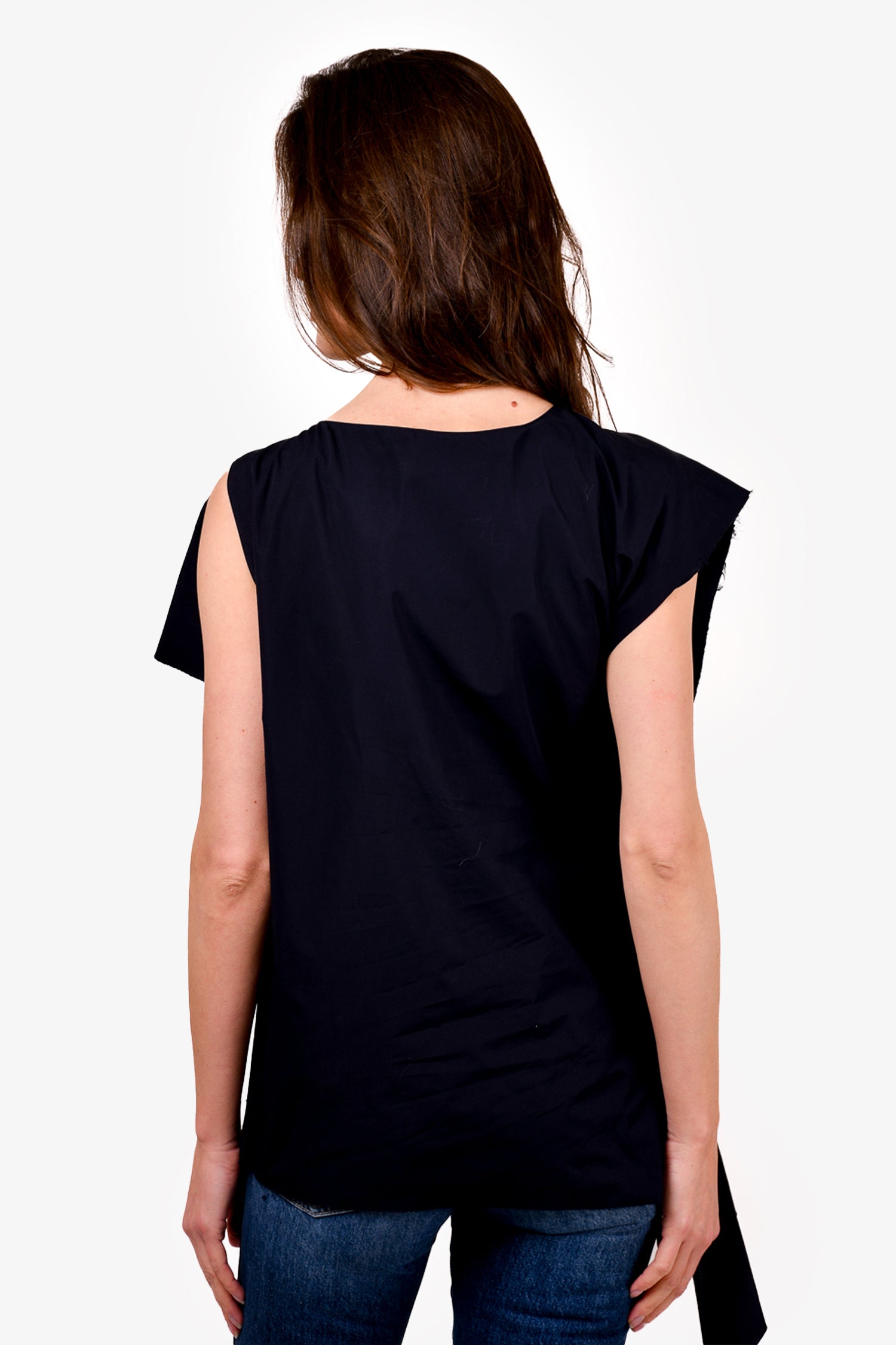 Refresh availabilityMarni Navy Asymmetric Sleeveless Cotton Top. Pull-on. Tonal stitching.