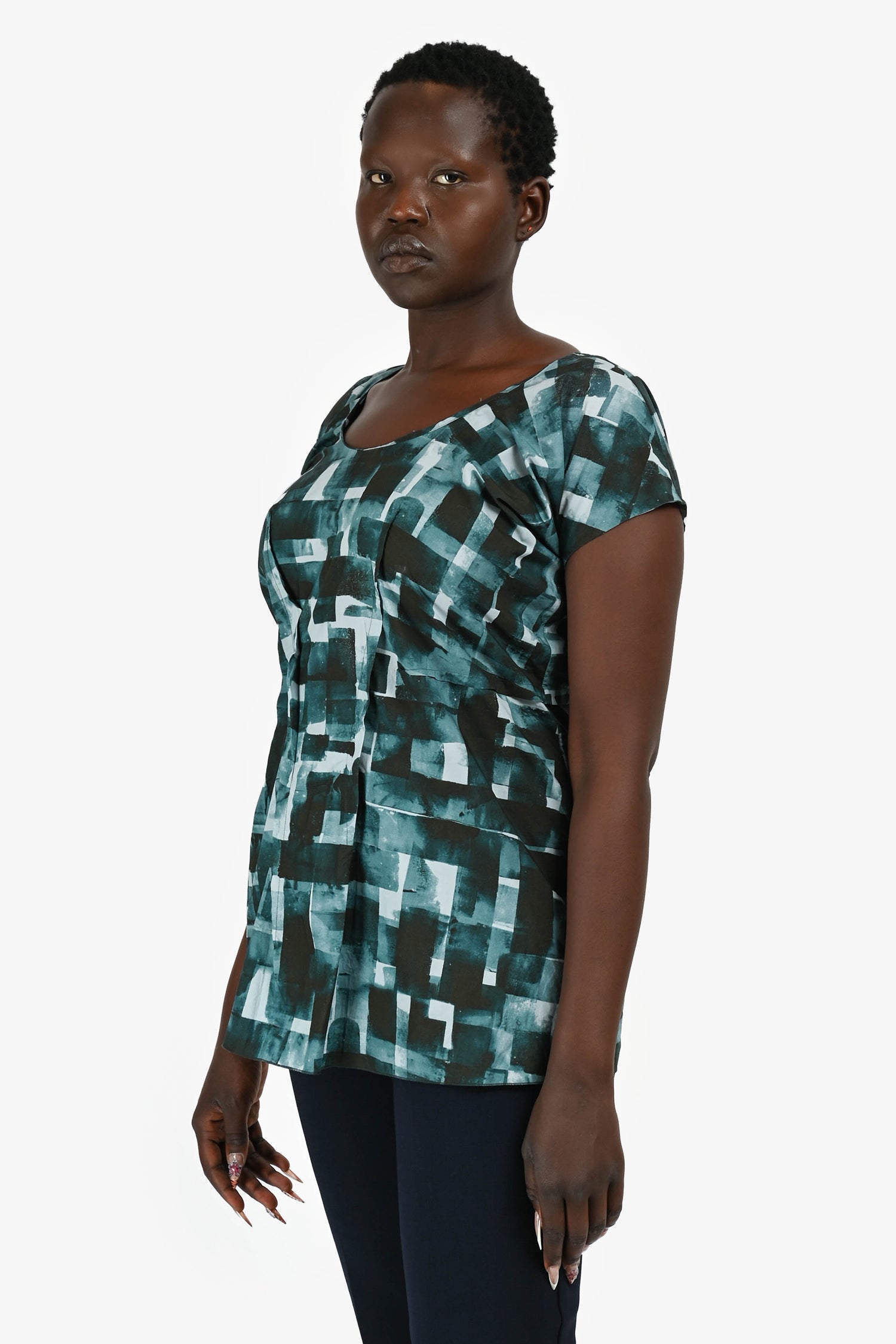 Marni Navy/Black Cotton Square Patterned Top Size 42
