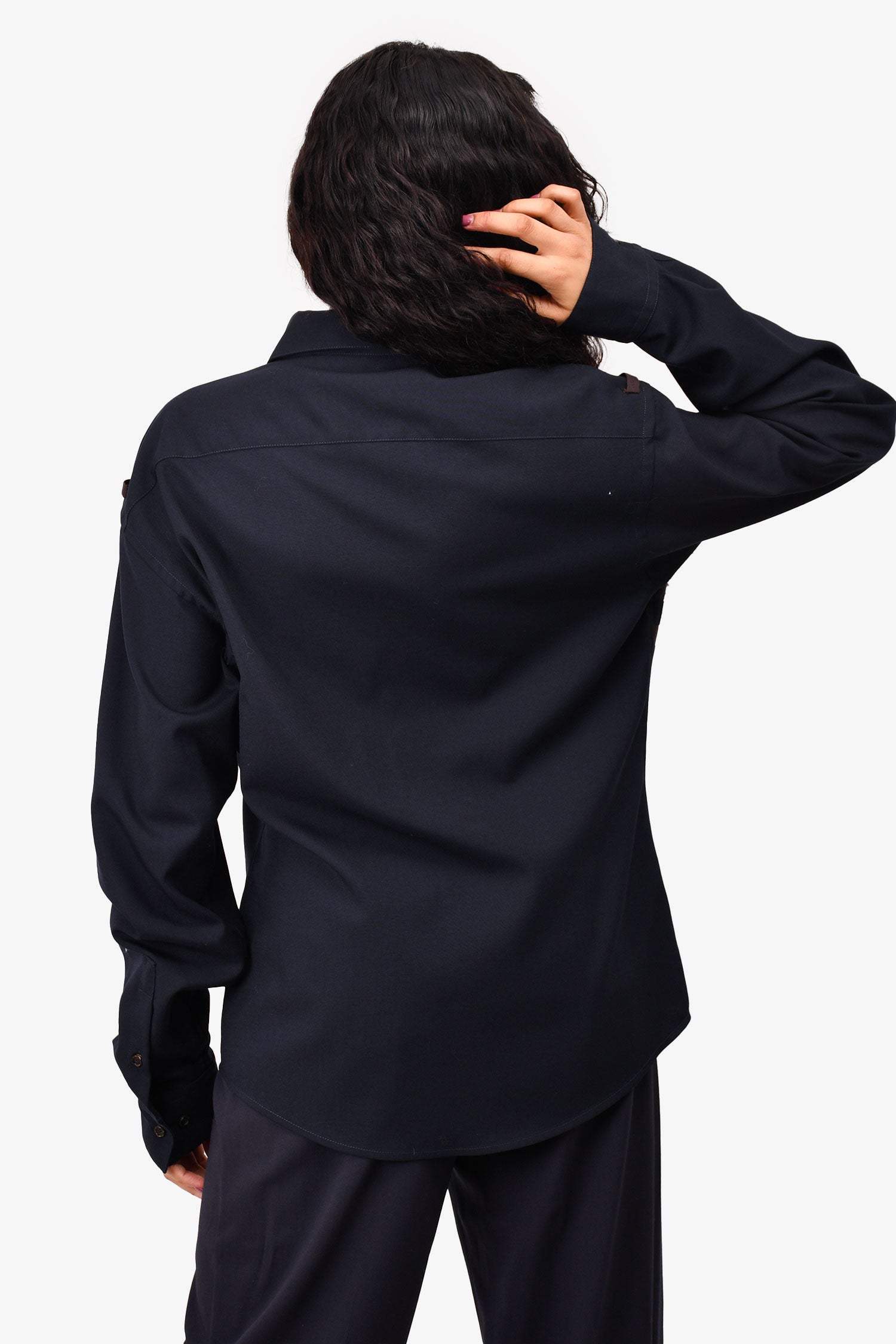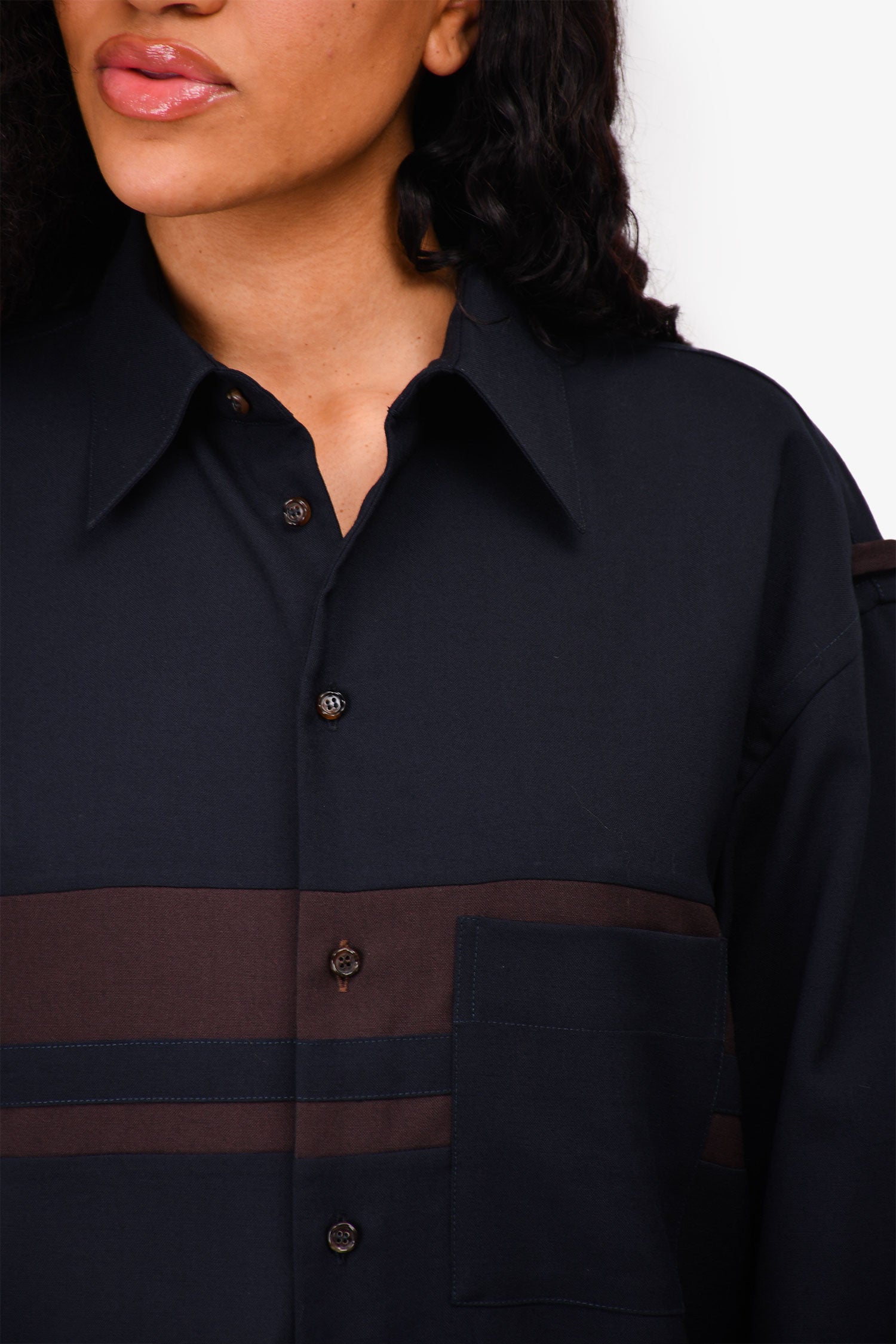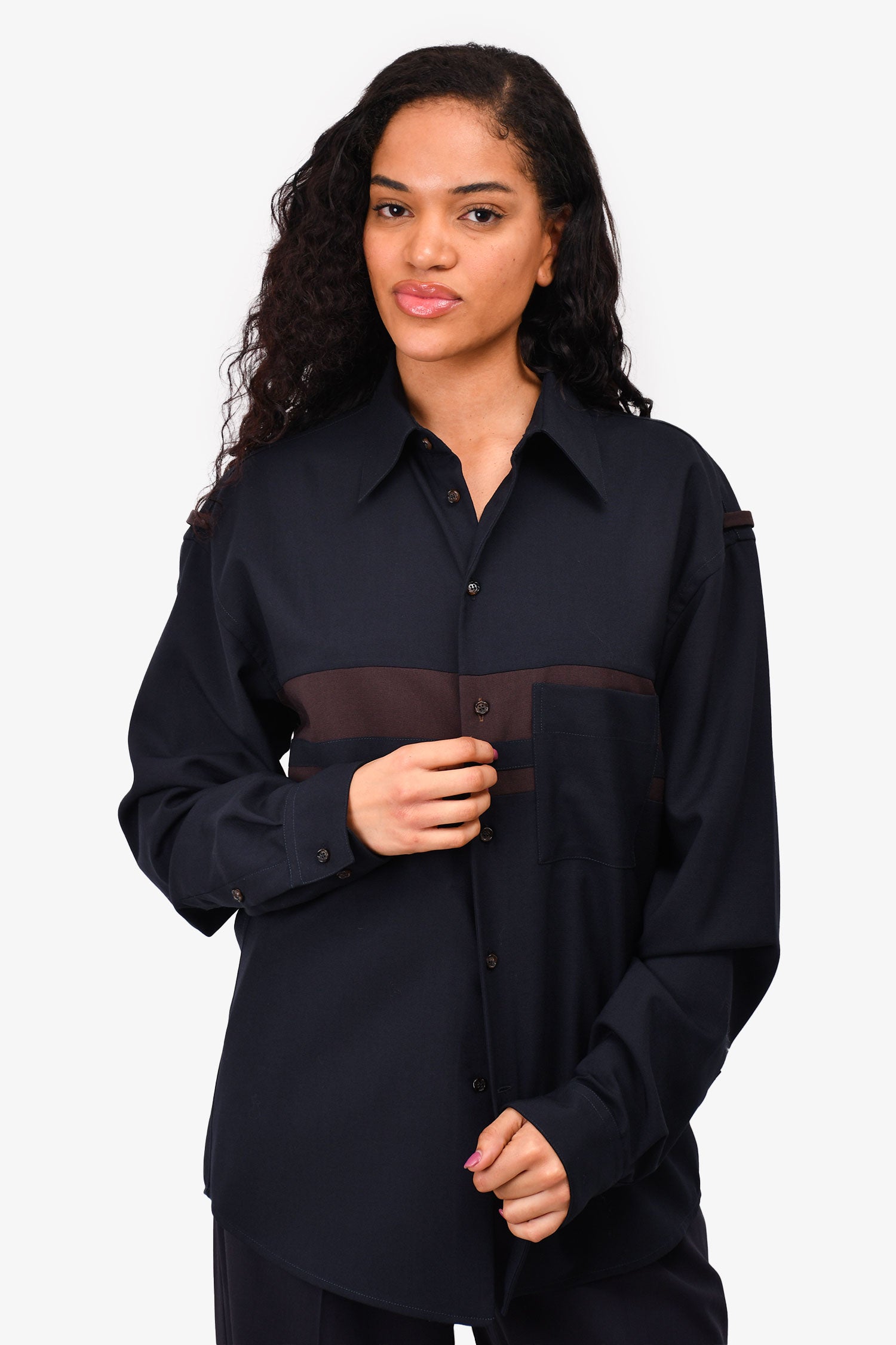 Marni Navy/Brown Wool Oversized Buttoned Shirt Size 48