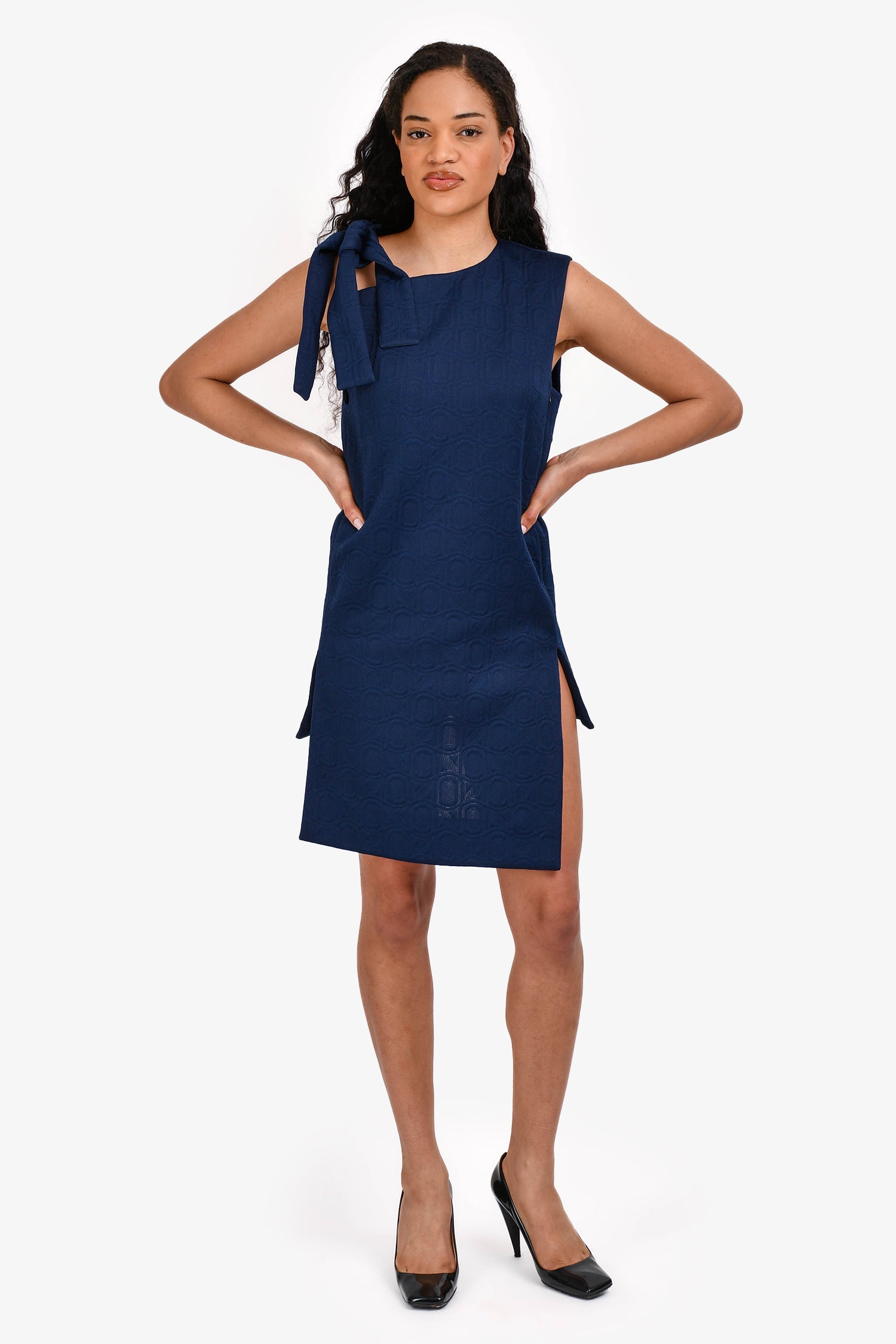 Marni Navy Sleeveless Midi Dress with Neck Tie Size 40
