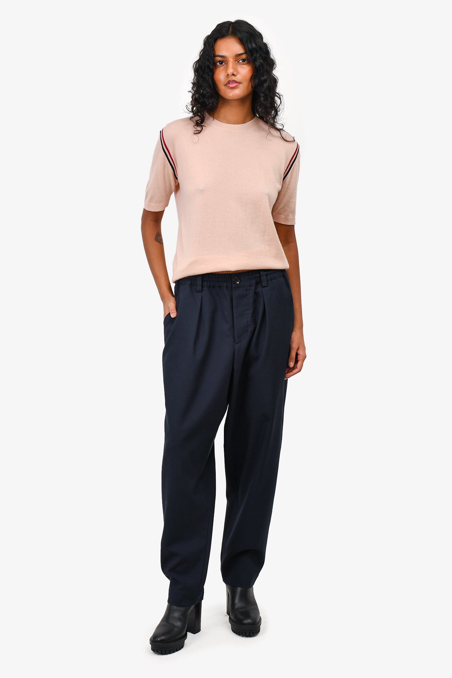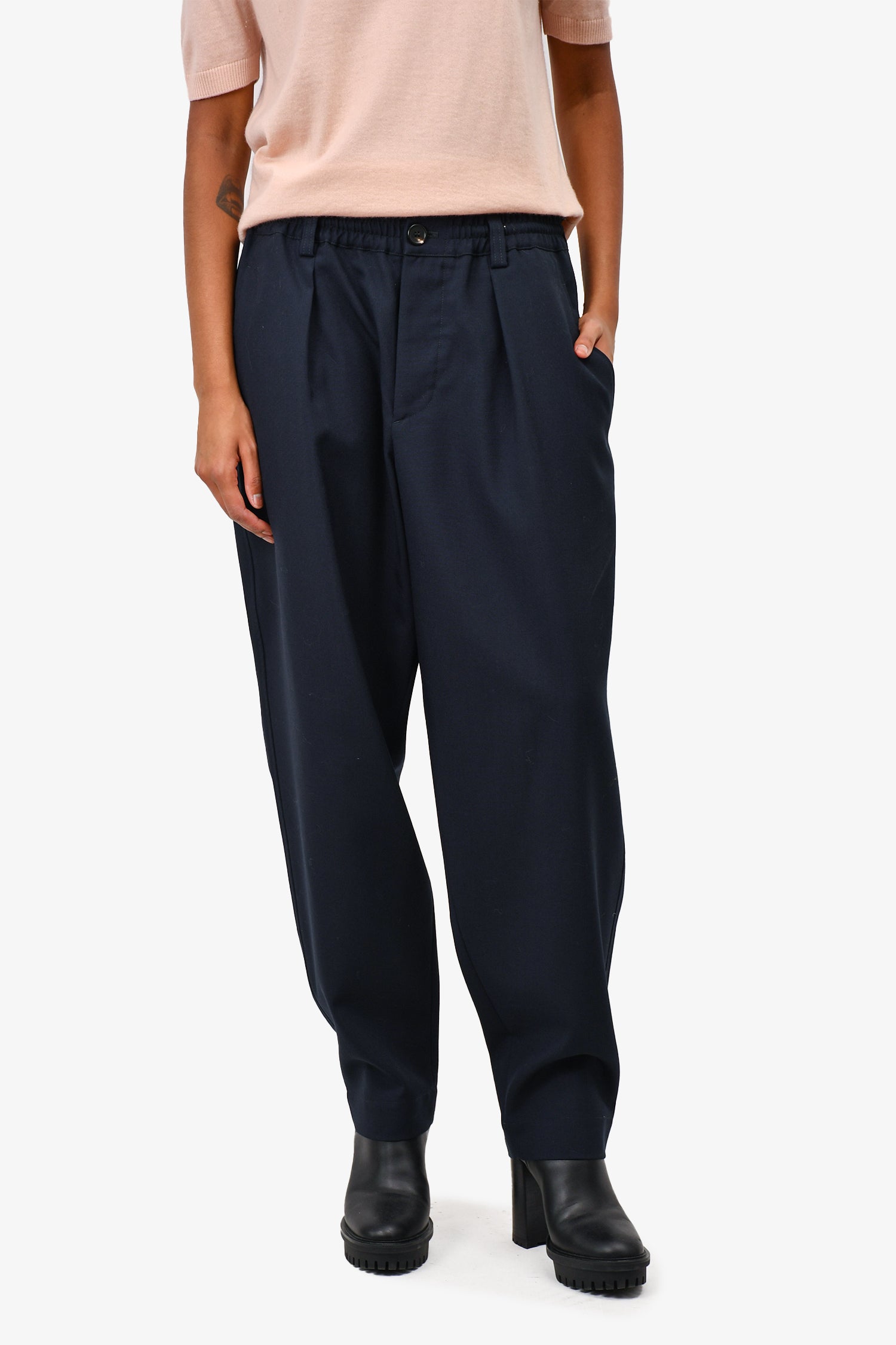 Marni Navy Wool Blend Pleated Trousers Size 46
