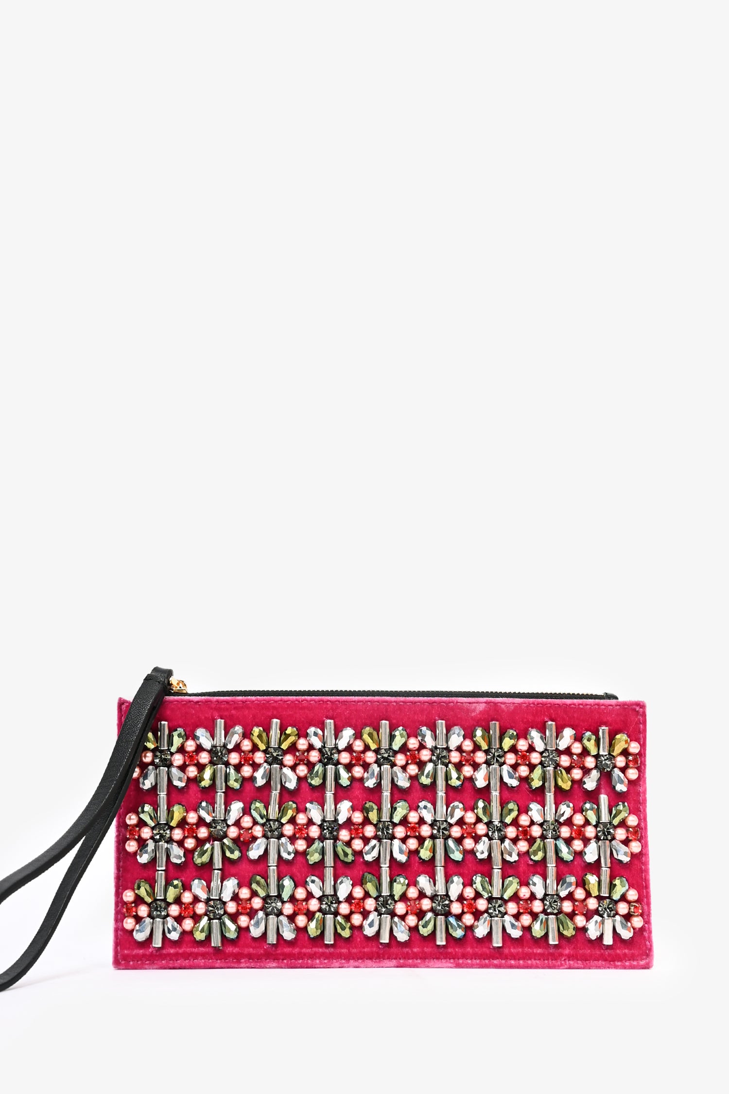 Marni Pink Velvet Crystal Embellished Wristlet
