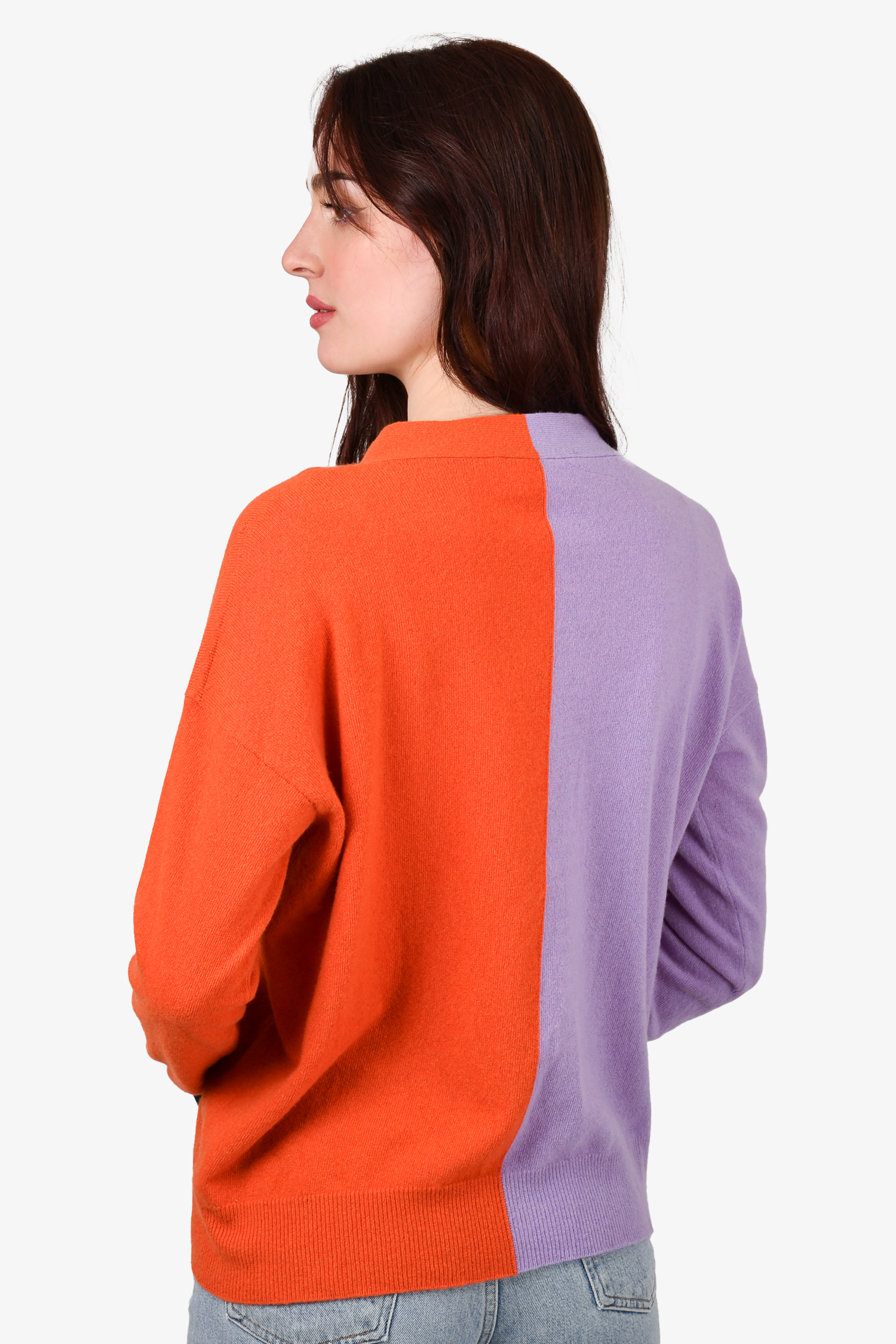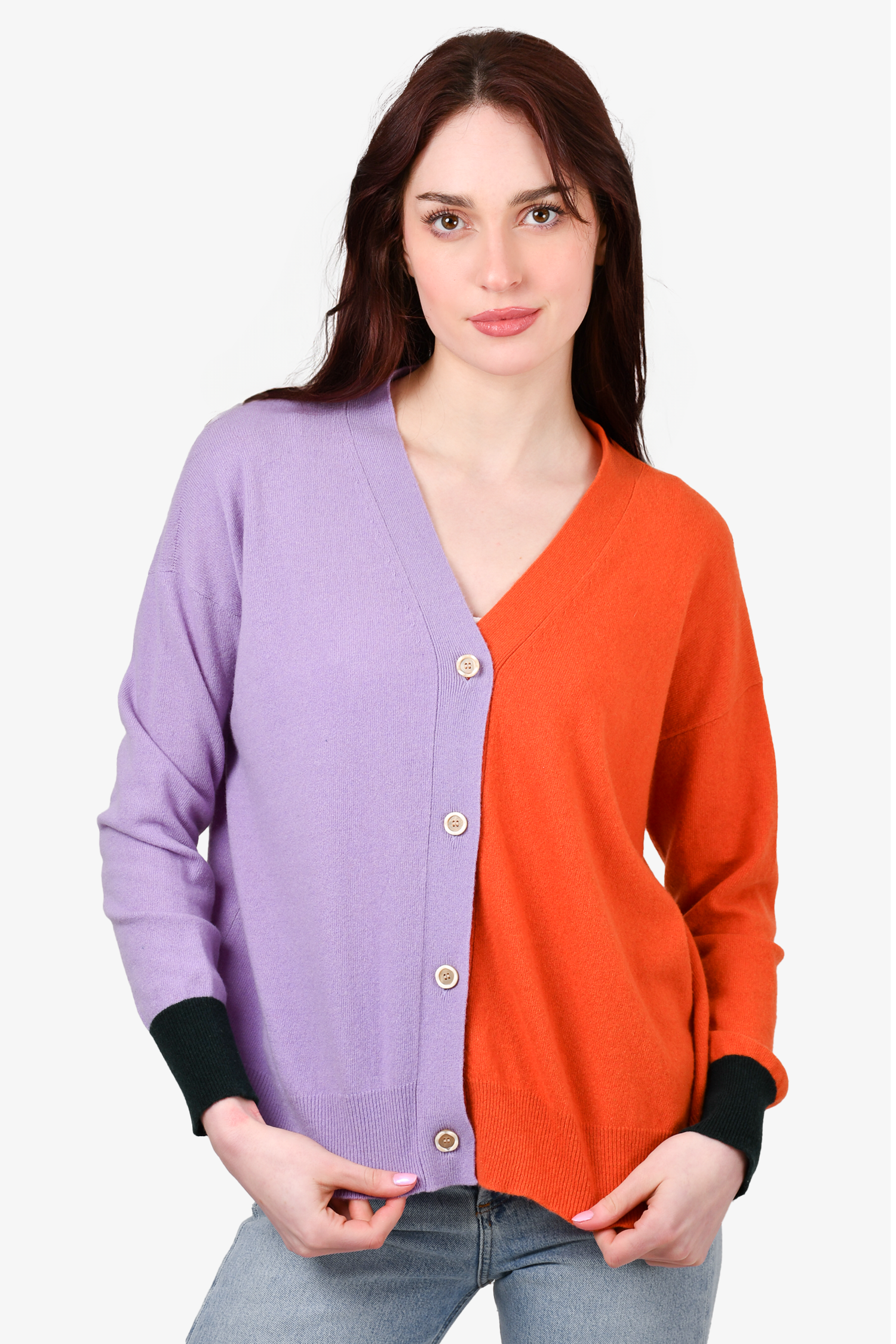 Refresh availabilityMarni Purple/Orange Cashmere Button Down Cardigan. V-neck. Ribbed neck, cuffs and hem. Tonal stitching.