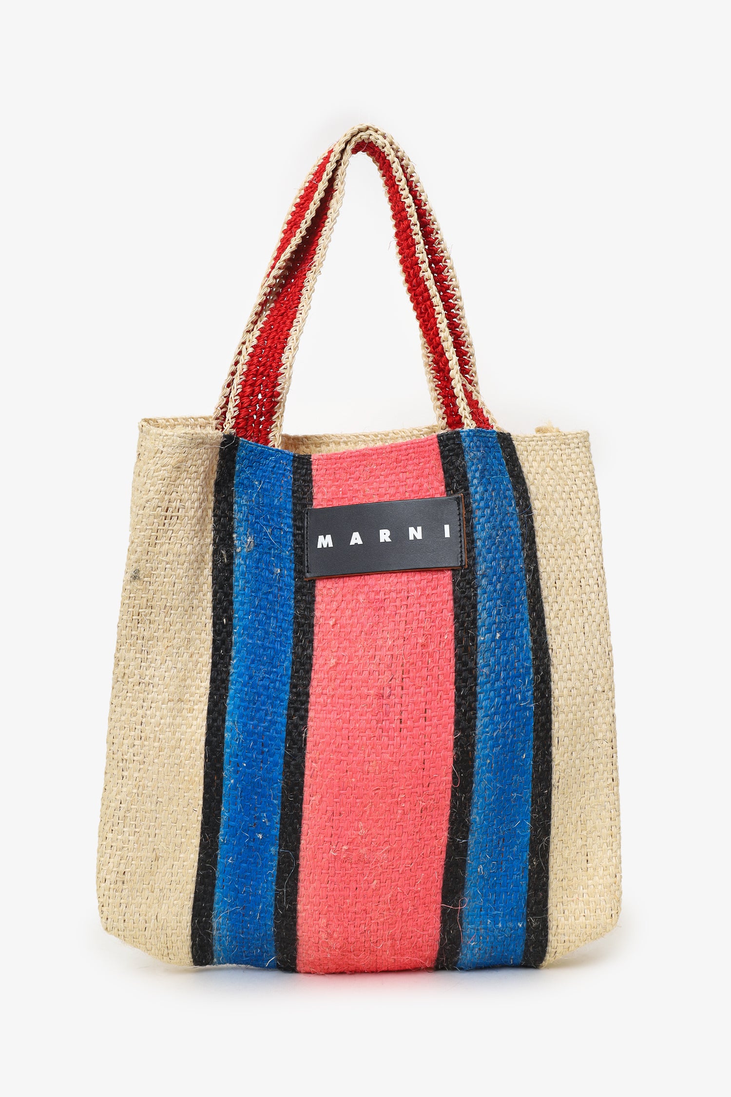 Refresh availabilityMarni Raffia Blue/Red Stripped Tote Bag. Twin shoulder strap. Unlined. Tonal stitching.