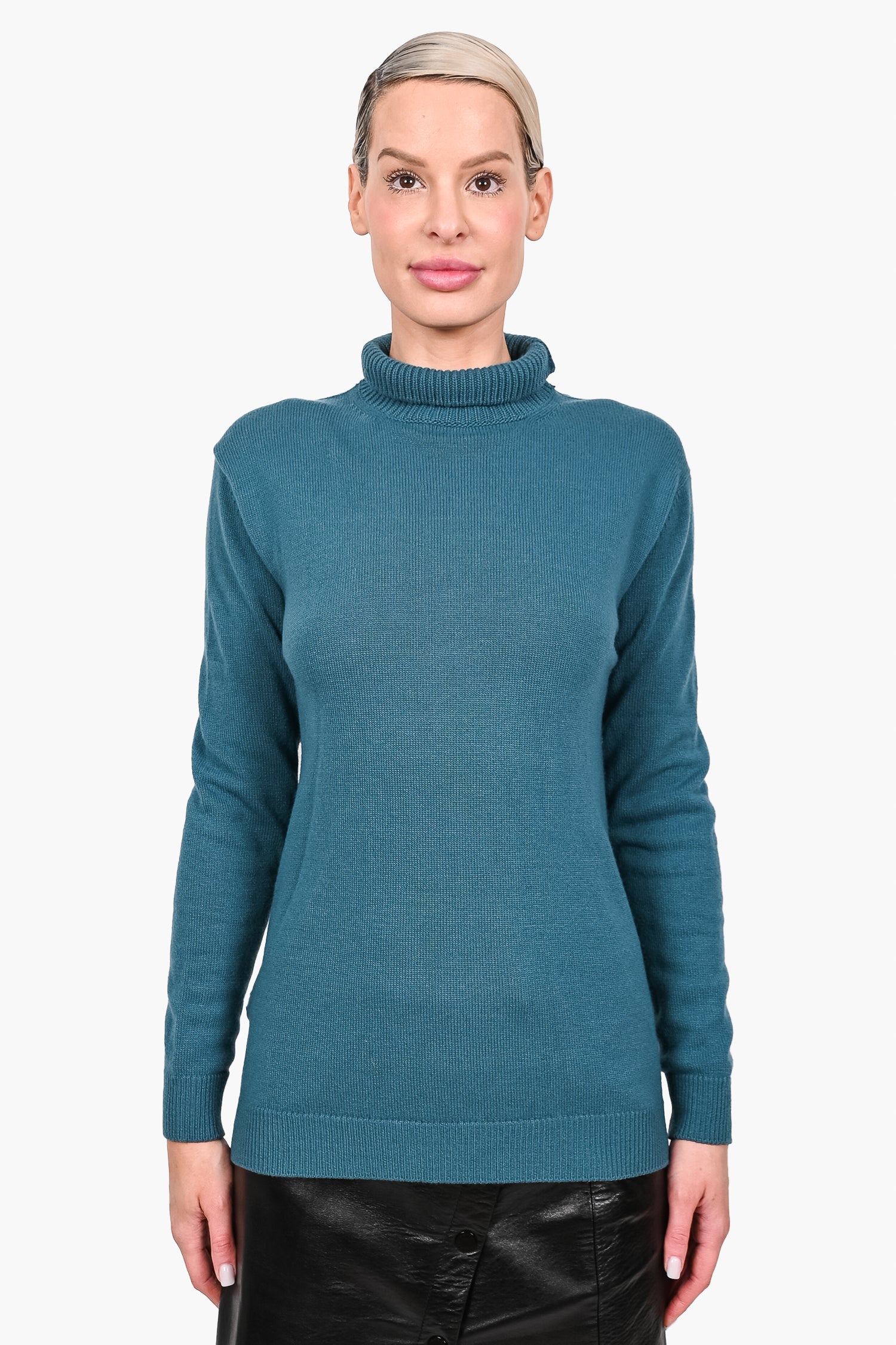 Refresh availabilityMarni Teal Wool/Cashmere Knit Sweater. Ribbed. Cut-out detail at the rear. Tonal stitching.