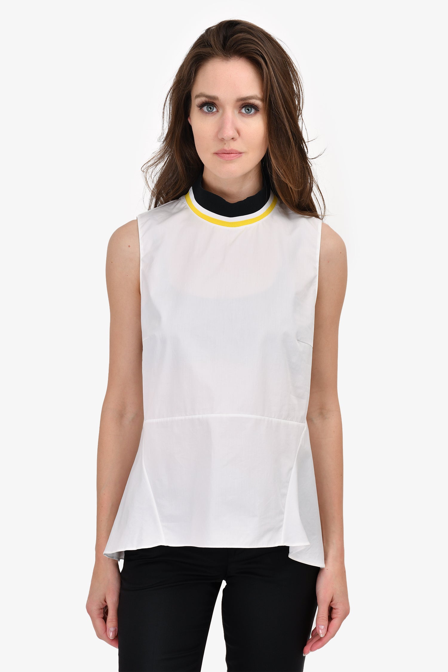 Refresh availabilityMarni White/Yellow Poplin Mock Neck Sleeveless Peplum Top. Rear zip closure.