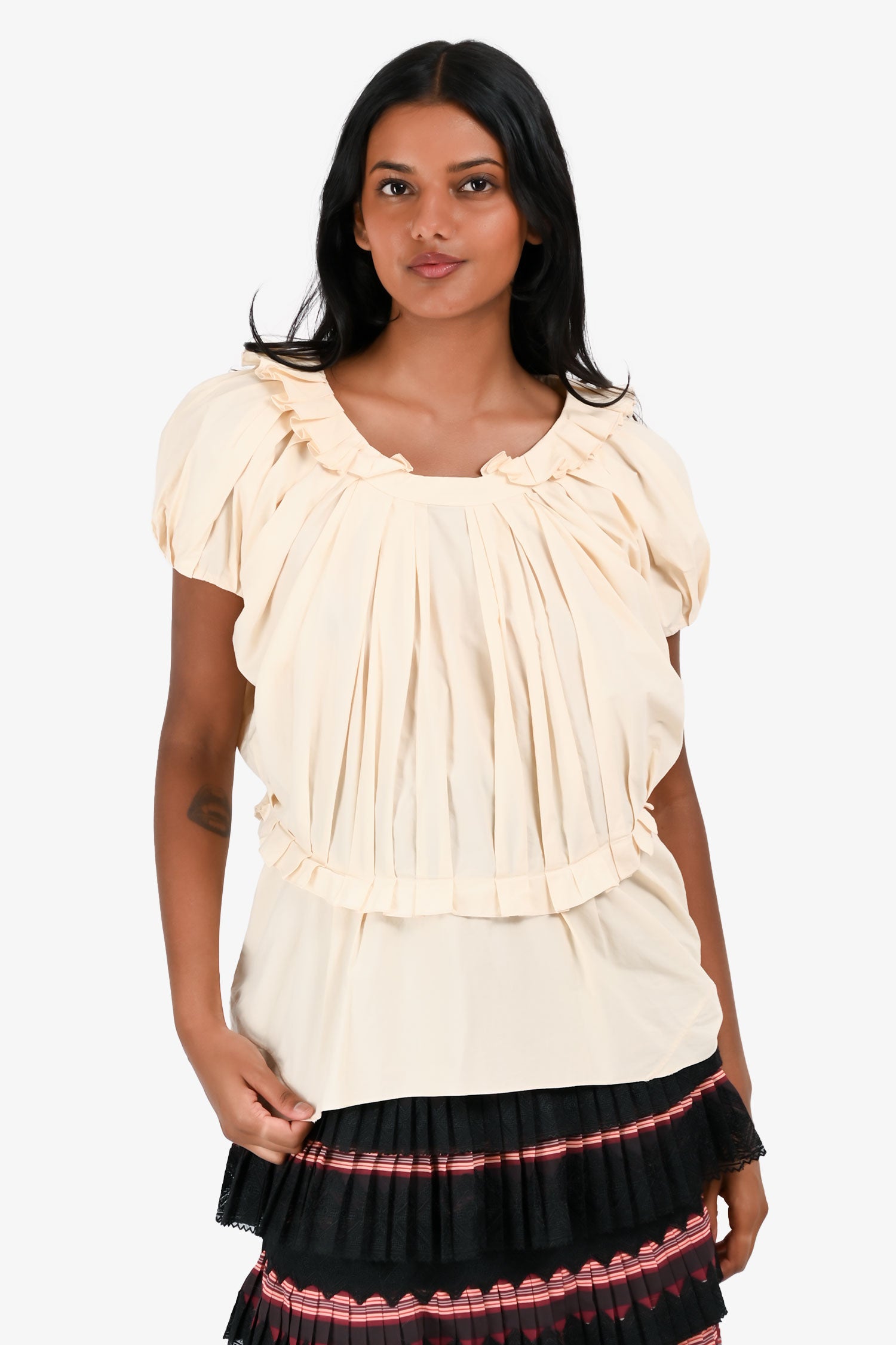 Refresh availabilityMarni Yellow Pleated Blouse. Snap button closure at the back of the neck. Puff sleeves. Tonal stitching.