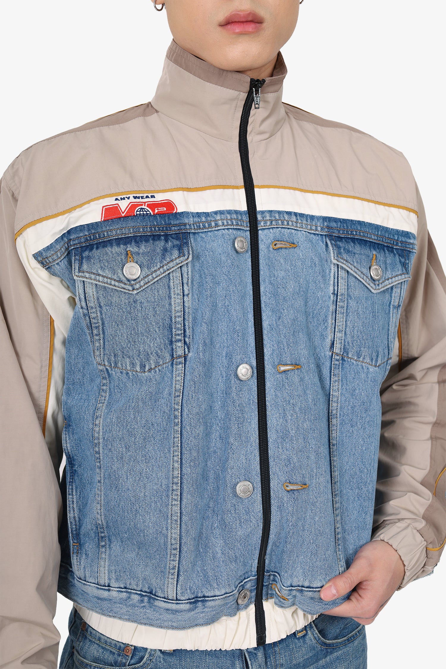 Martine Rose Blue and Beige Denim Hybrid Track Jacket Size S Mens