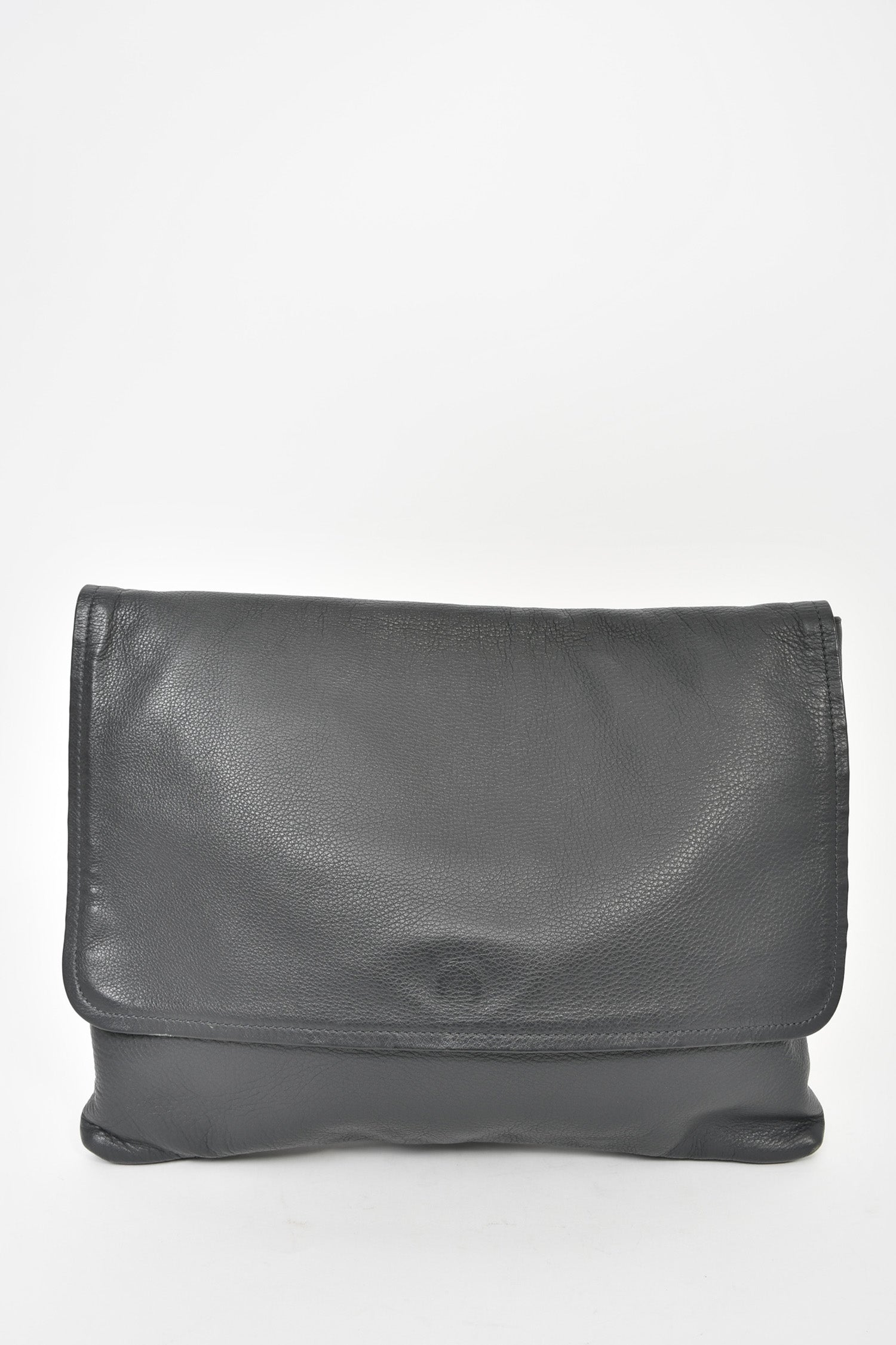 Refresh availabilityMasion Margiela Black Pebbled Leather Front Fold Pouch. Tonal textile interior lining. Single interior wall zip pocket. Tonal stitching.