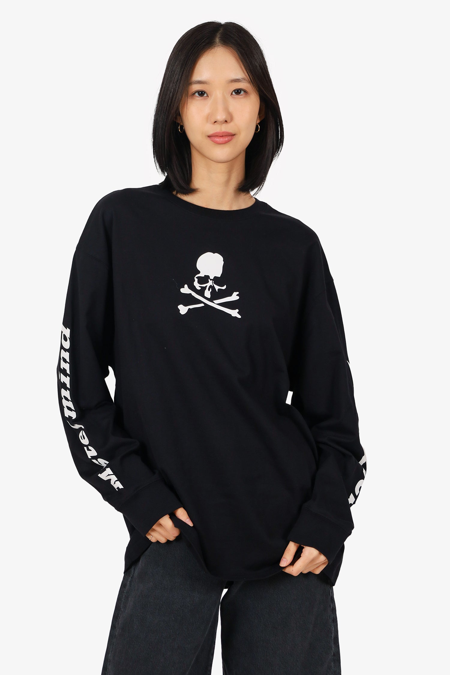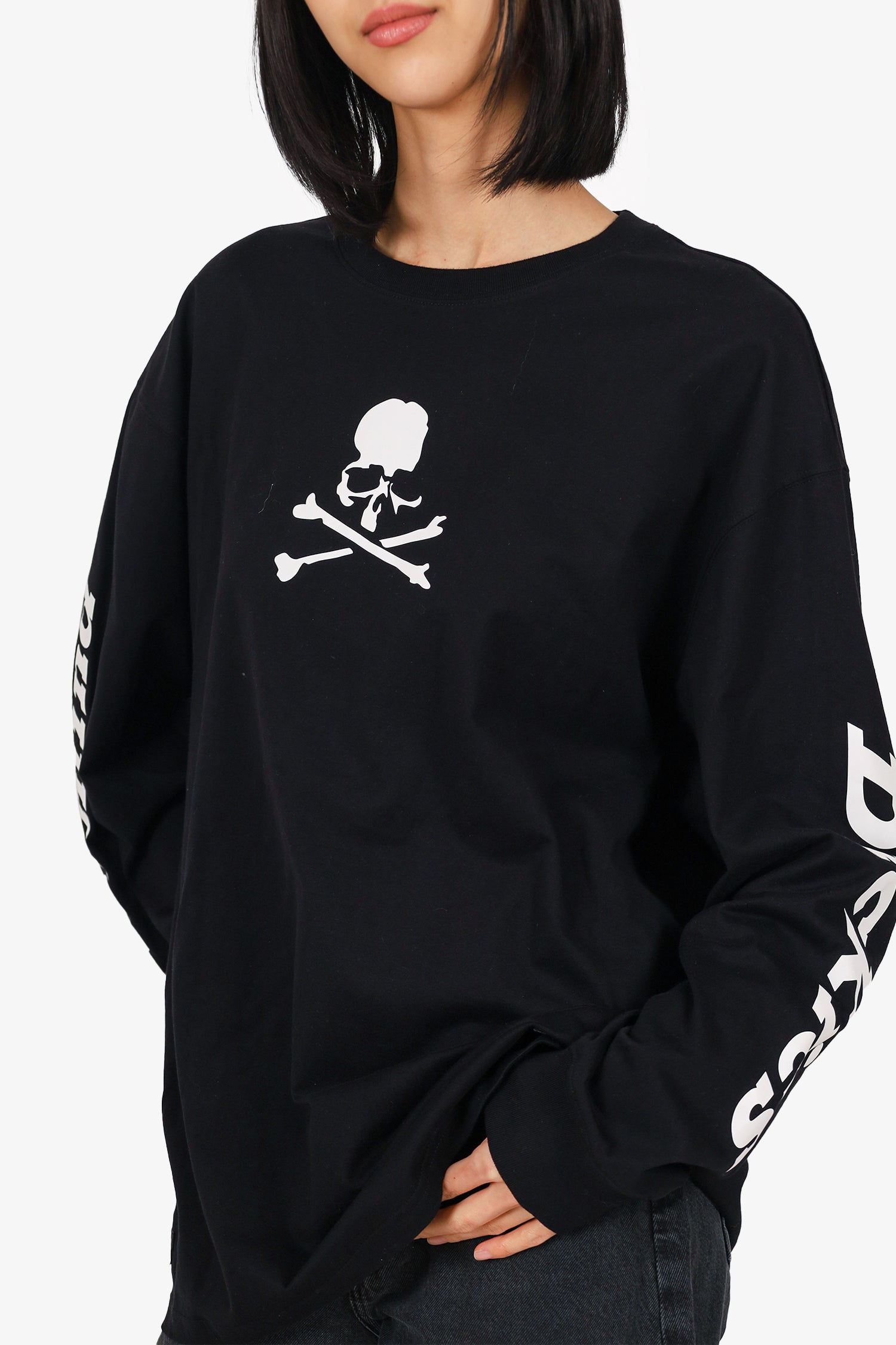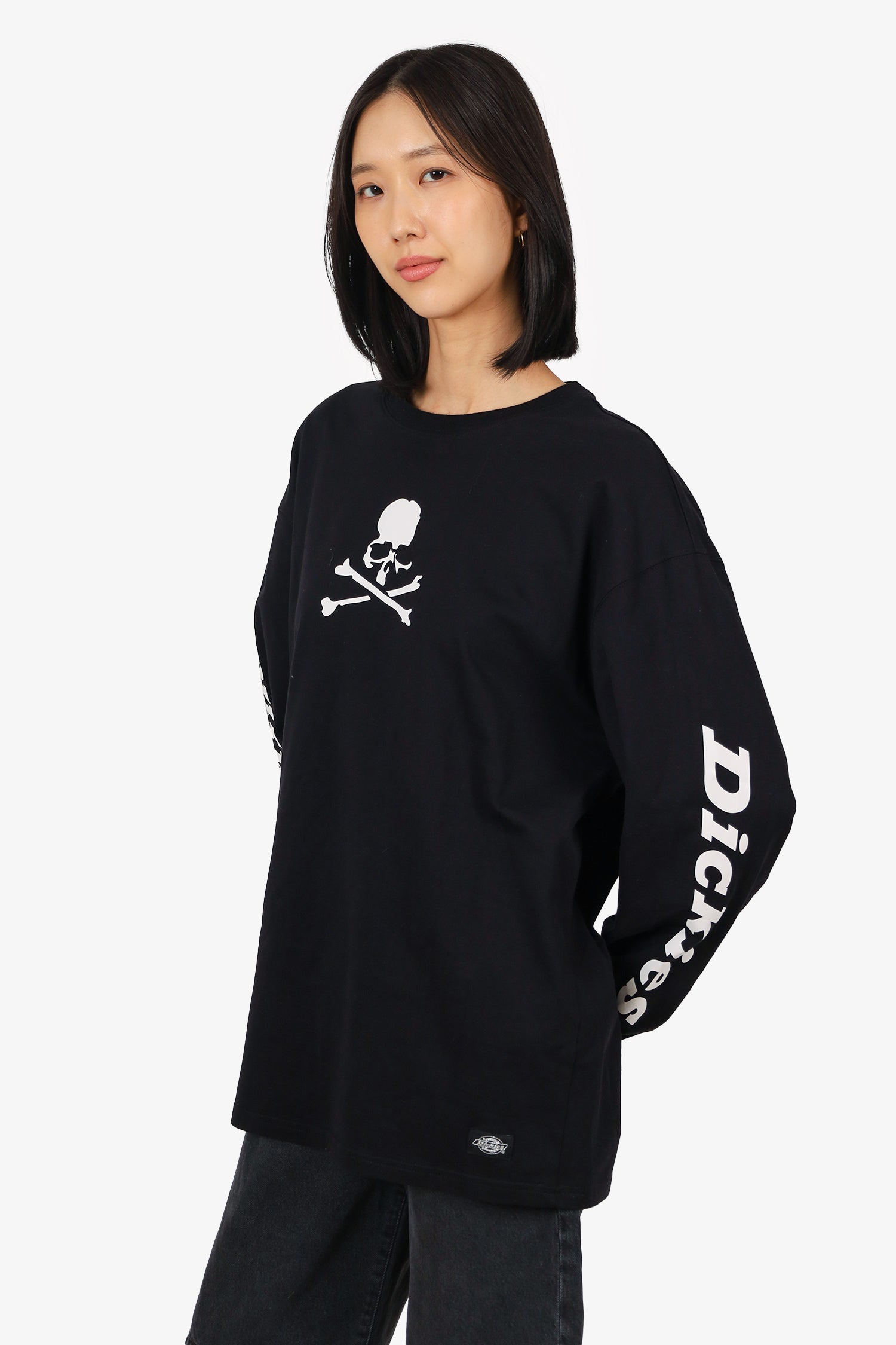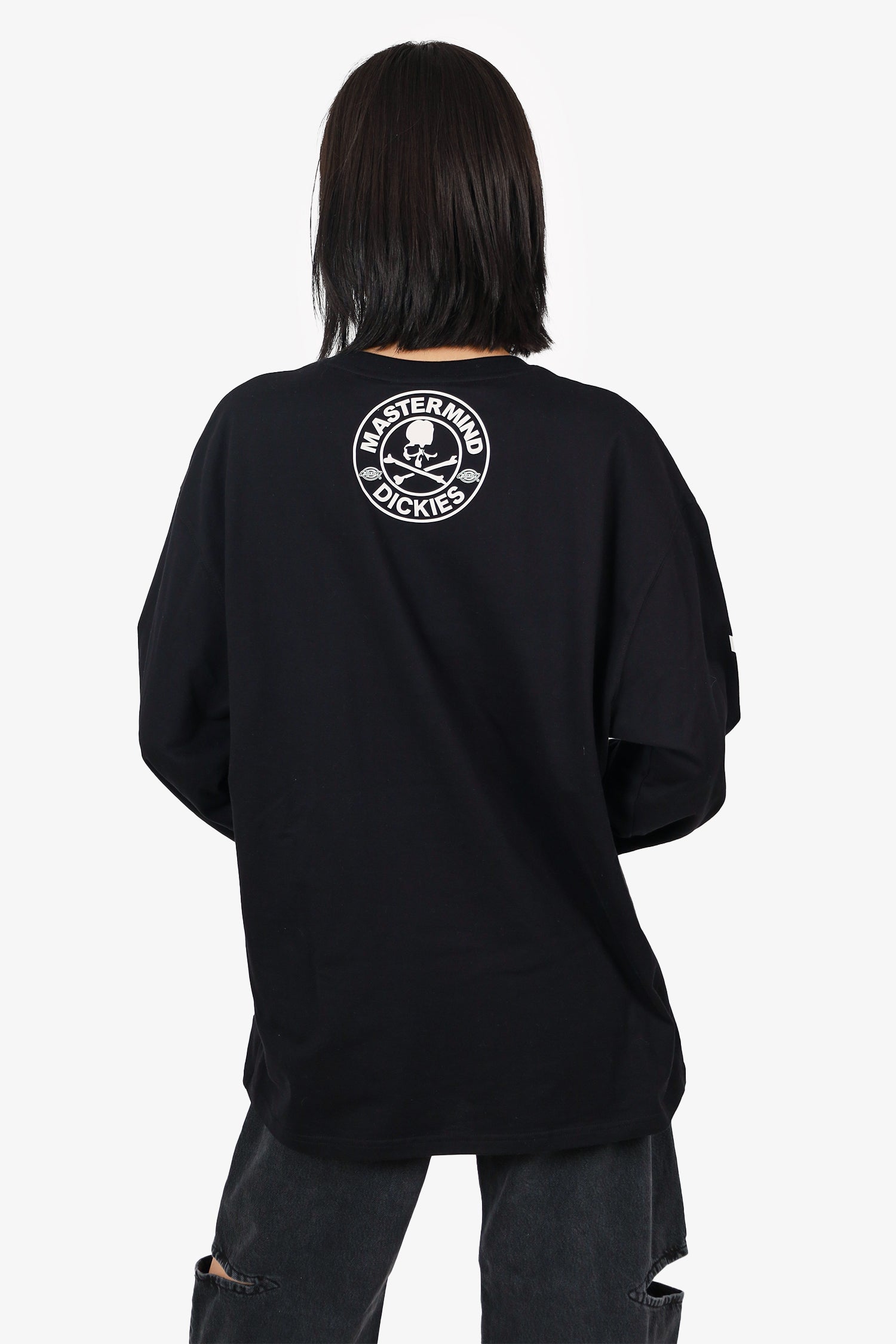 Refresh availabilityMastermind x Dickies Black/White Skull Long Sleeve Top. Pull-on. Round neckline. Tonal stitching.
