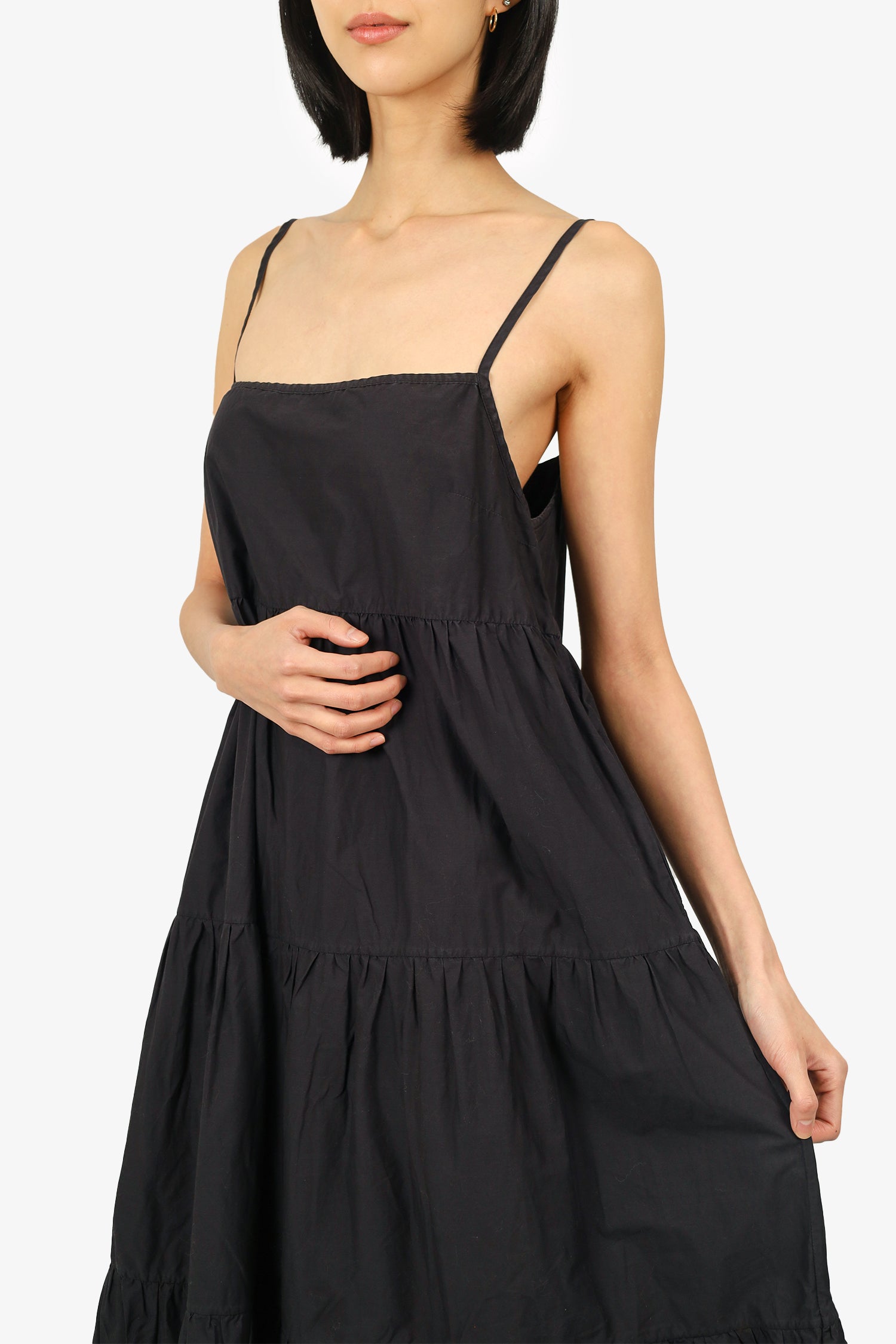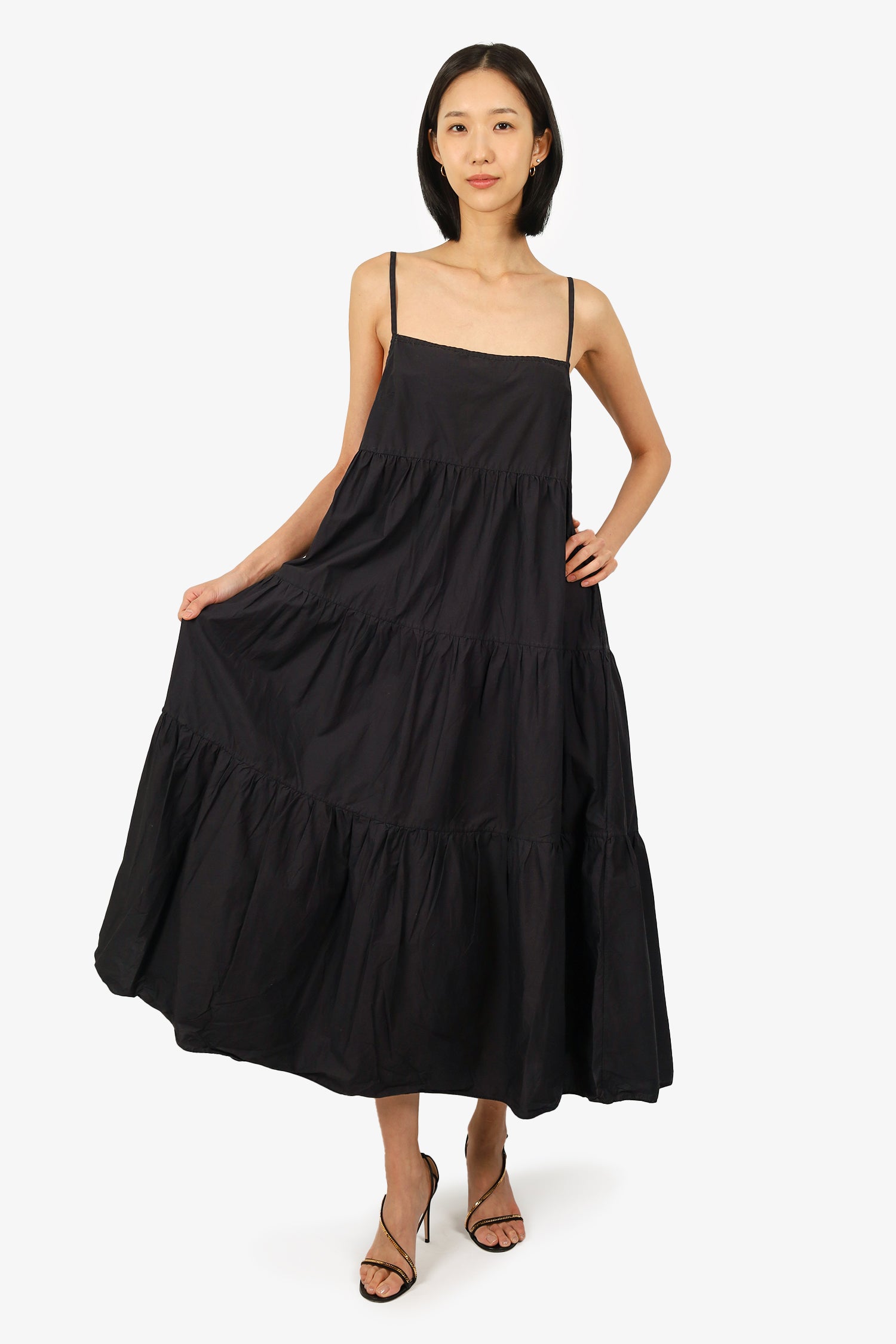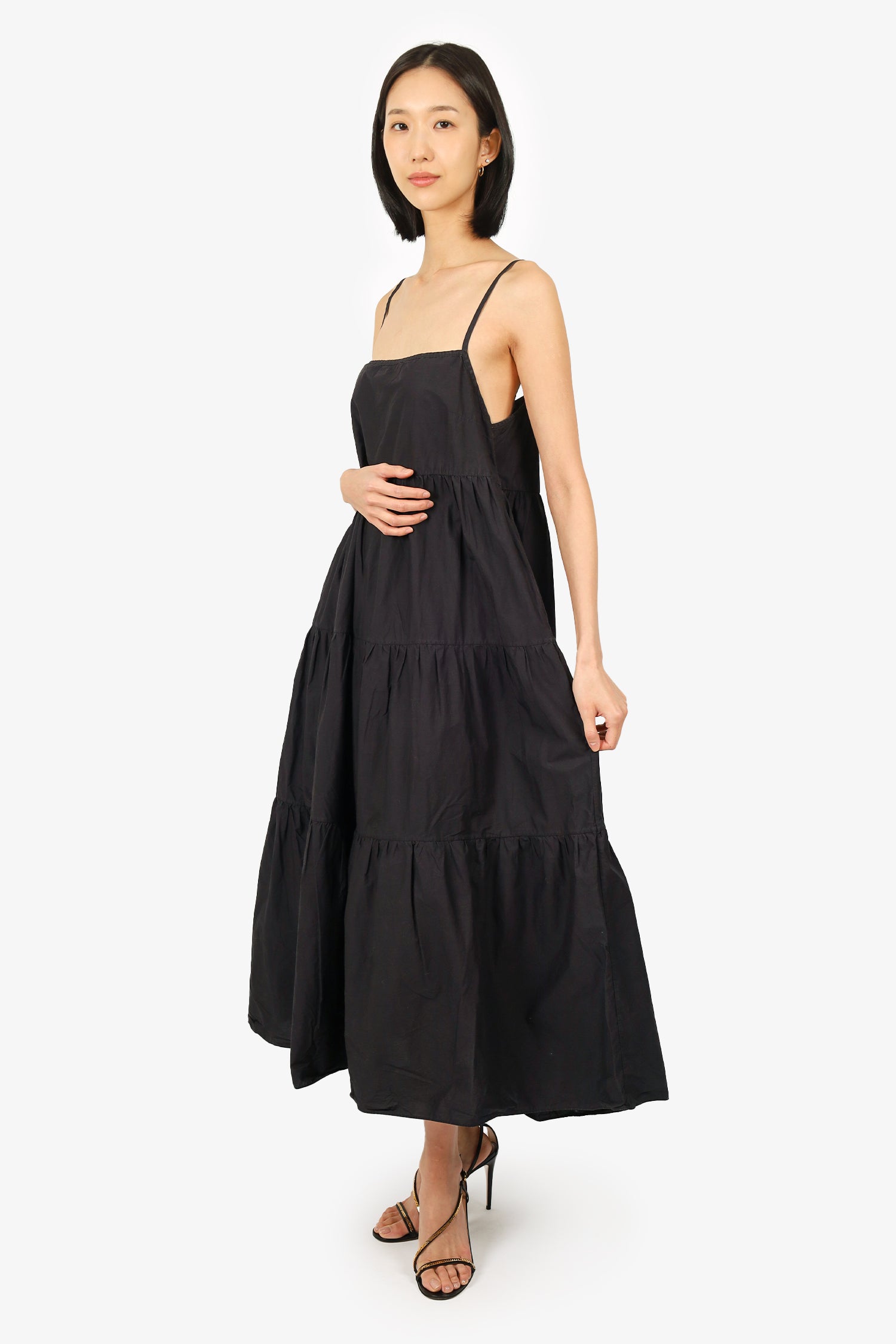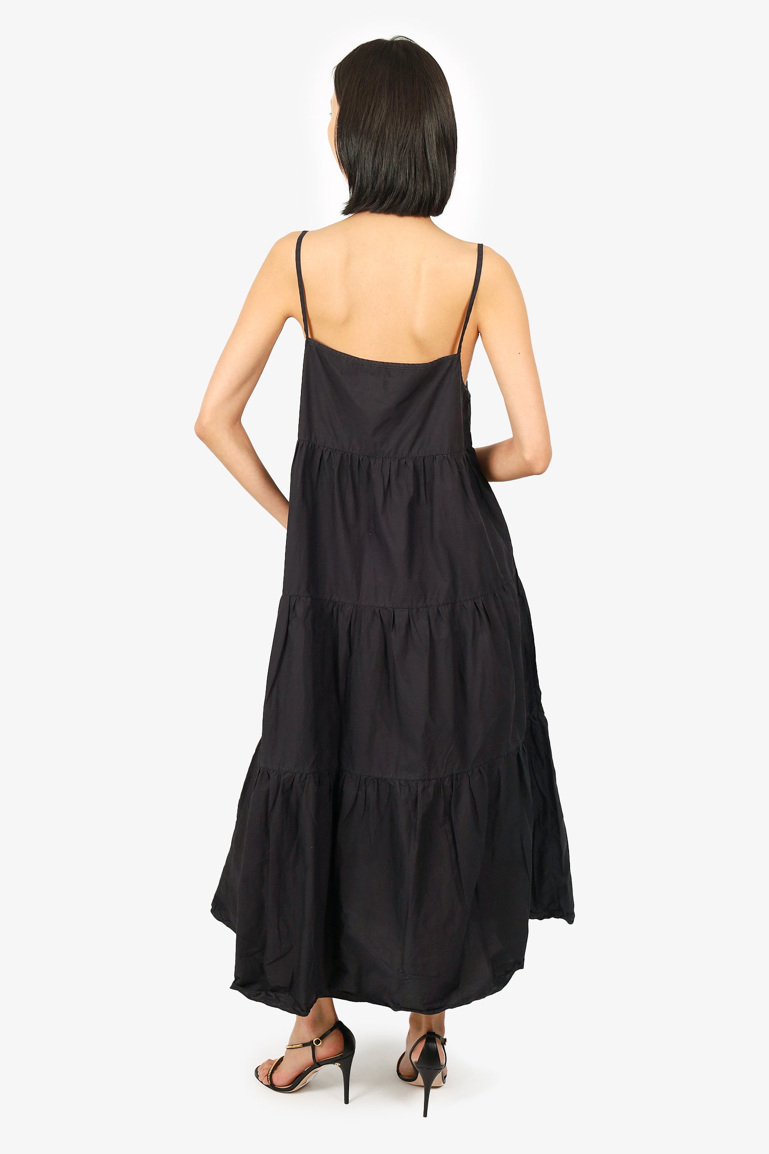Matteau Black Cotton Tired Midi Slip Dress Size 4