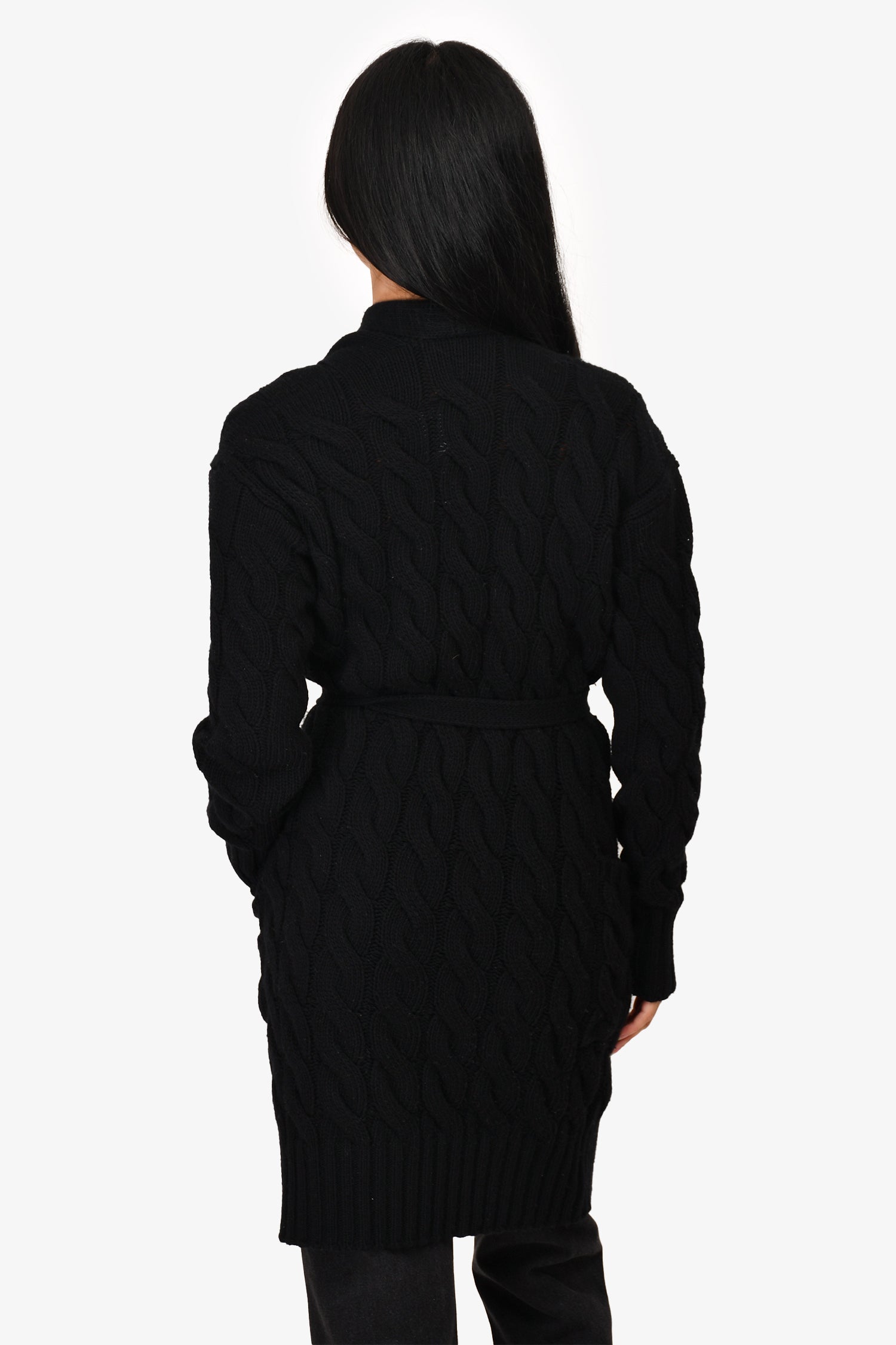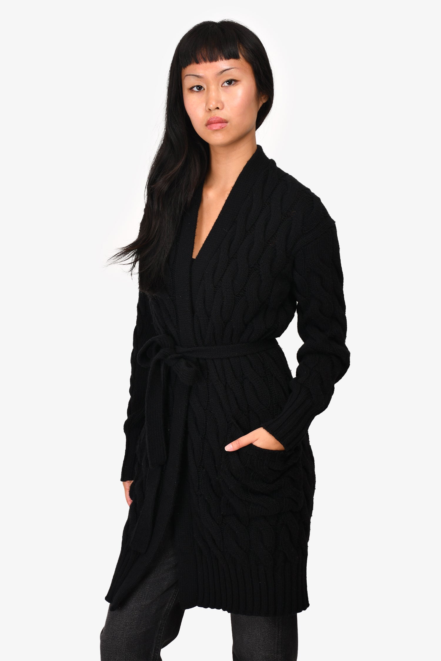 Refresh availabilityMax Mara Black Cable Knit Wool/Cashmere Belted Cardigan. Front pocket. Open front.