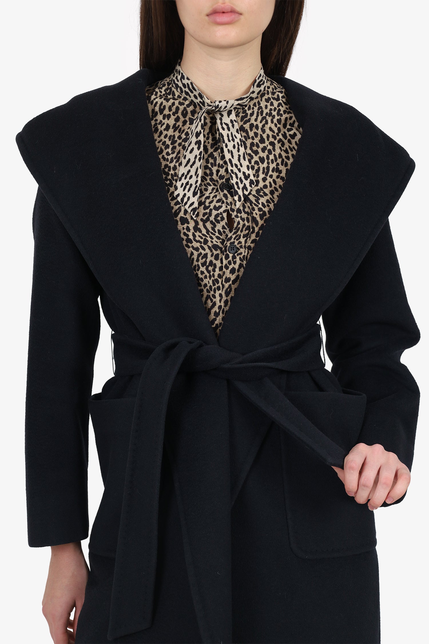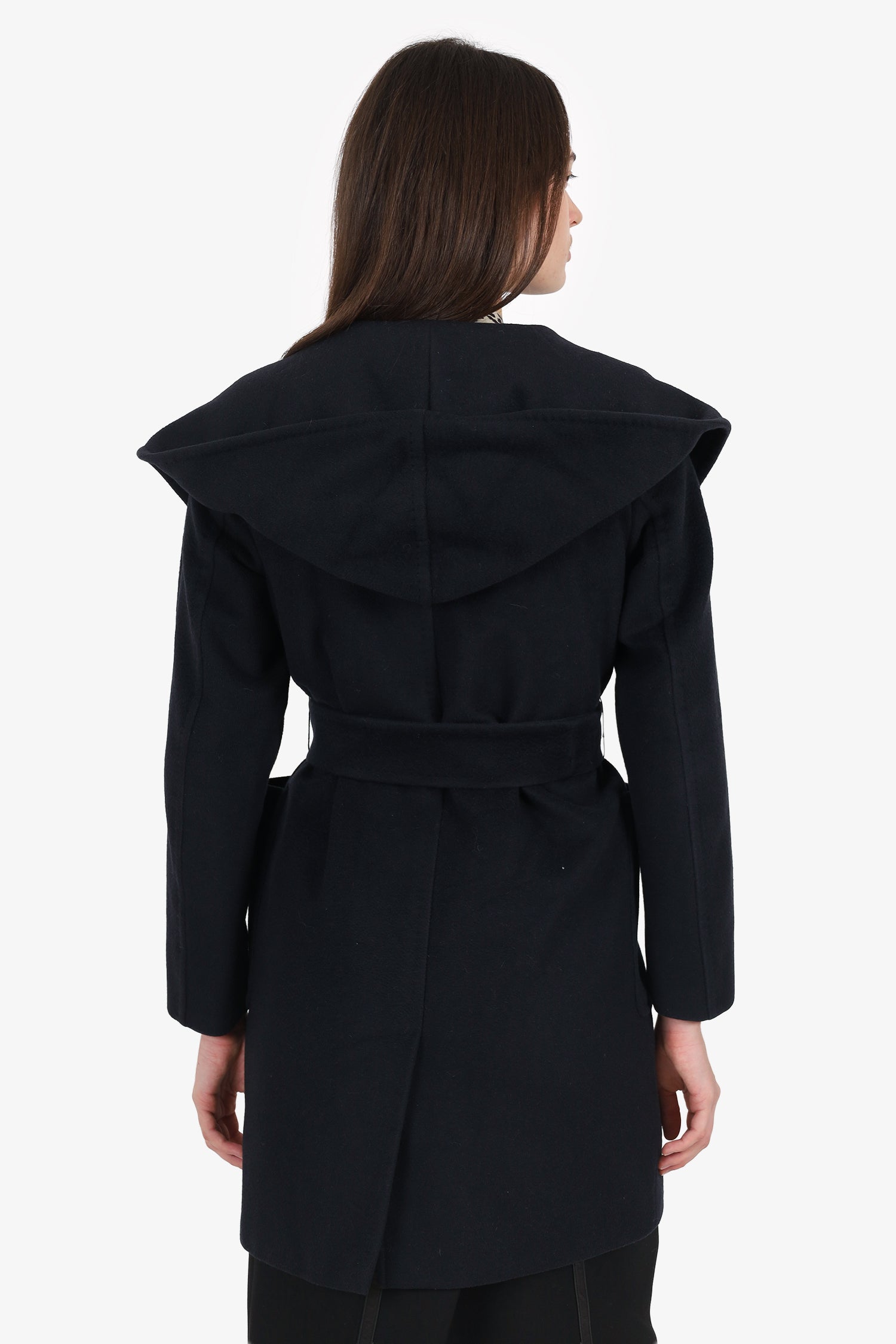 Refresh availabilityMax Mara Black Camel Hair Belted Coat. Pull-on. V-neckline. Open front with tie-up waist belt. 2 front slip pockets. Single rear slit. Lined interior. Tonal stitching.
