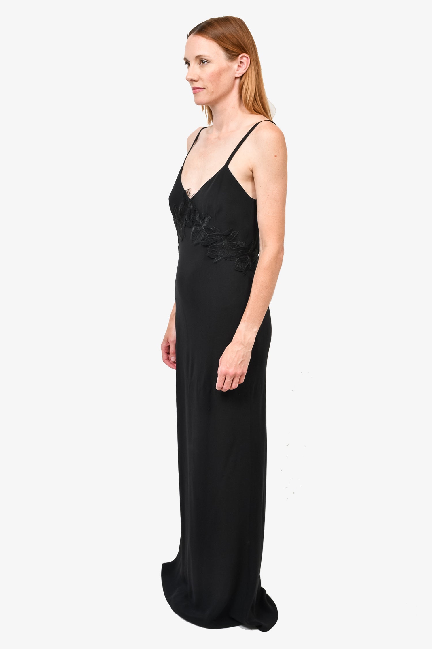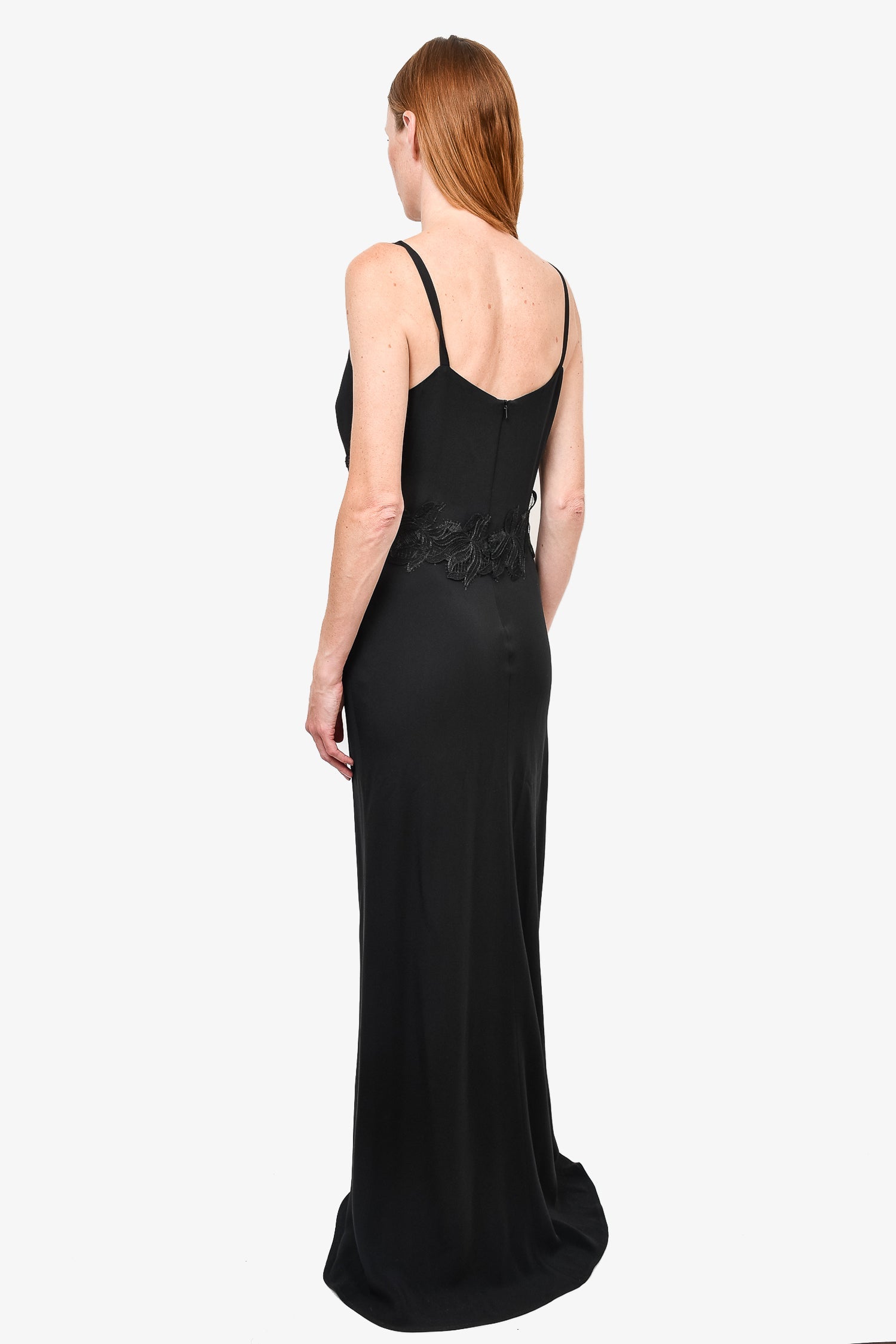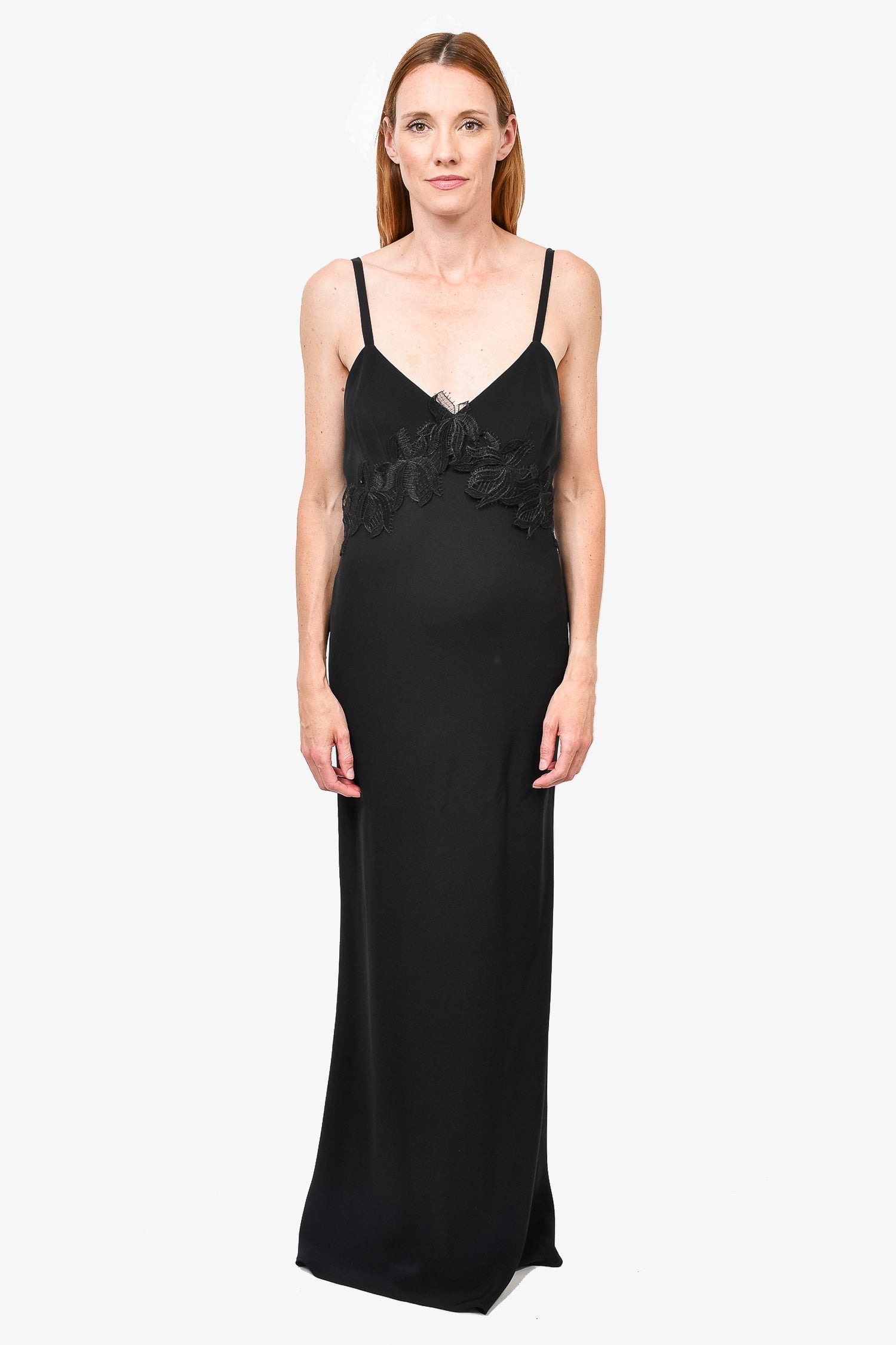 Max Mara Black Floral Detail Sleeveless Gown Size 10