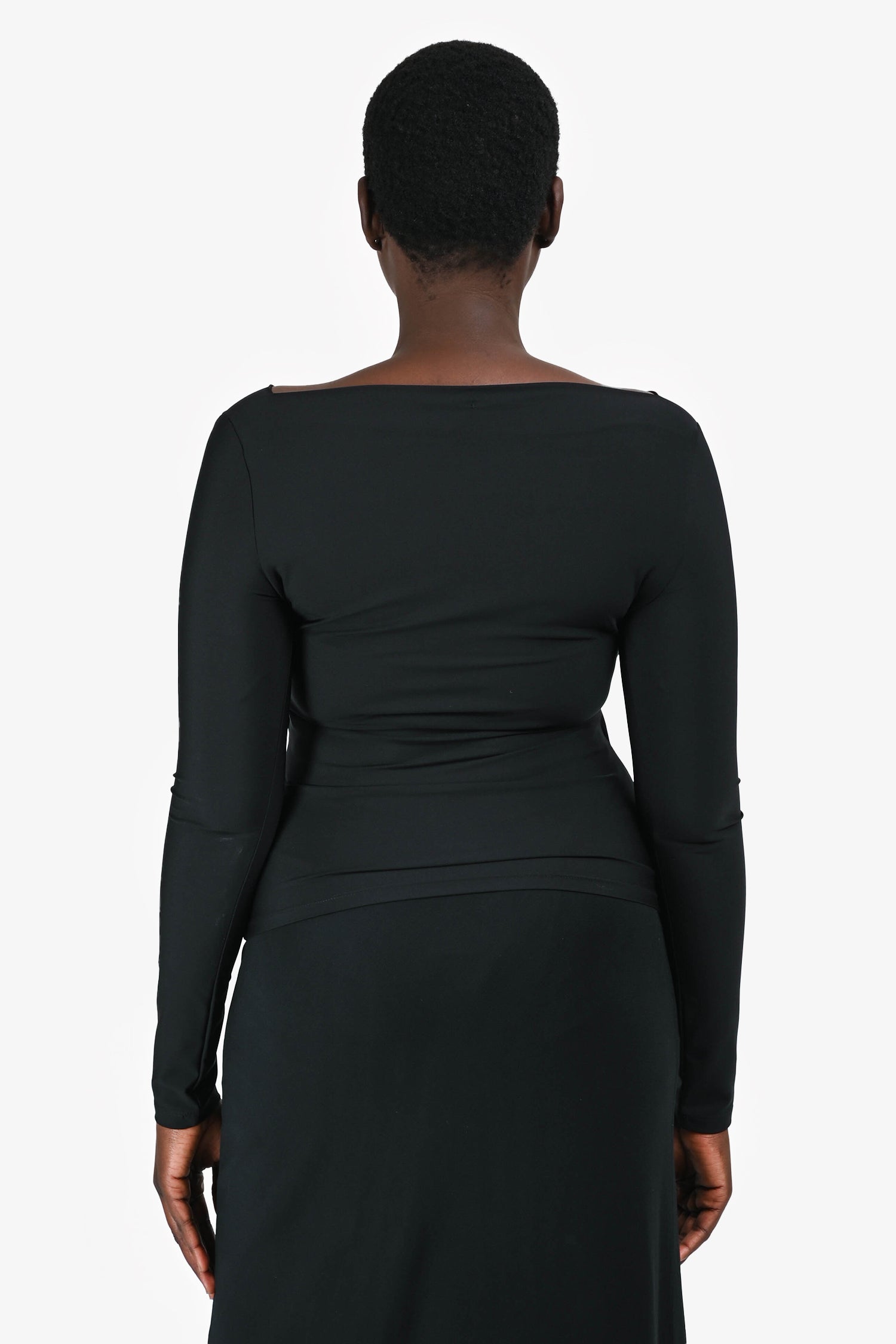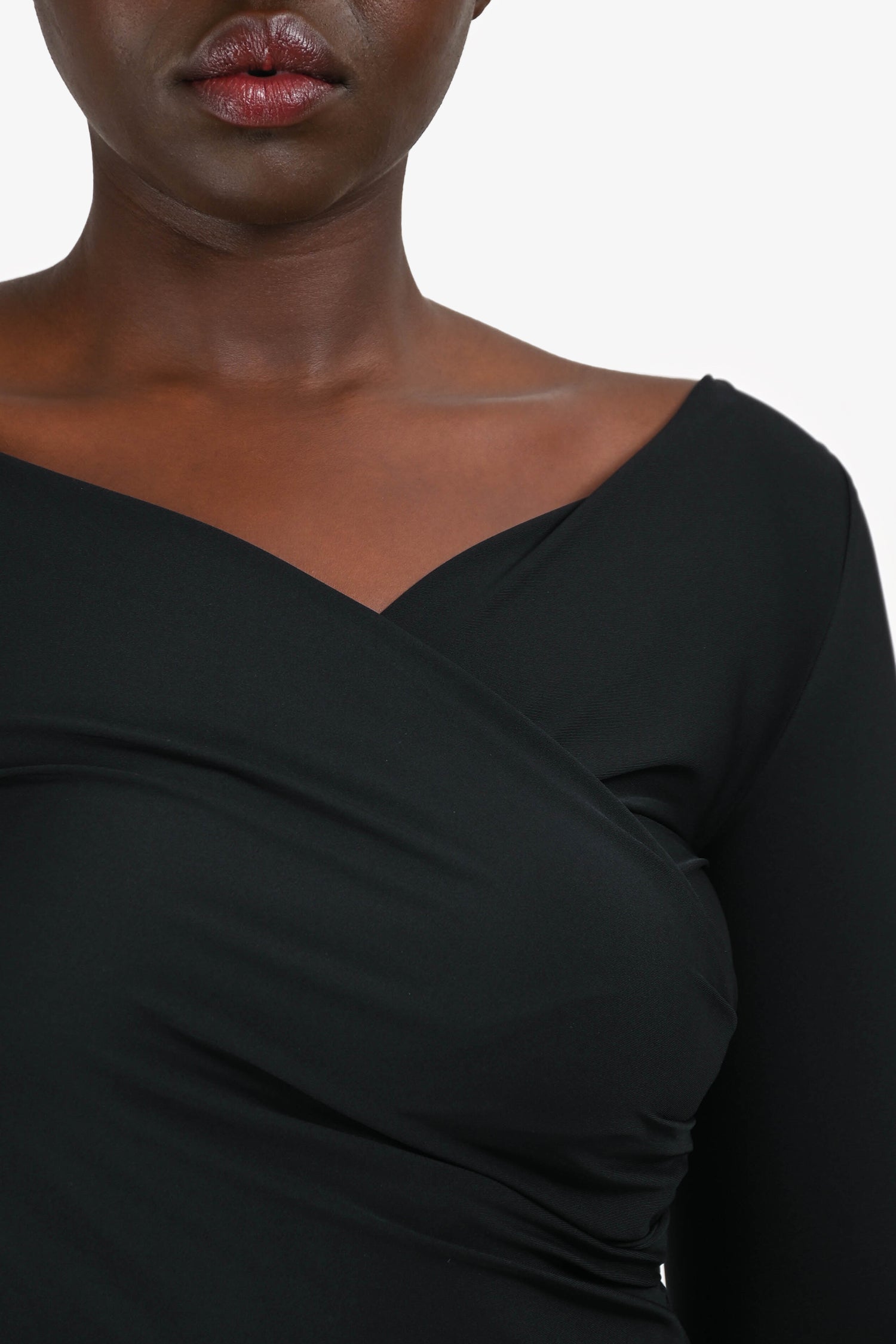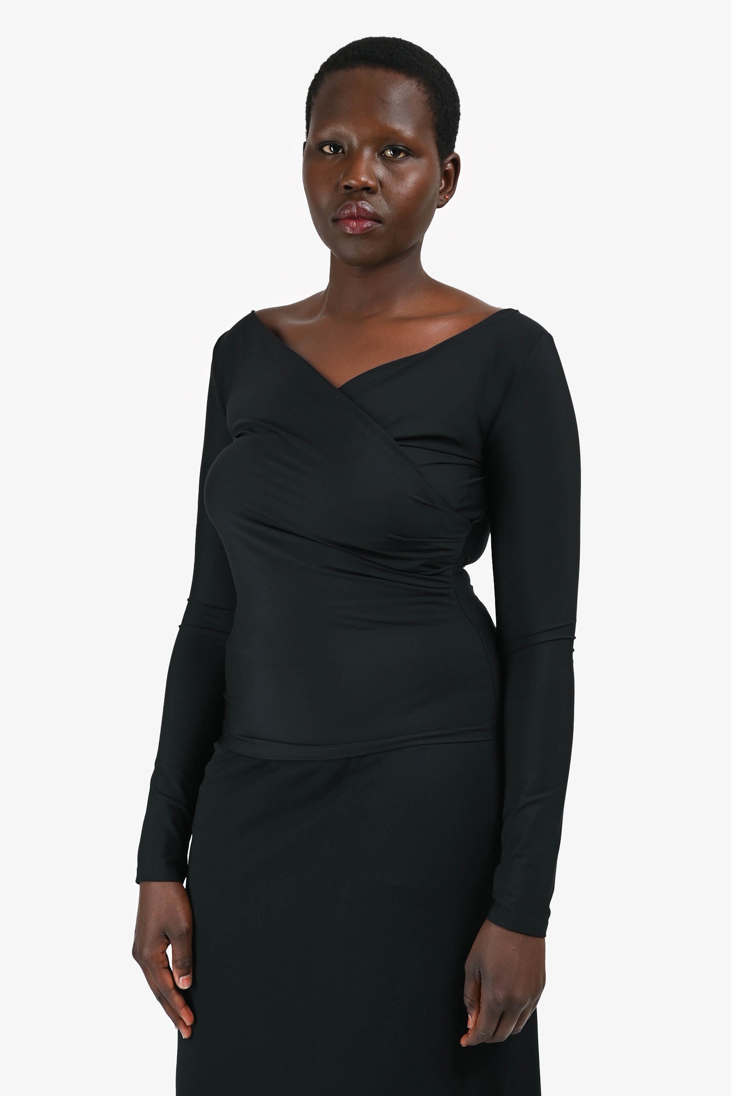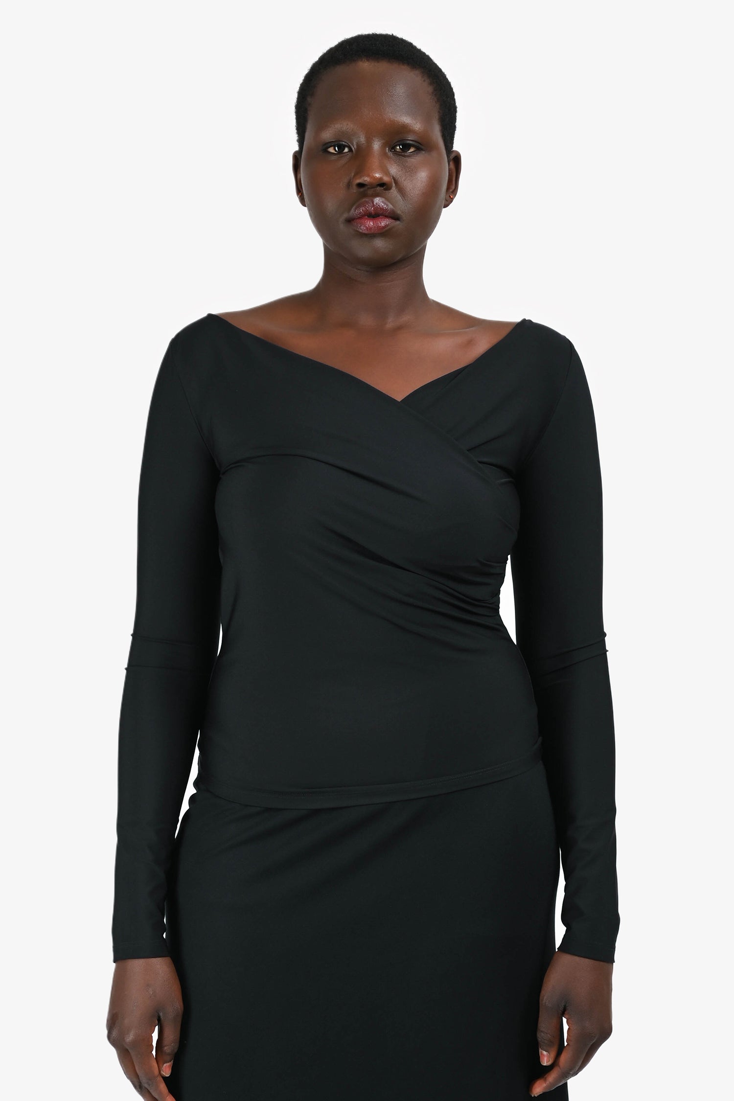 Refresh availabilityMax Mara Black Ruched V-Neck Top. V-neckline. Long sleeves. Ruched detailing at front. Pull-on style. Tonal stitching.
