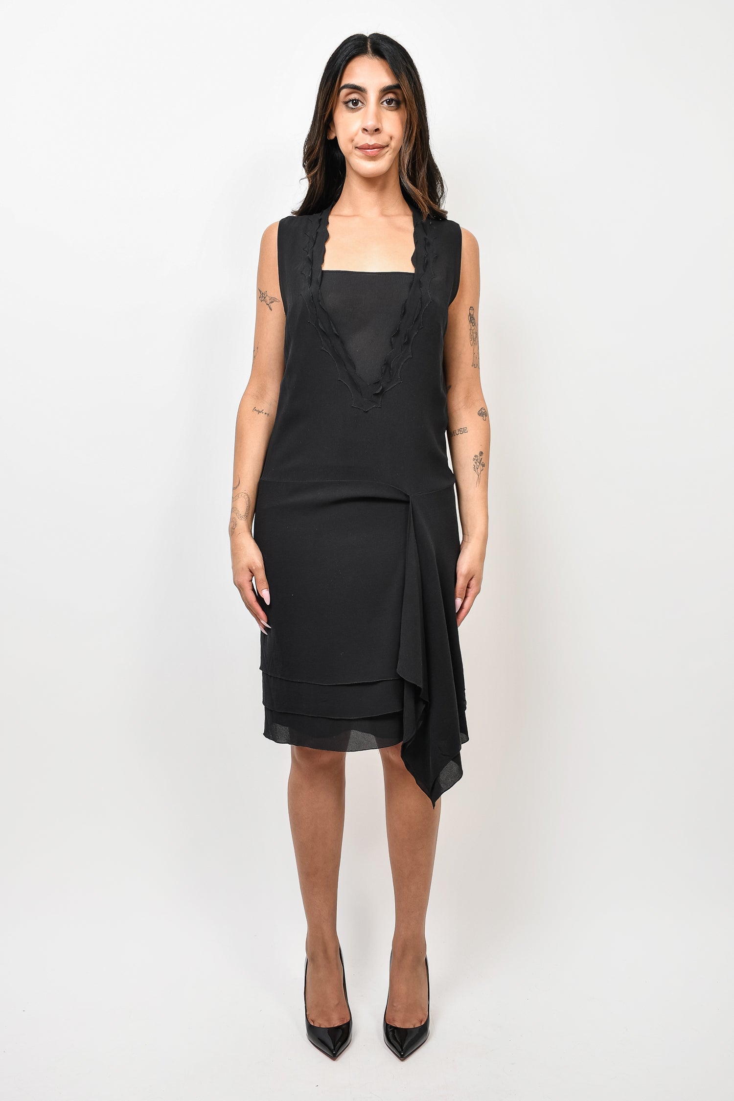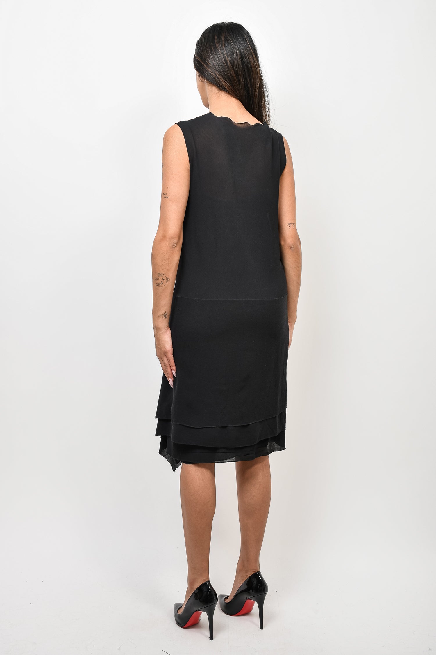 Refresh availabilityMax Mara Black Silk Scallop V Neck Sleeveless Dress with Slip. Slip-on design. Tonal stitching.