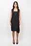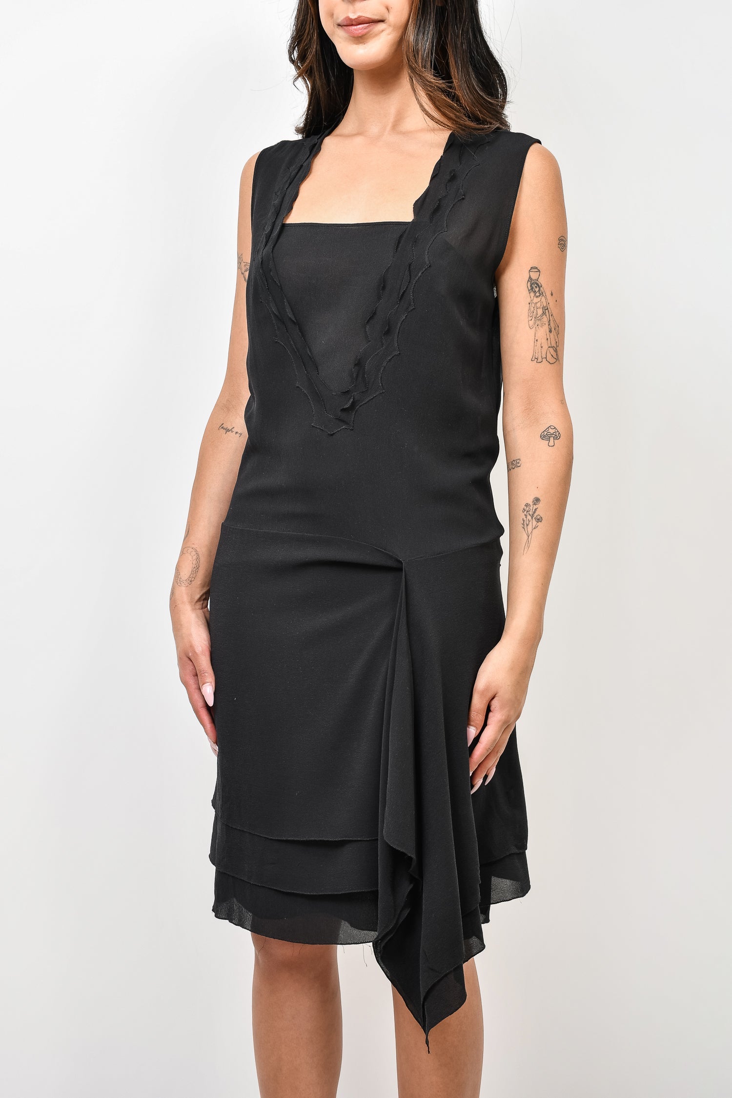 Max Mara Black Silk Scallop V Neck Sleeveless Dress with Slip Size 10