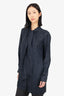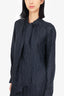Max Mara Black Silk Striped Pussy Bow Blouse Size 10