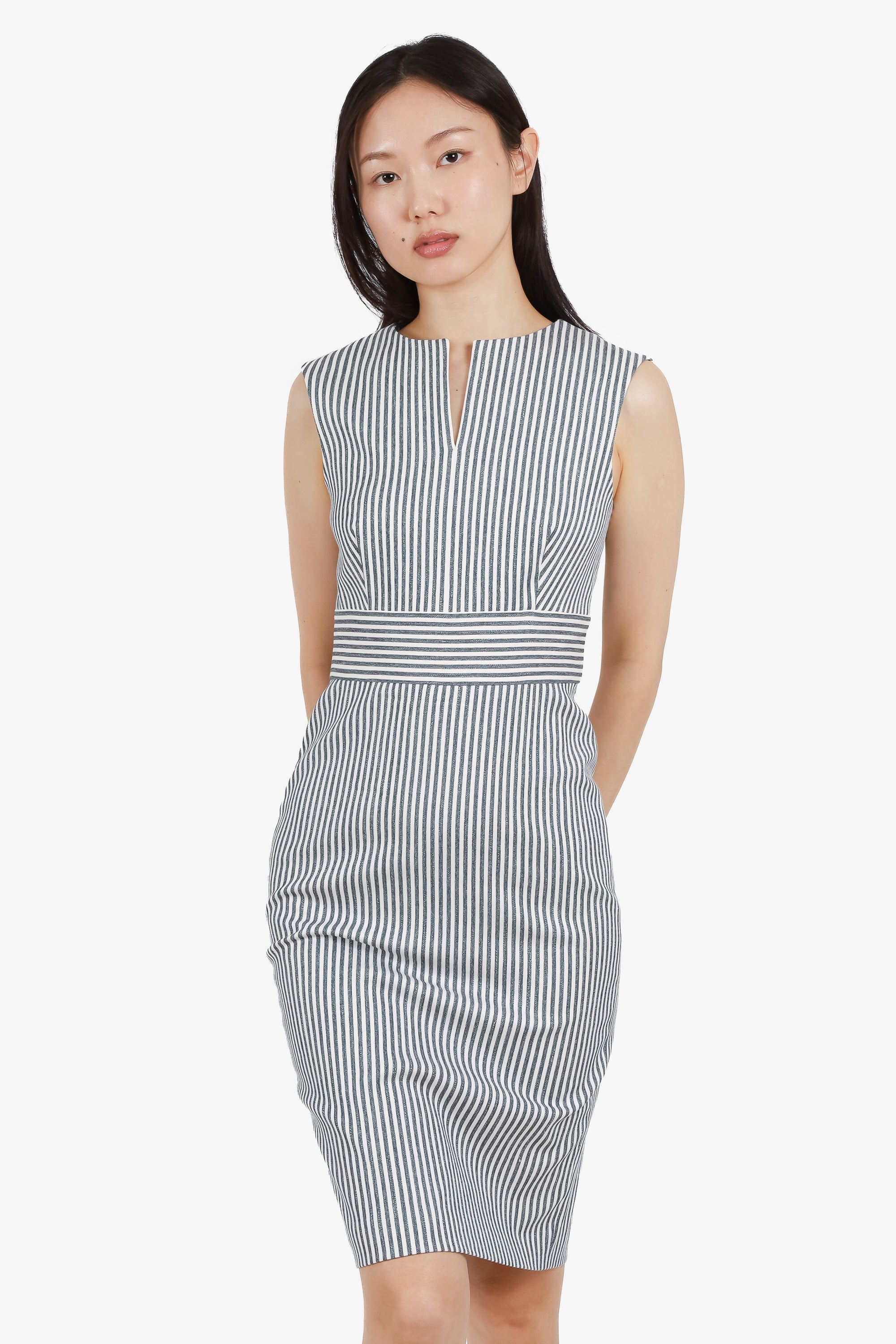 Refresh availabilityMax Mara Black/White Striped Sleeveless Midi Dress. Back zipper closure. V-neck. Lined. Tonal stitching.