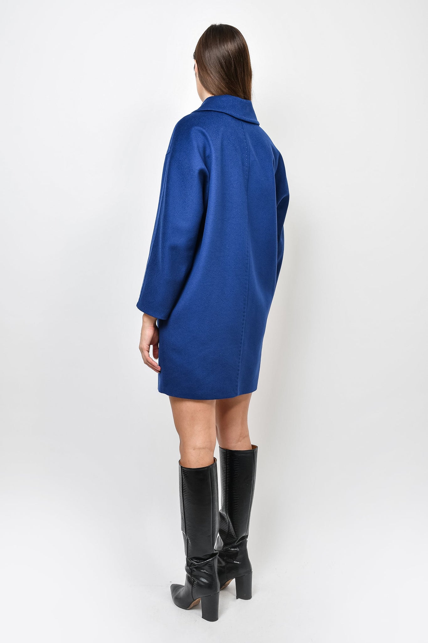Refresh availabilityMax Mara Blue Wool Oversized Coat. Front button closure. Pointed collar and lapels. Blue interior lining. 2 exterior slip pockets. Tonal stitching.