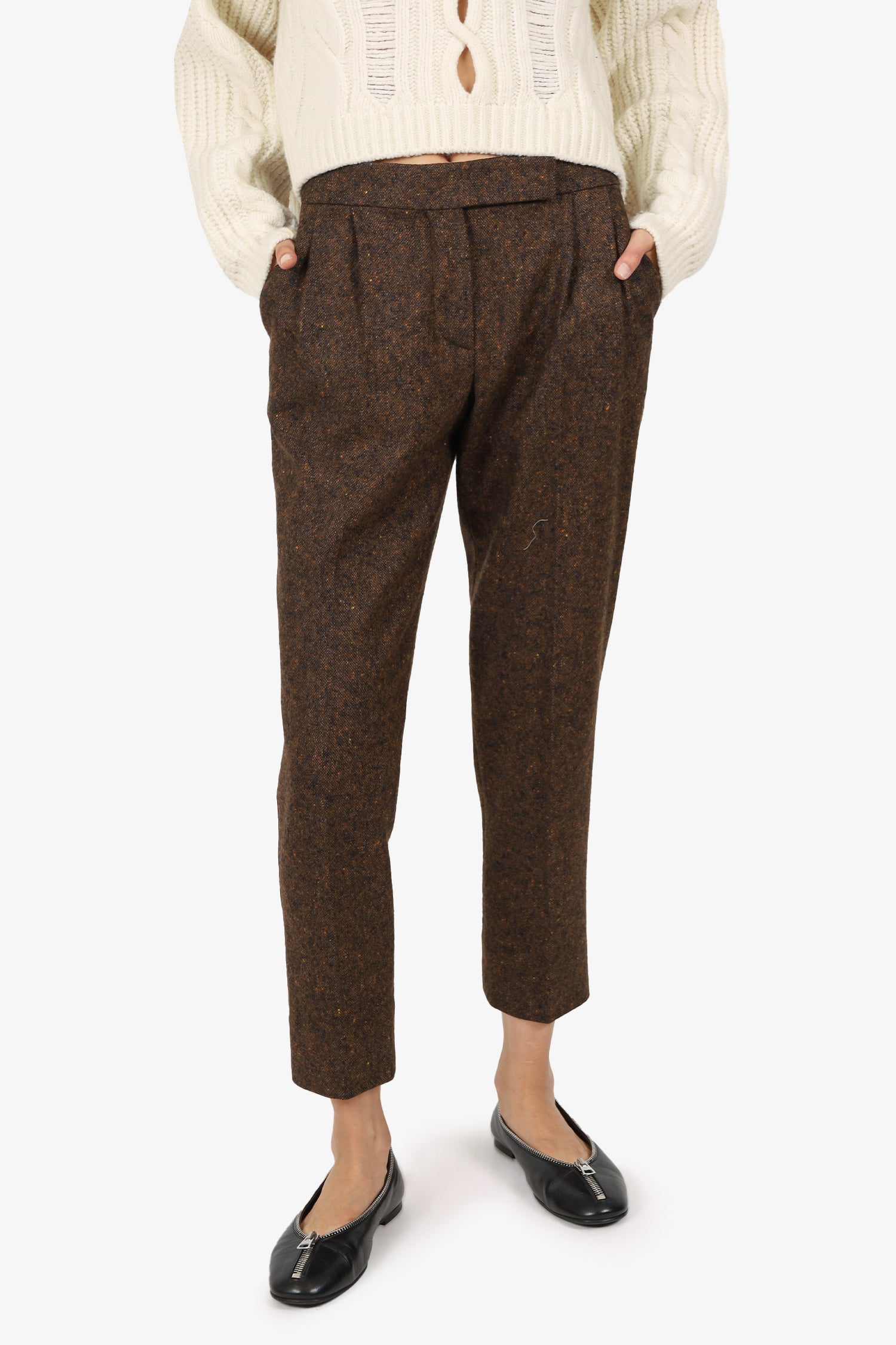 Refresh availabilityMax Mara Brown Wool Straight Leg Trousers. Slip-on. Front hook and zip closure. 4 exterior pockets; 2 side slip and 2 rear slip with button-up closure. Tonal stitching.