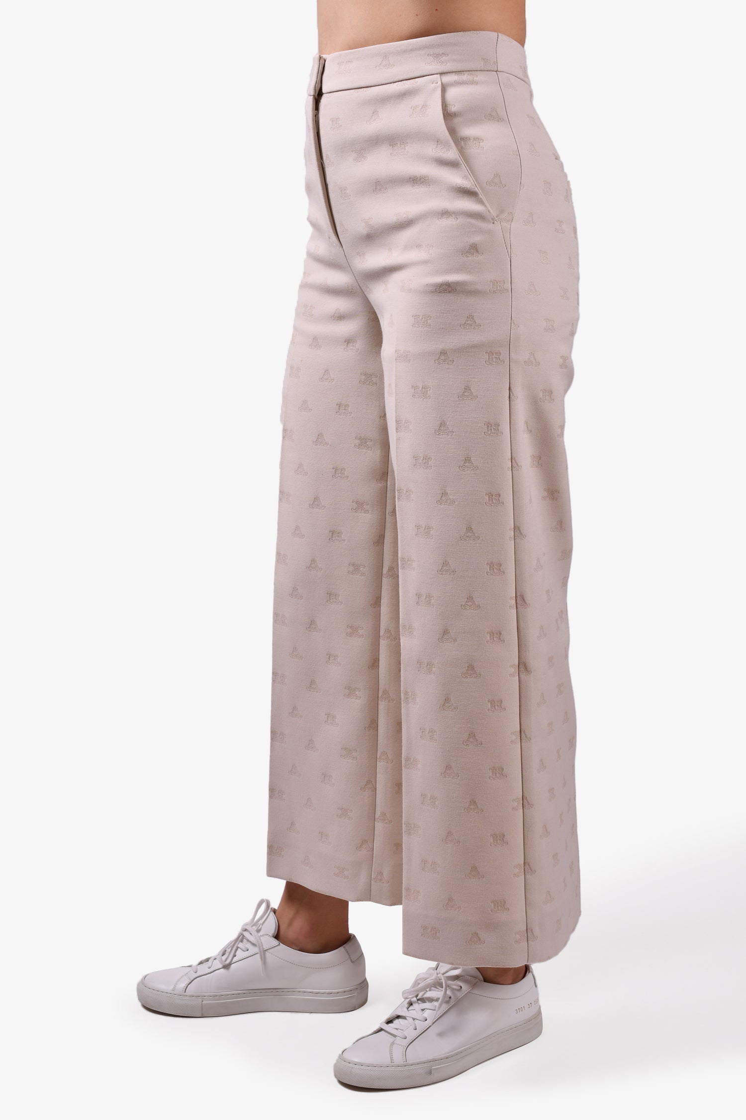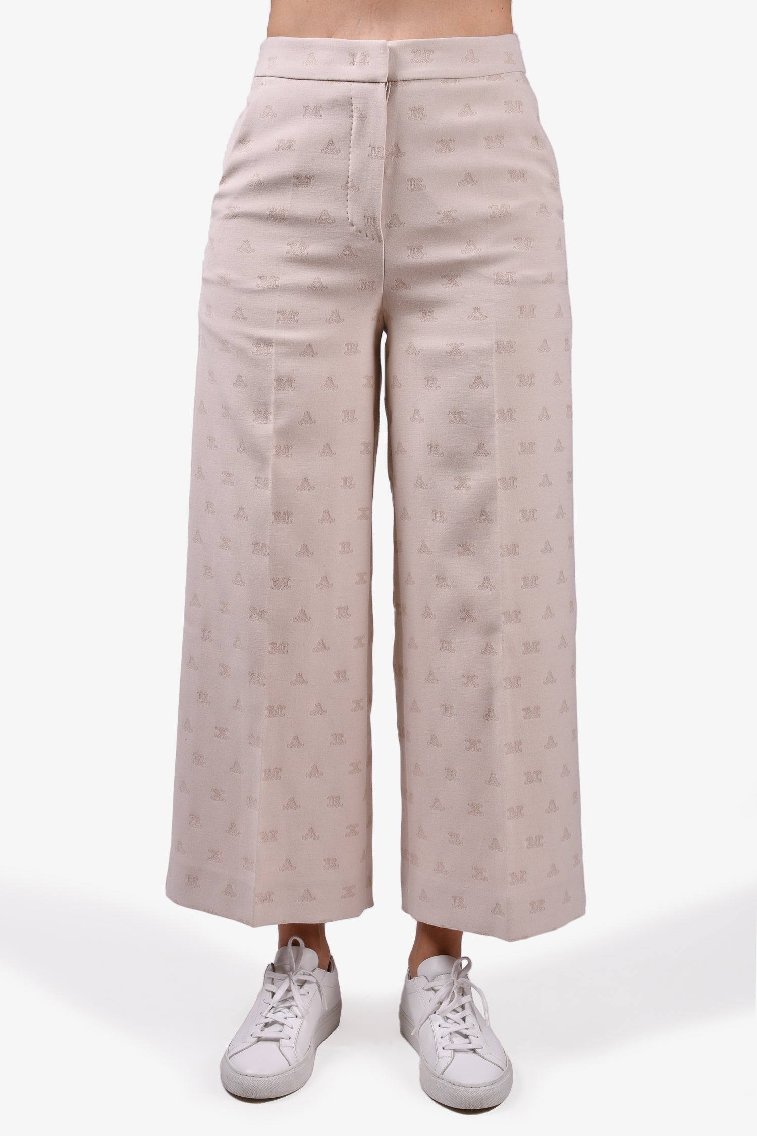Refresh availabilityMax Mara Cream Monogram Trousers. Front zip and button closure. Front and rear pockets. Tonal stitching.