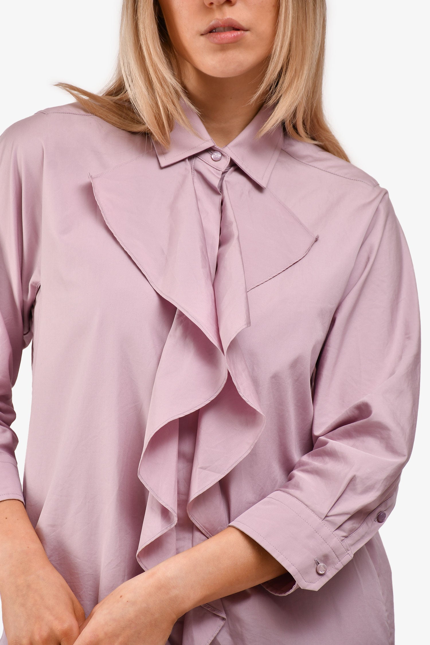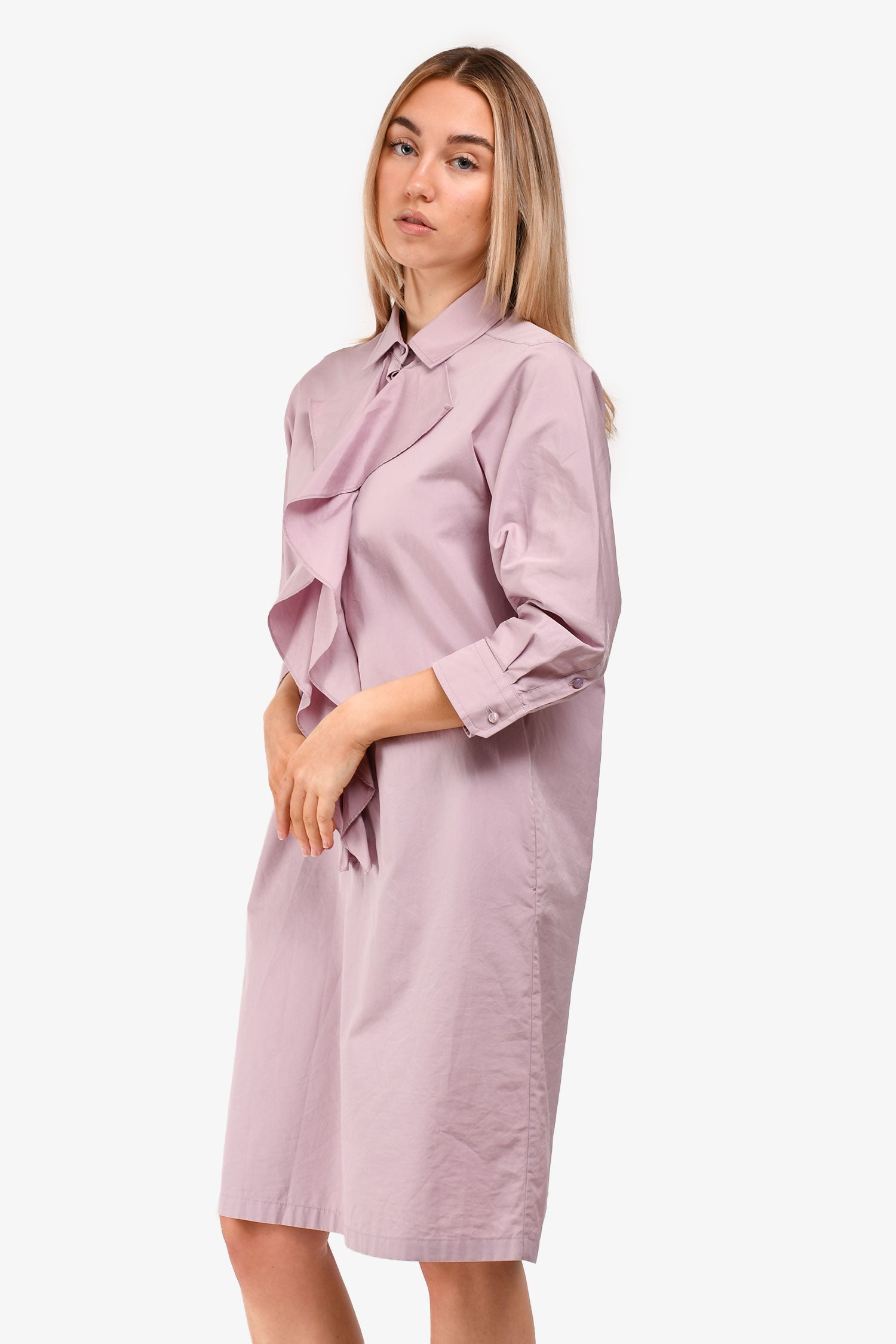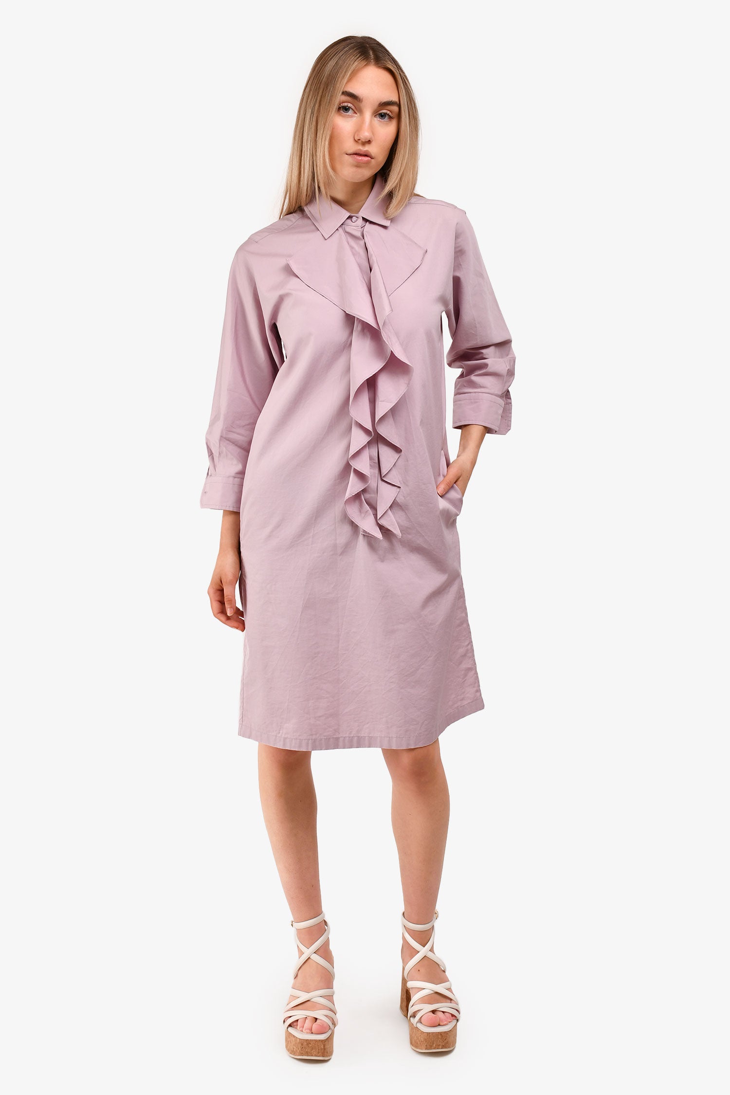 Refresh availabilityMax Mara Mauve Ruffle Front Shirt Dress. Tonal buttons. 2 hand pockets. Unlined. Tonal stitching.