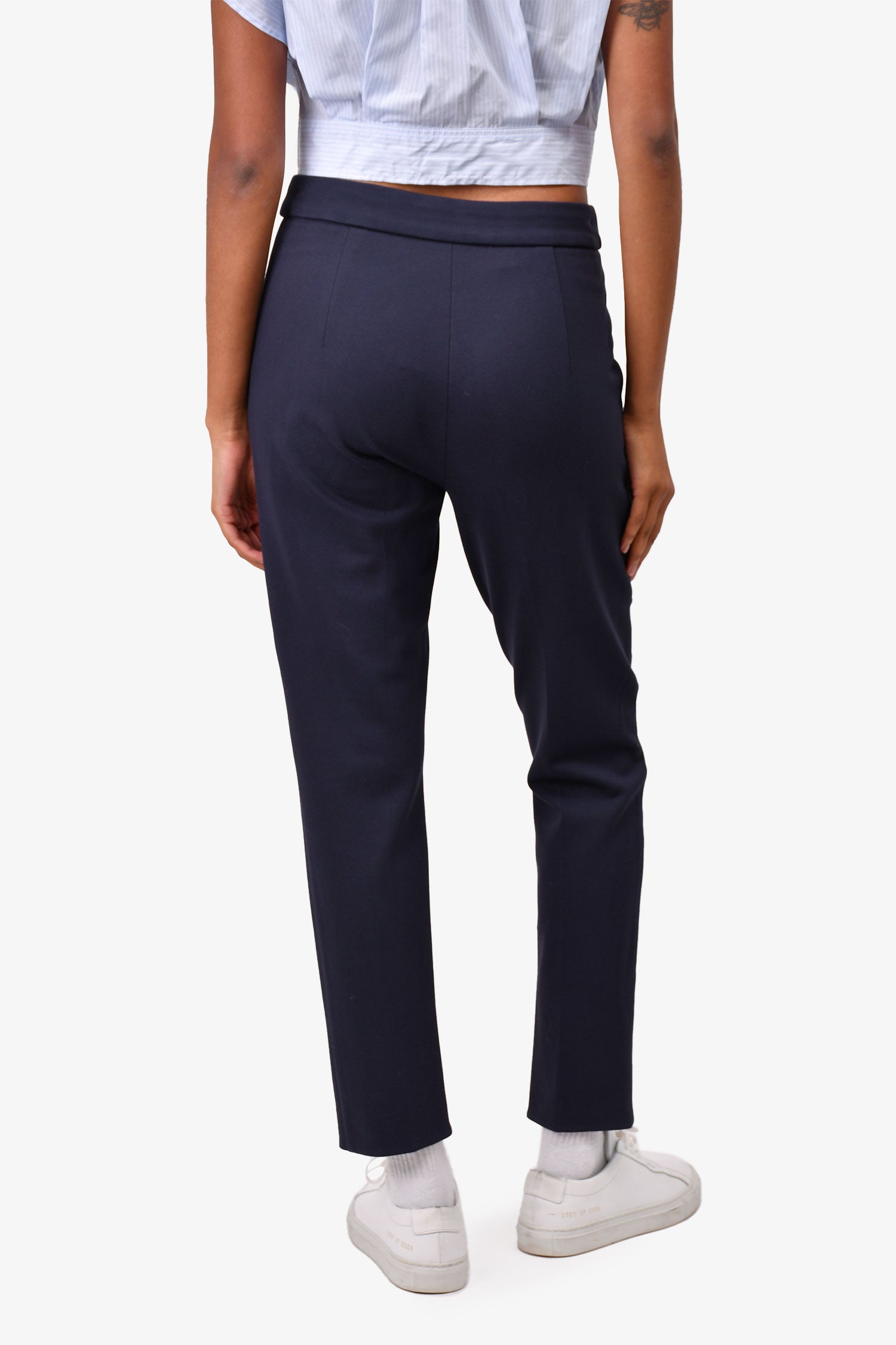 Max Mara Navy Blue High Waisted Straight Leg Trousers Est. Size M