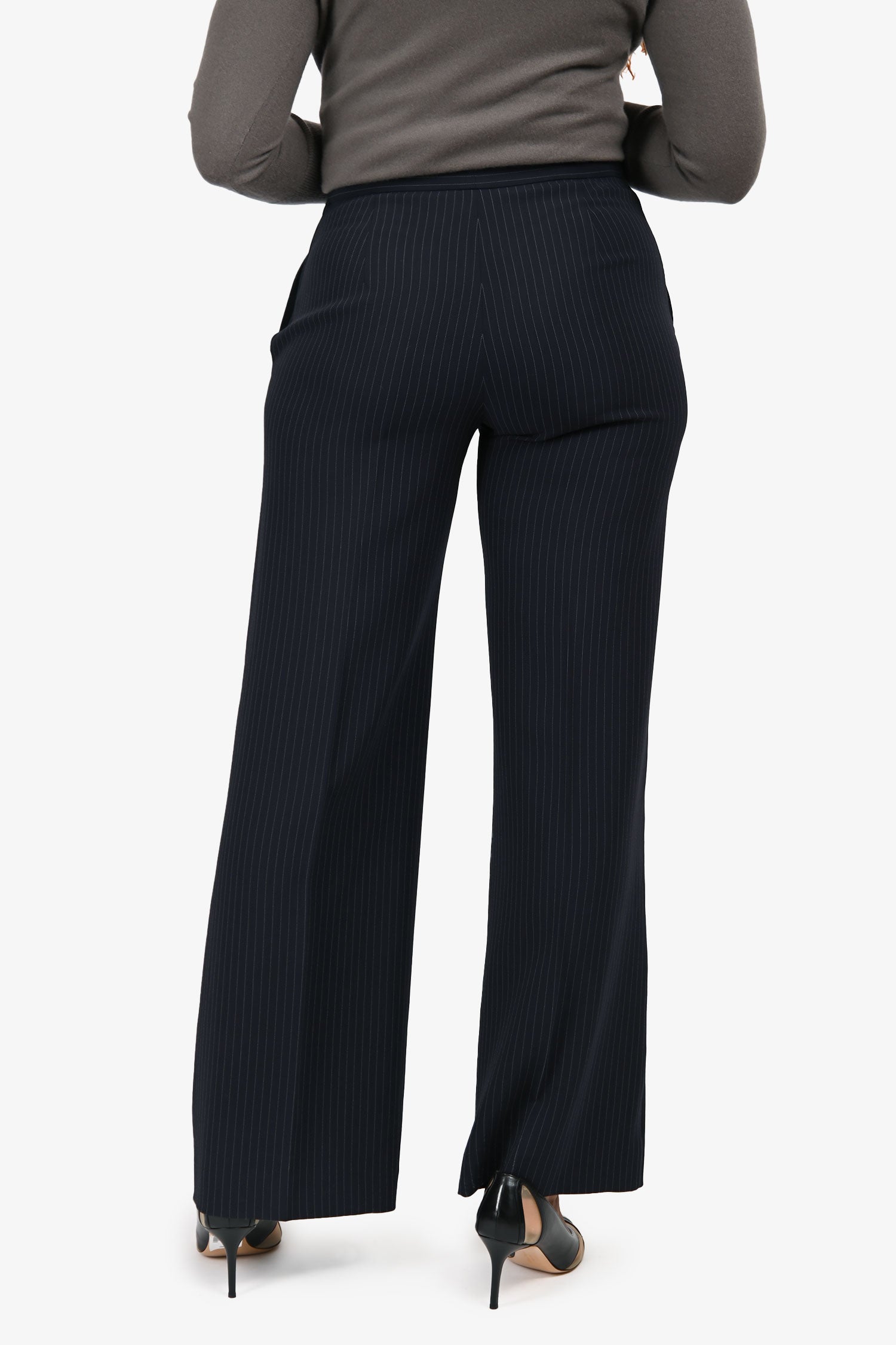 Max Mara Navy Pinstripe Wide Leg Trousers Estimated Size 8