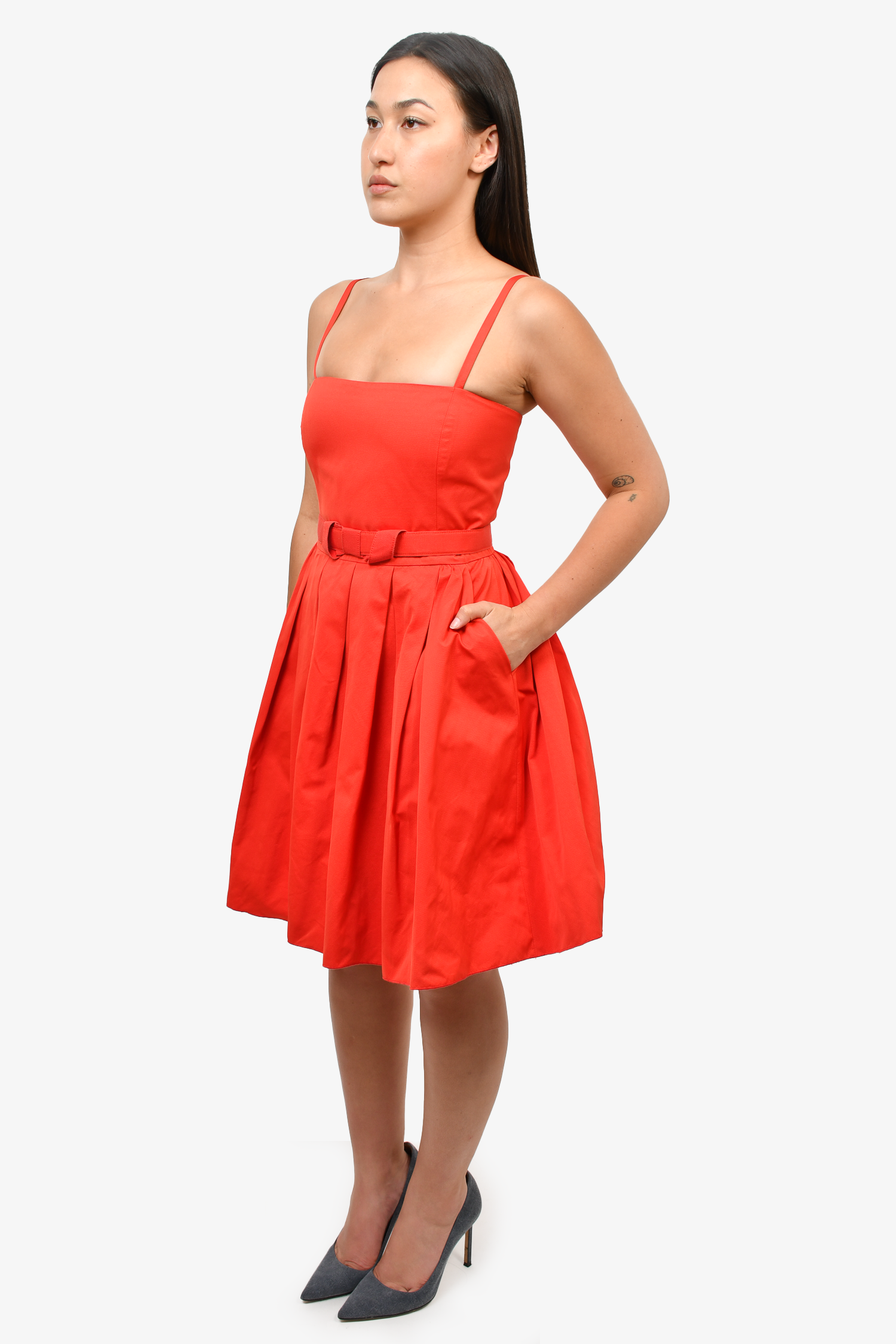 Refresh availabilityMax Mara Red Strappy Mini Dress. Square neckline. Rear zip and hook closure. Waist belt with velcro closure. Tonal stitching.