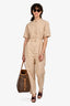 Max Mara Studio Cream Cotton Short Sleeve Belted Jumpsuit Size 8