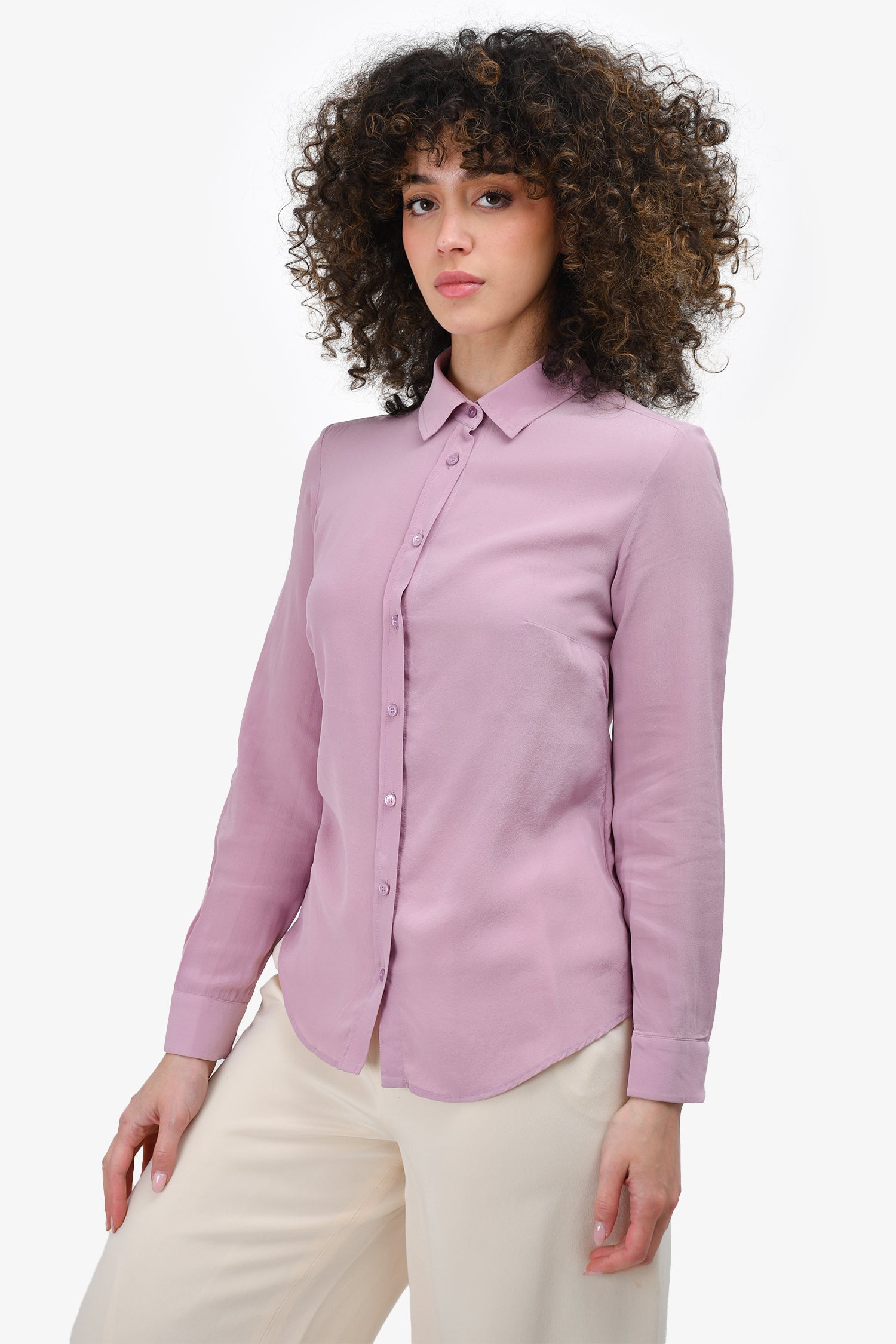 Refresh availabilityMax Mara Weekend Lilac Silk Button-Up. Long sleeve. Button up closure. Buttons at the cuffs. Tonal stitching.