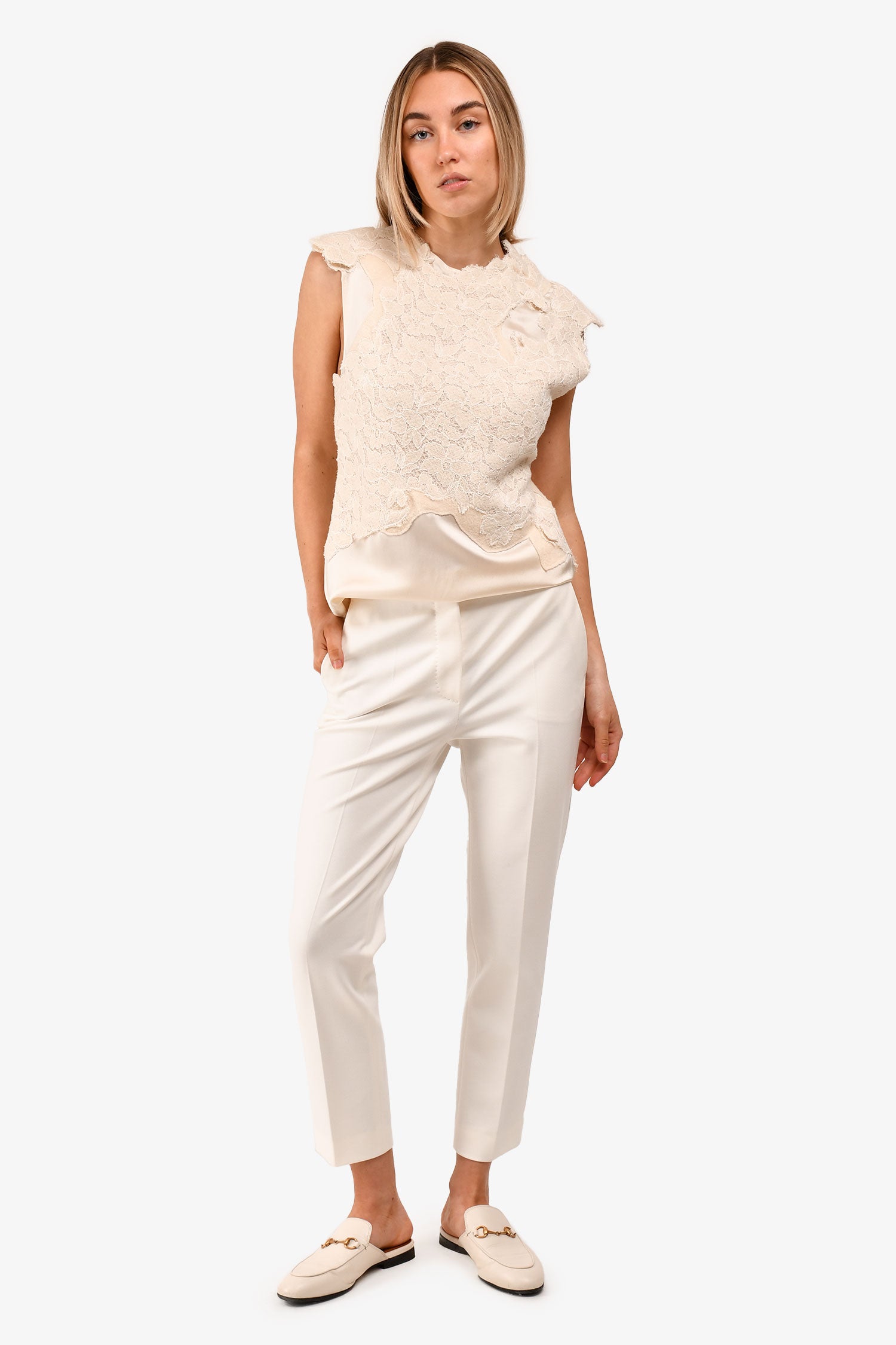 Refresh availabilityMax Mara White Cropped Pants. Front zip and top latch closures. 2 hand pockets. Tonal stitching.