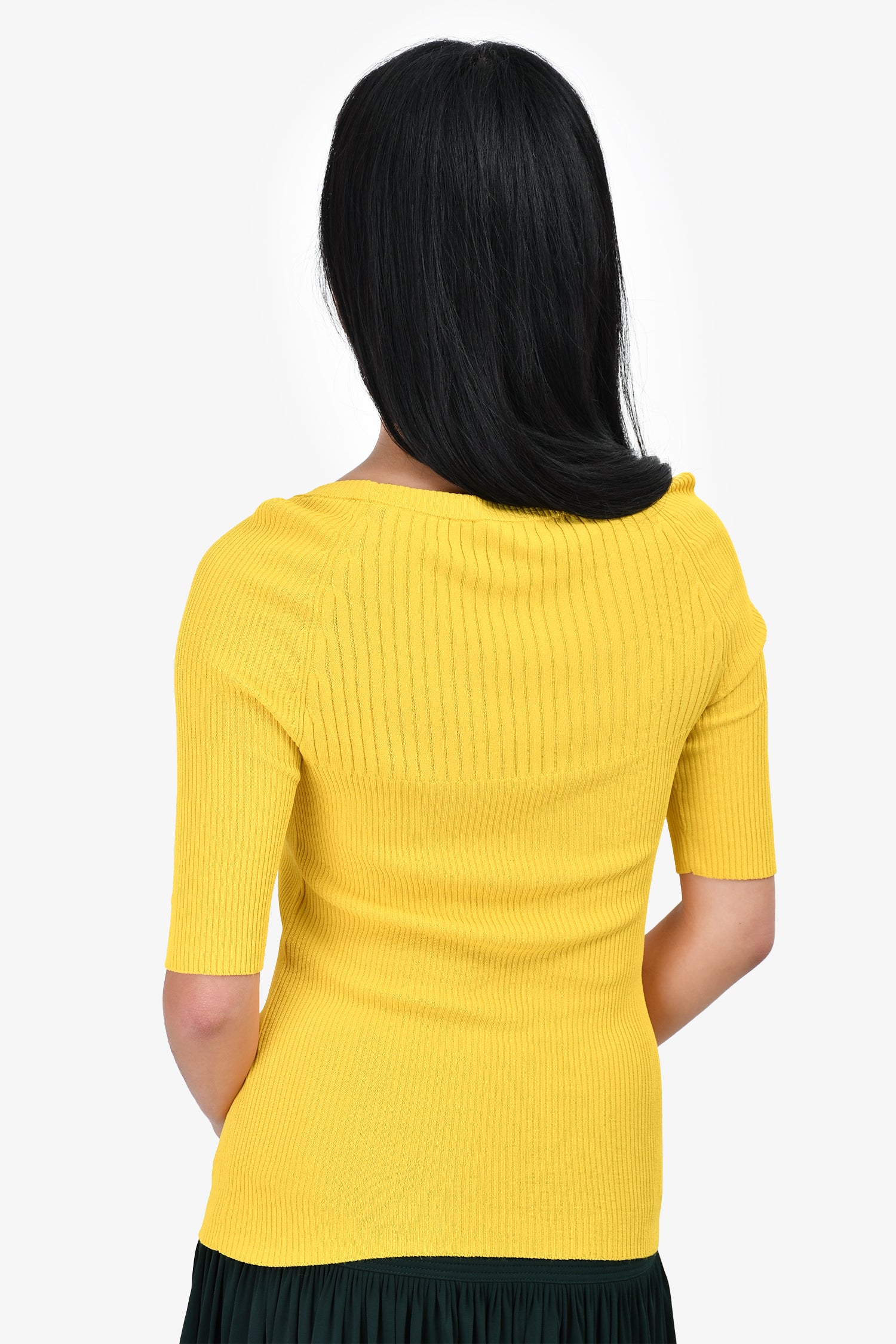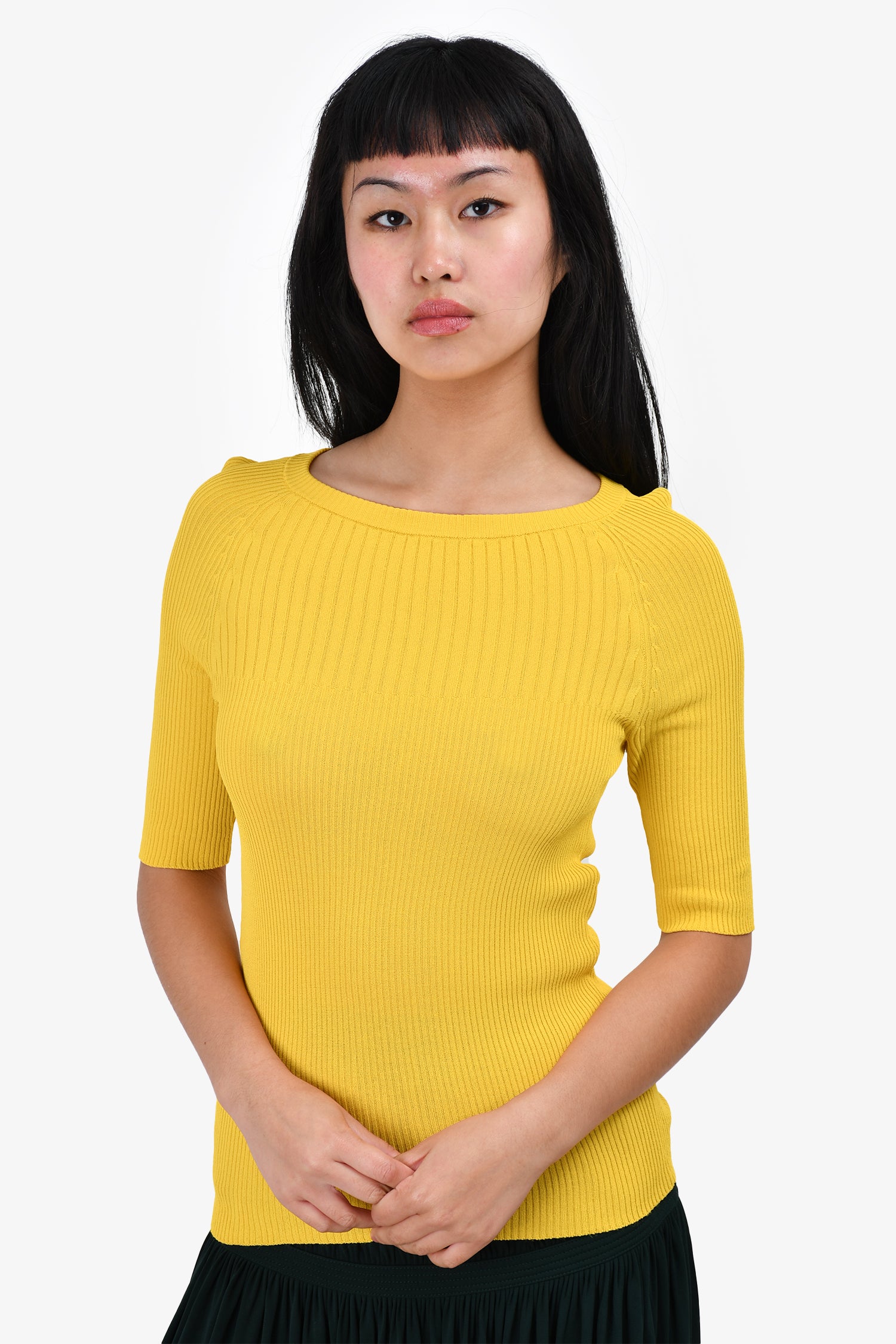 Refresh availabilityMax Mara Yellow Ribbed 3/4 Sleeve Top. Pull-on. Round neck.