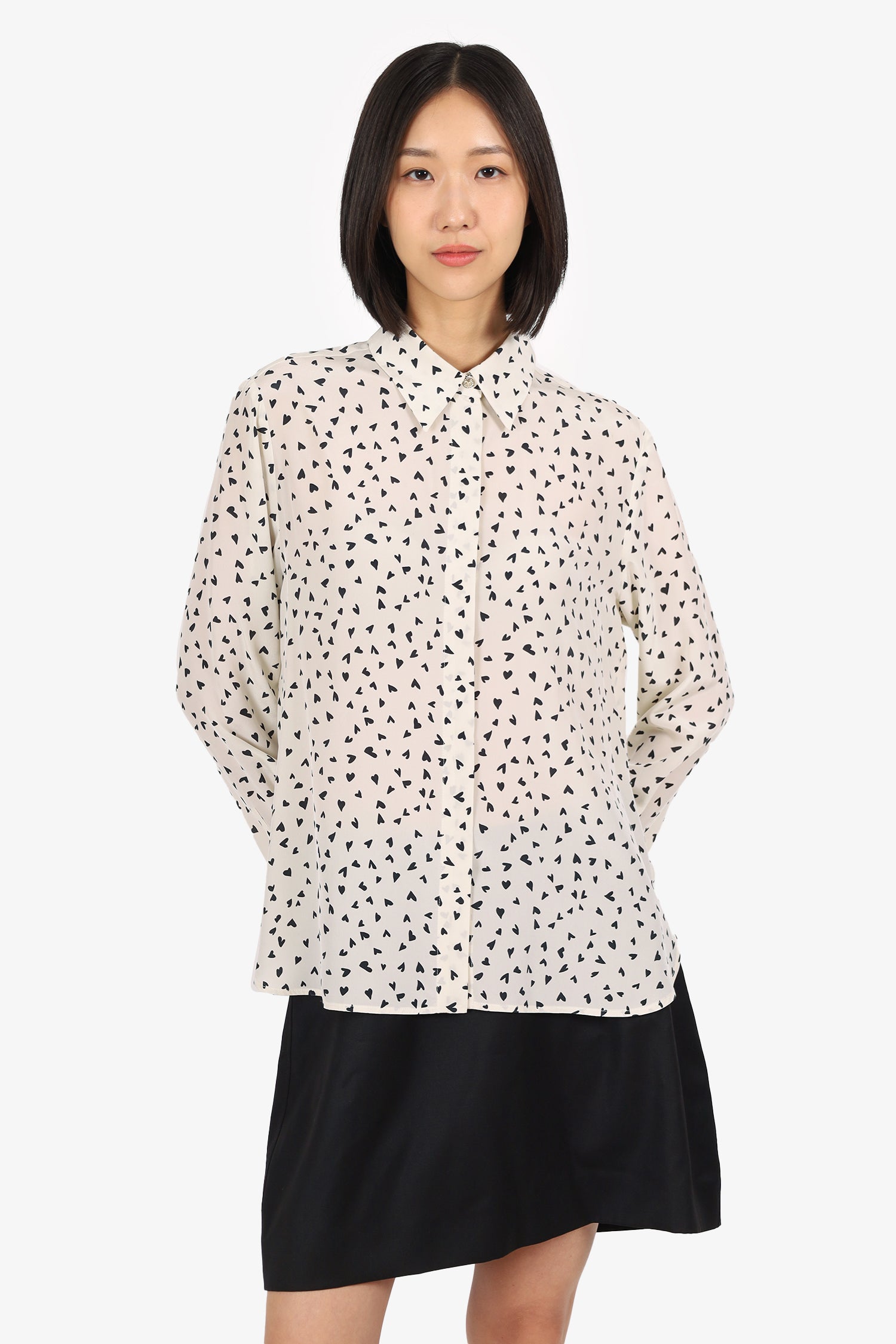 MaxMara Studio Silk Cream/Black Heart Printed Button Up Blouse Size 10
