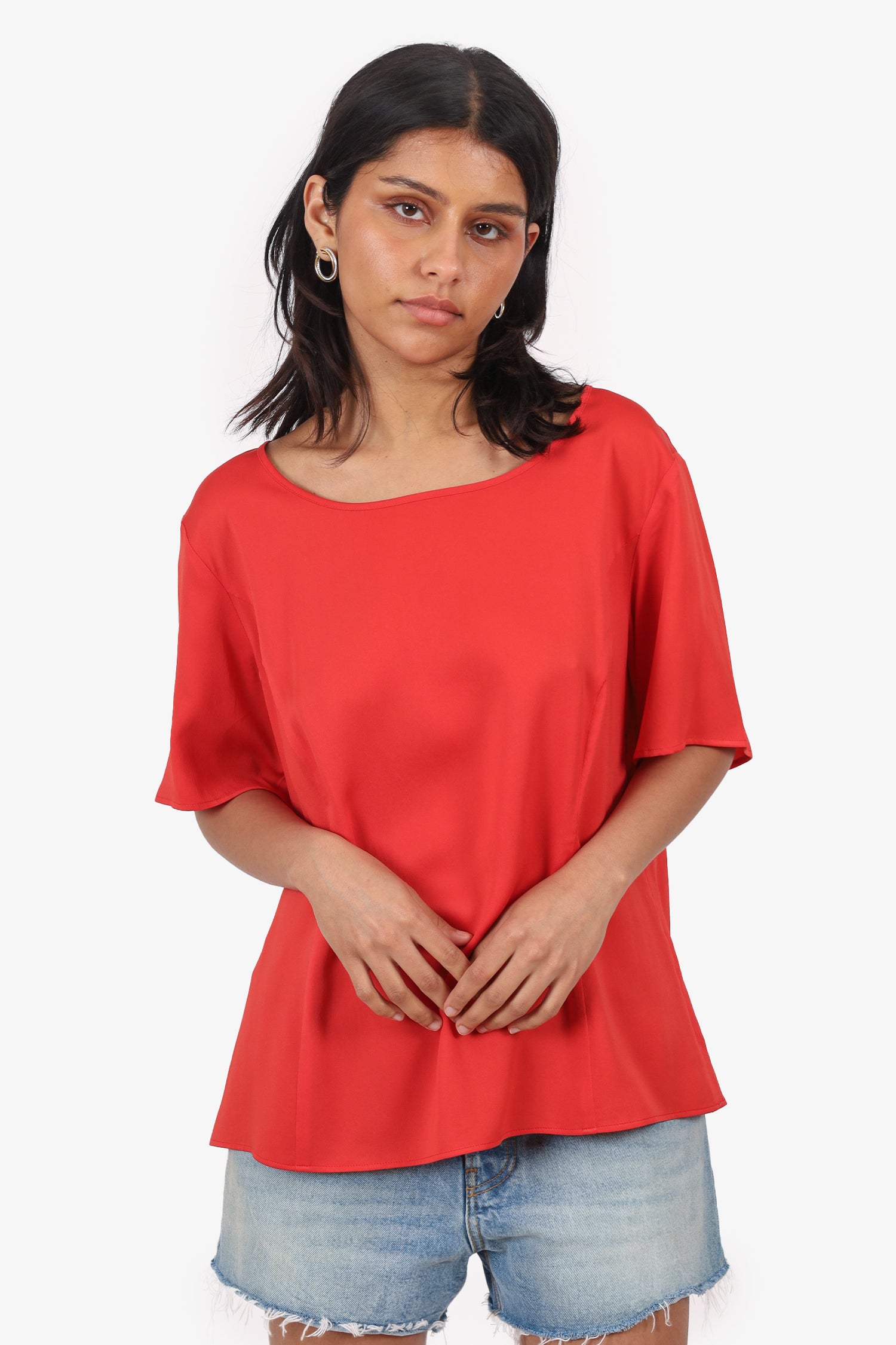 MaxMara Weekend Orange Silk Short Sleeve Top Size S