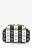 MCM Black/White Leather Striped Studded Backpack